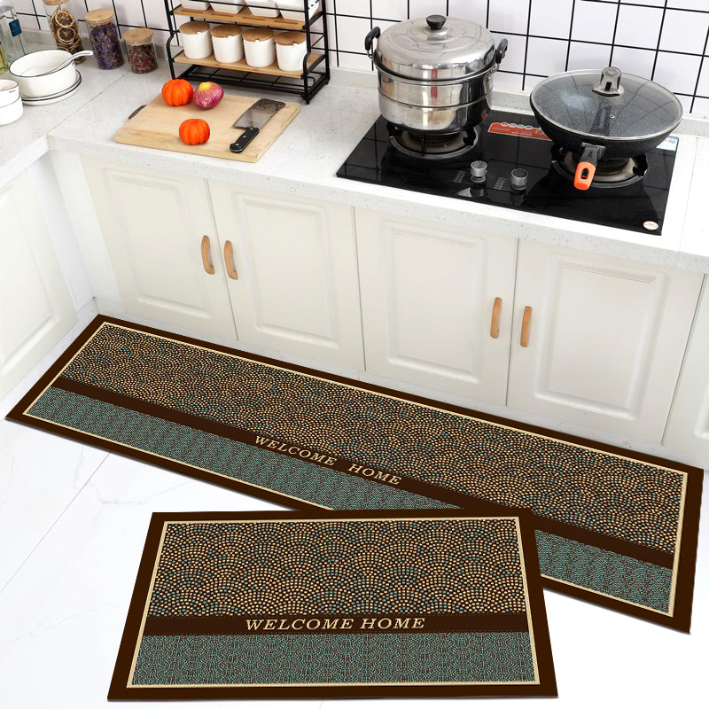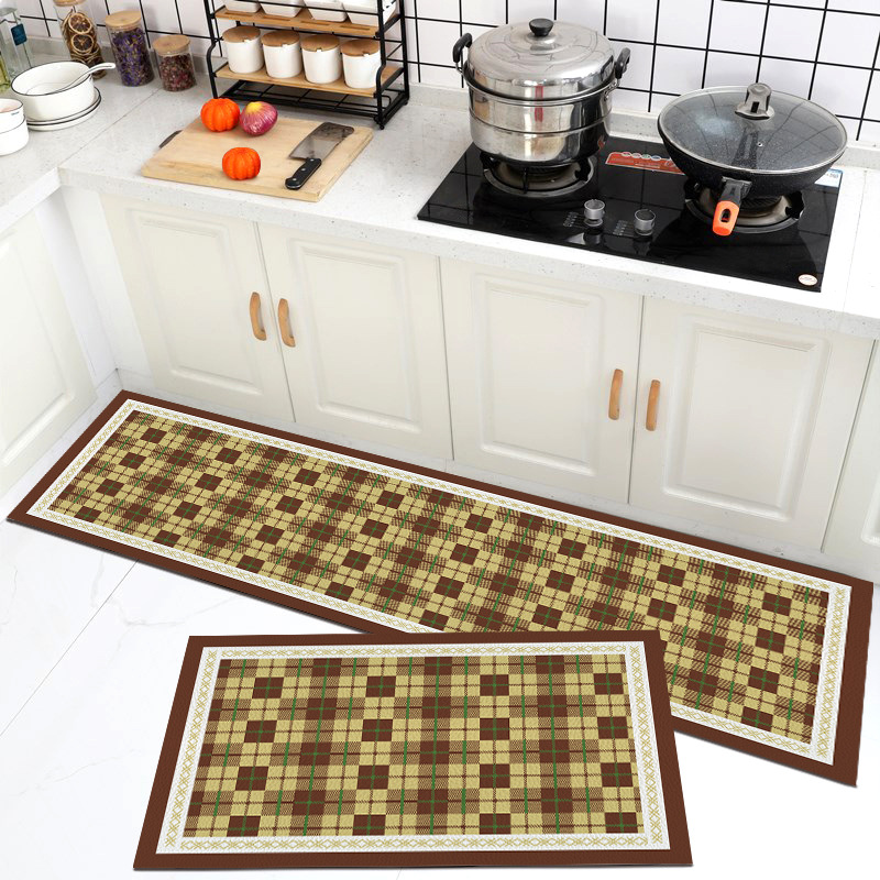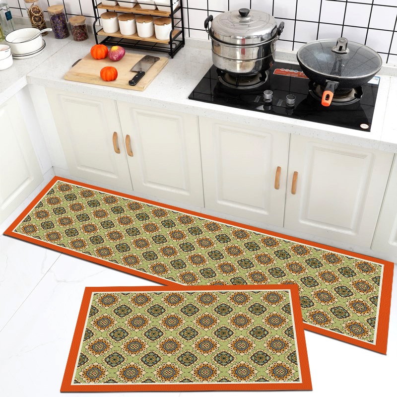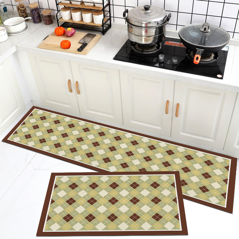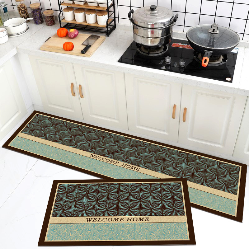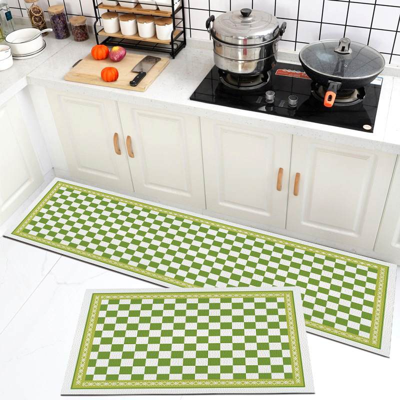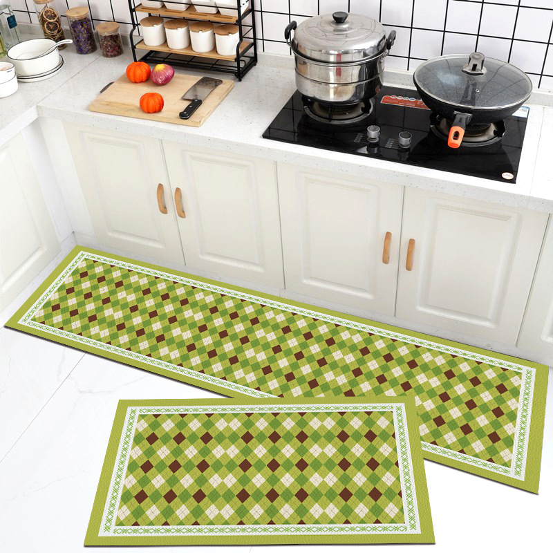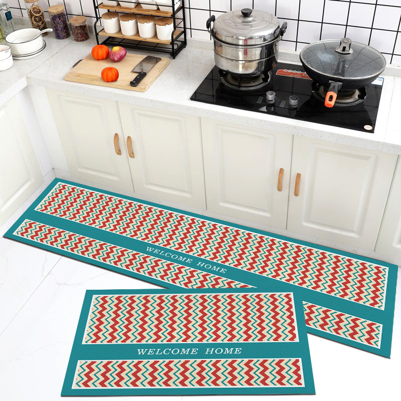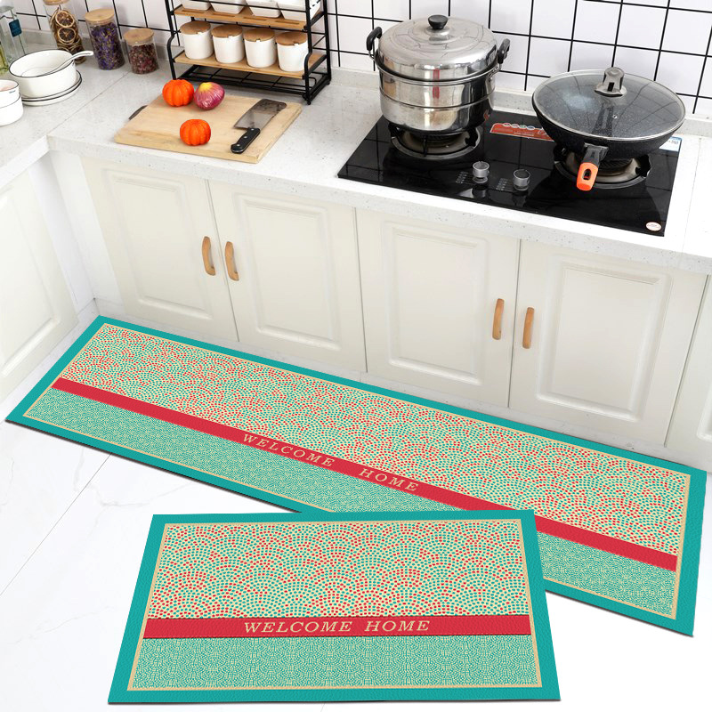 跨境现代简约长条厨房防滑垫地垫 家用防水防油PVC皮革脚垫易打理