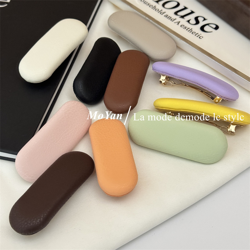 韩版彩色冰淇淋皮质海绵发夹甜美气质小夹子边夹侧边弹簧夹碎发夹