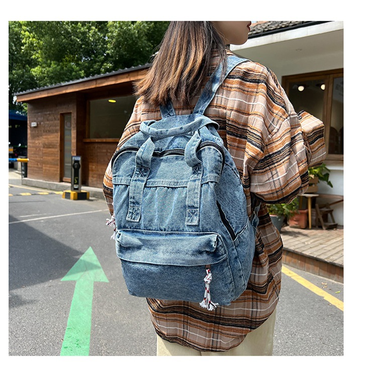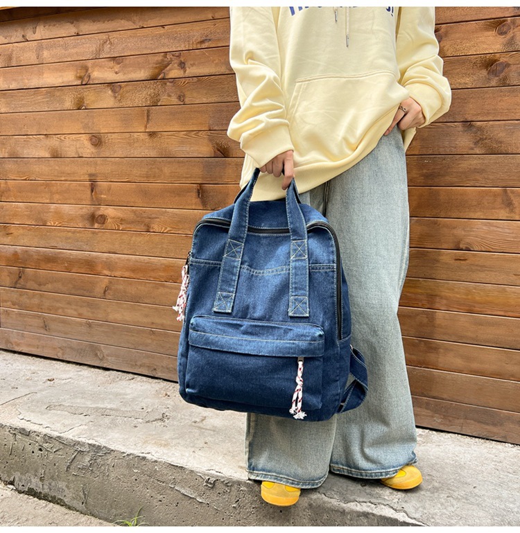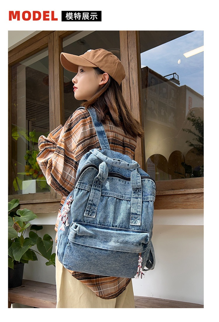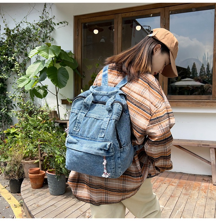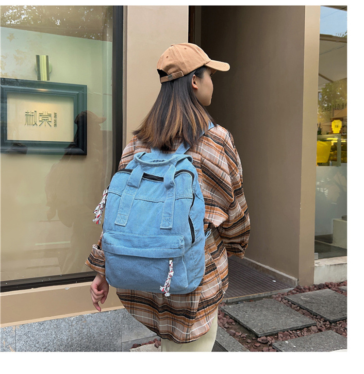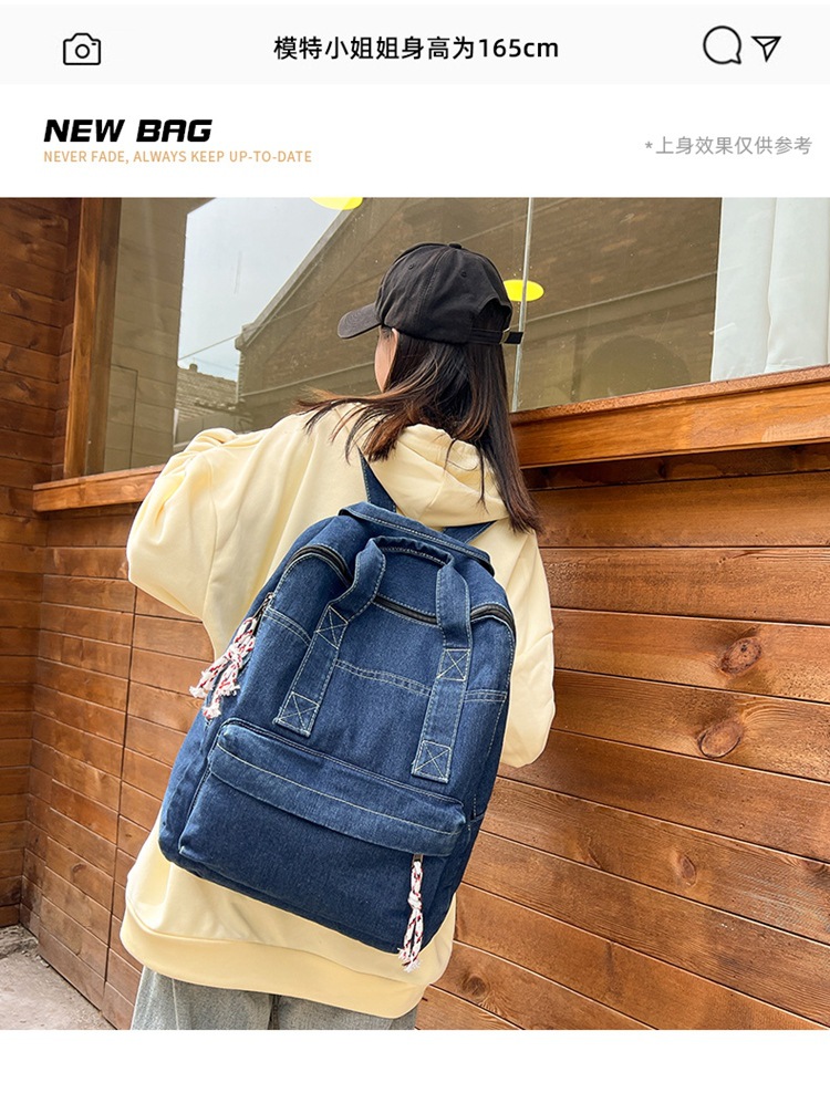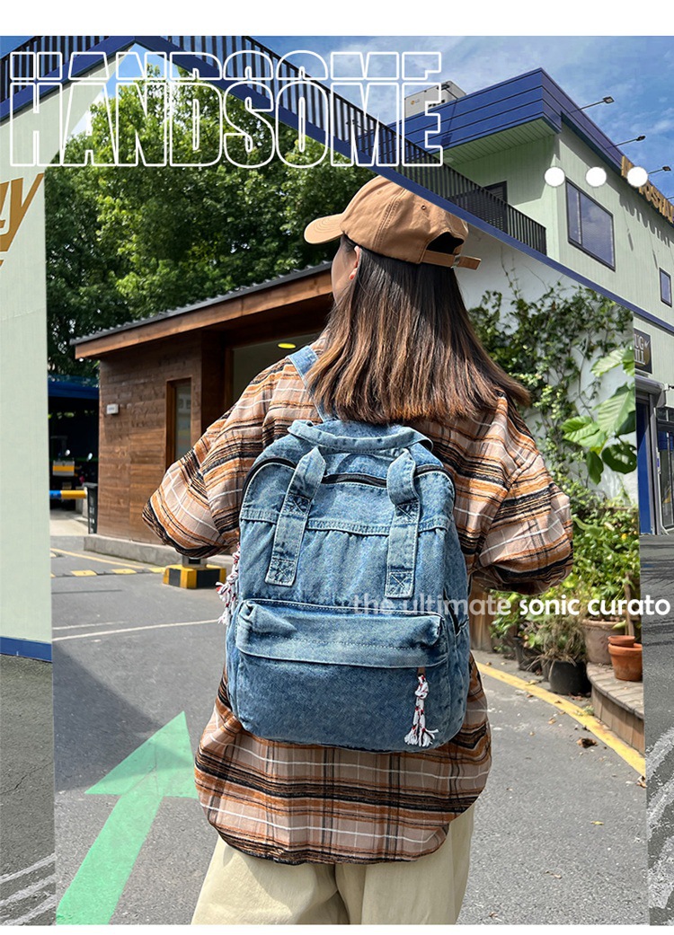 中学生书包男初中高中复古帆布双肩包女牛仔布背包
