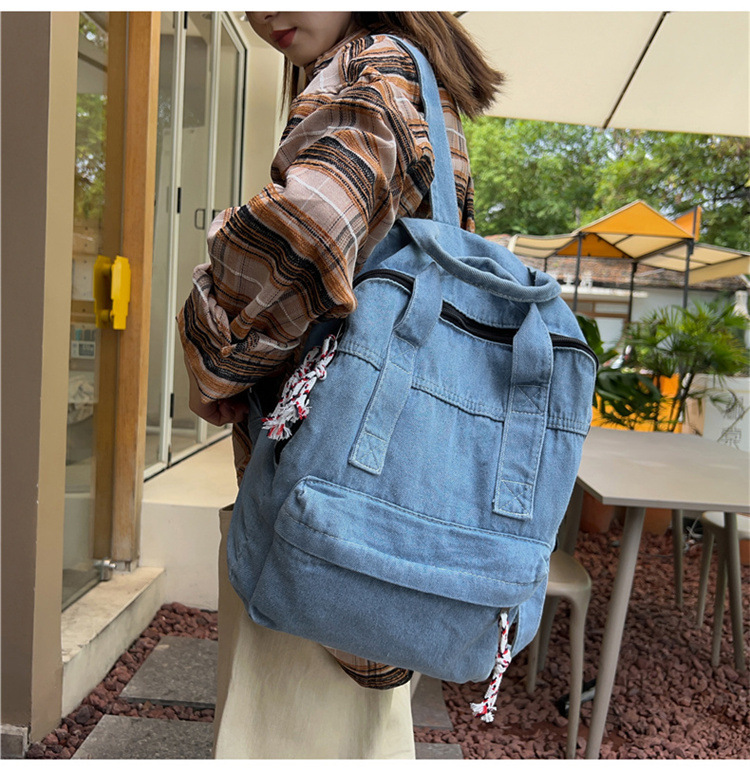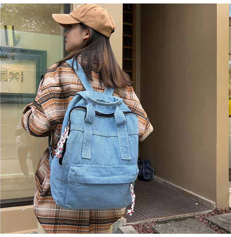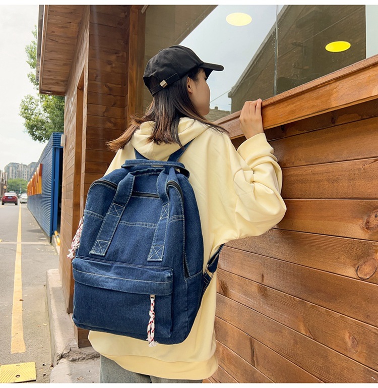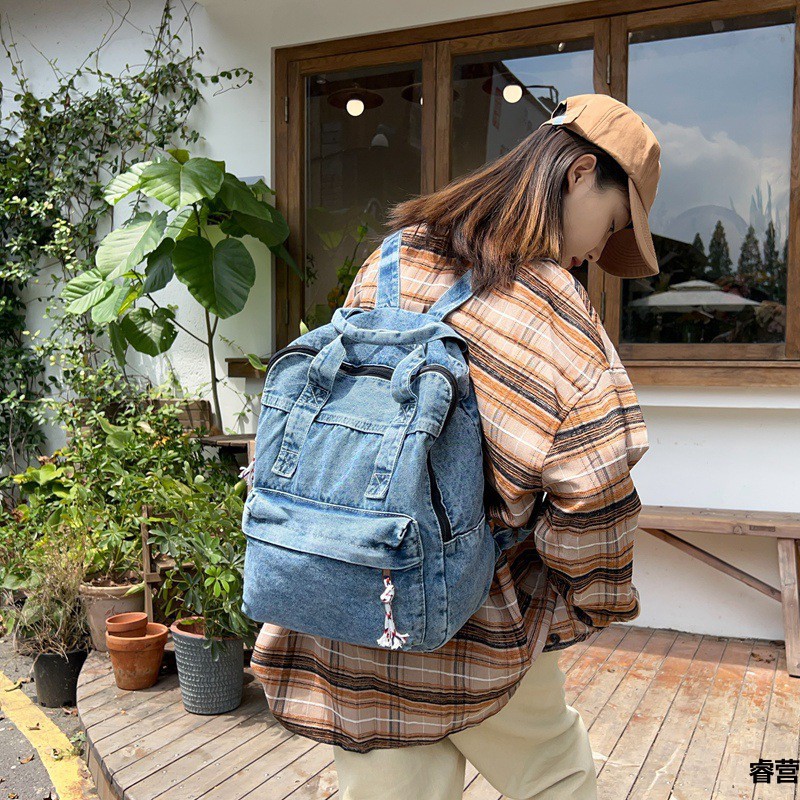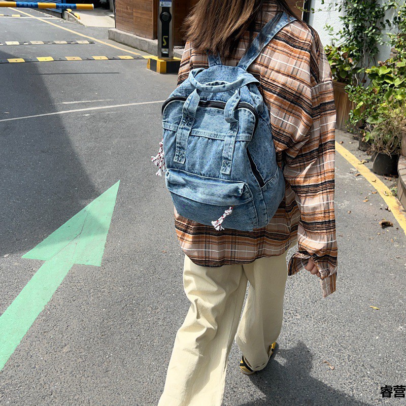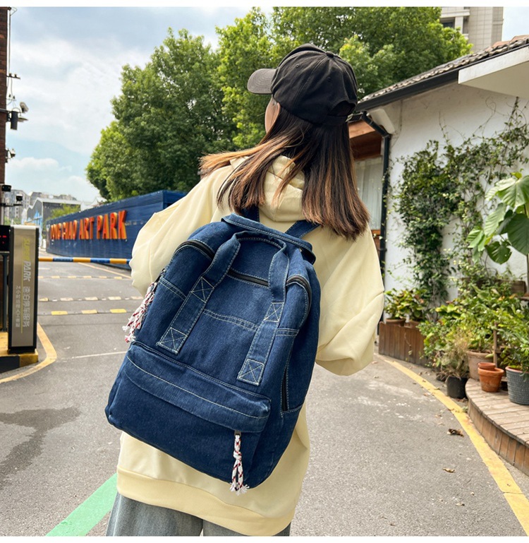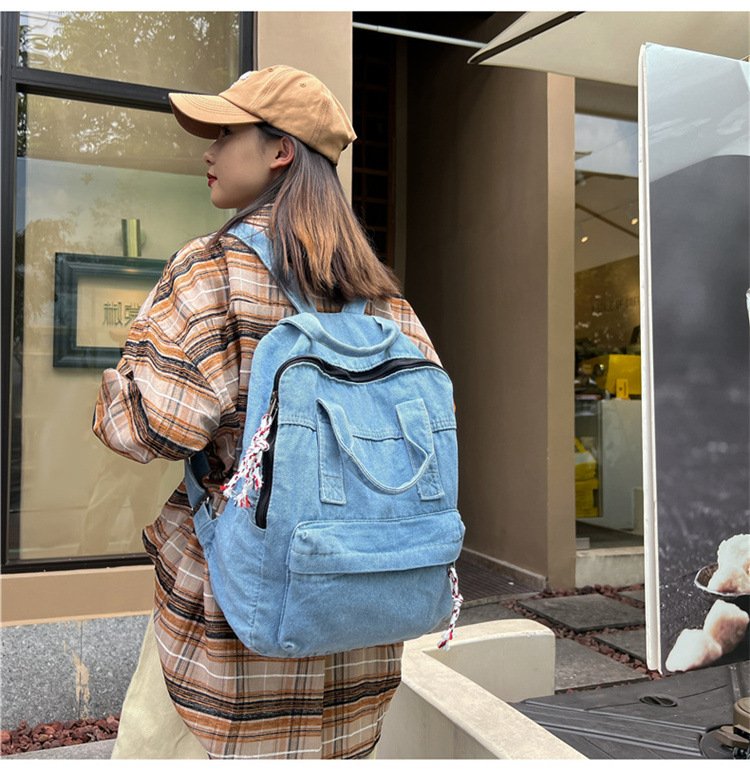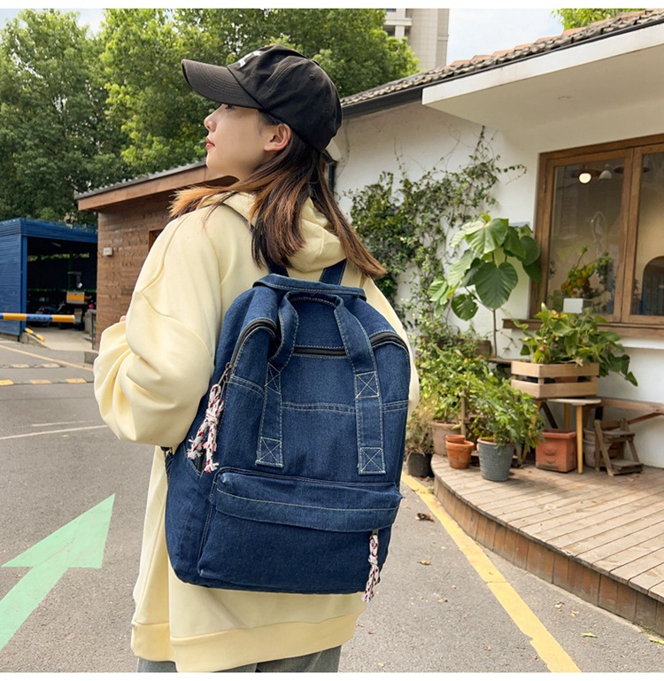 中学生书包男初中高中复古帆布双肩包女牛仔布背包
