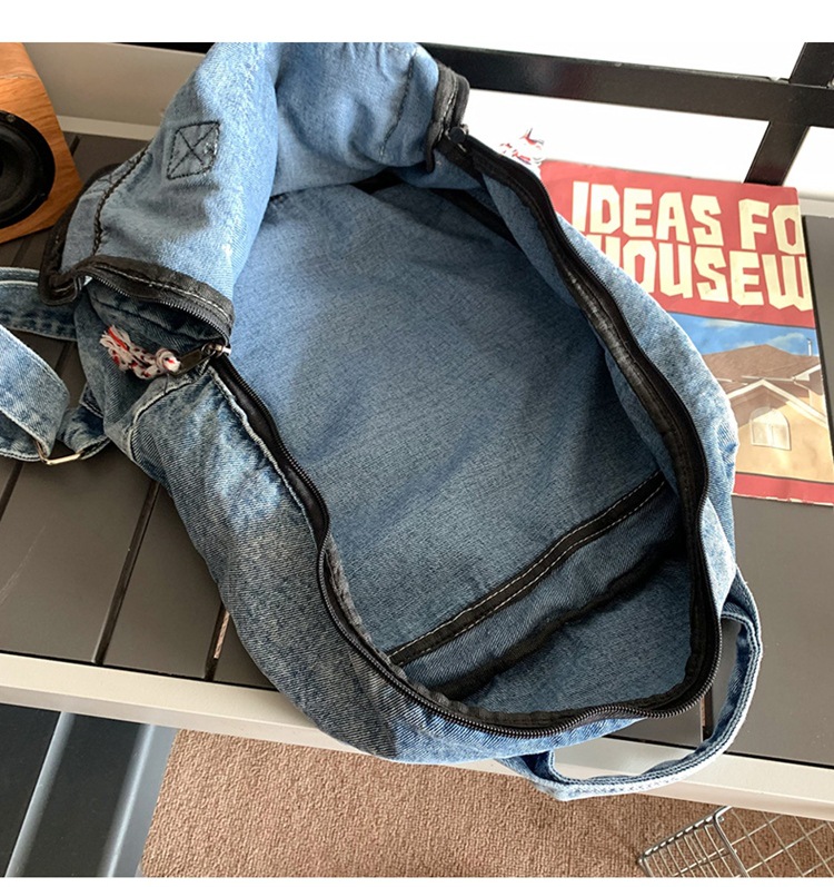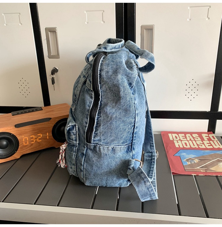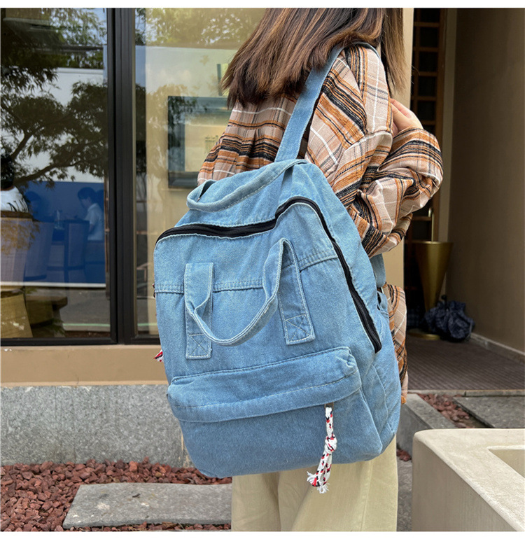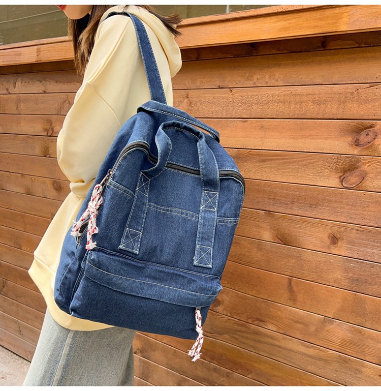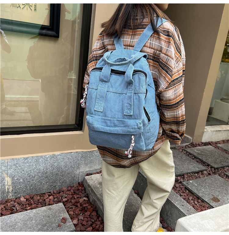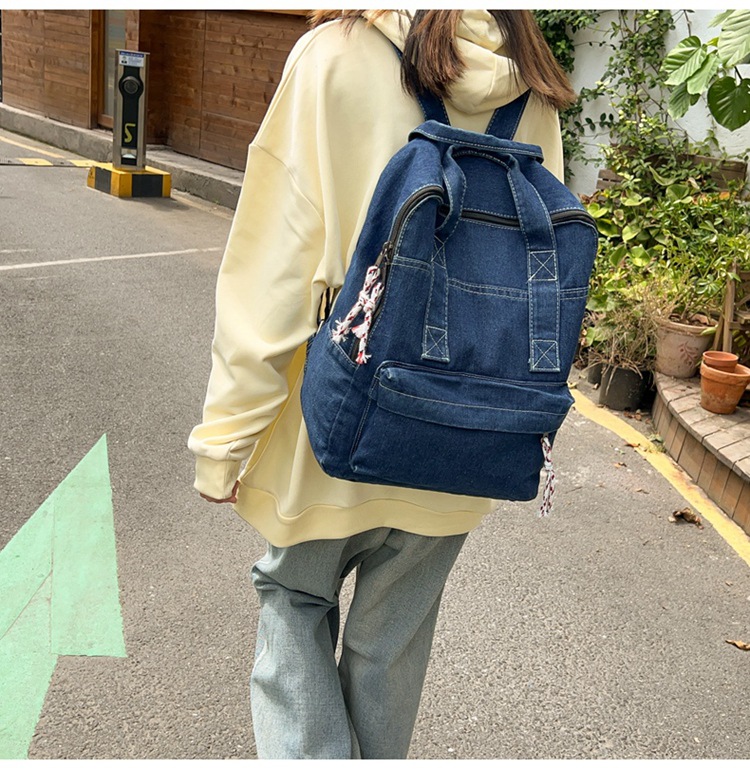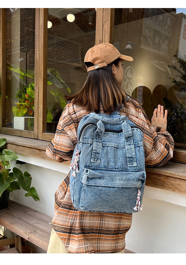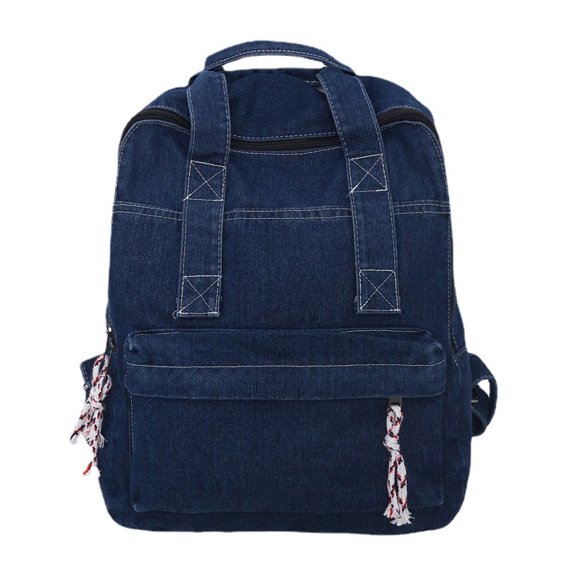 中学生书包男初中高中复古帆布双肩包女牛仔布背包