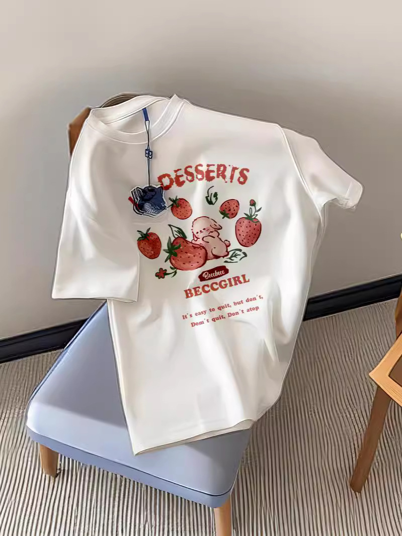 重磅夏季2024新款白色纯棉短袖t恤女百搭宽松设计感港风体恤潮ins