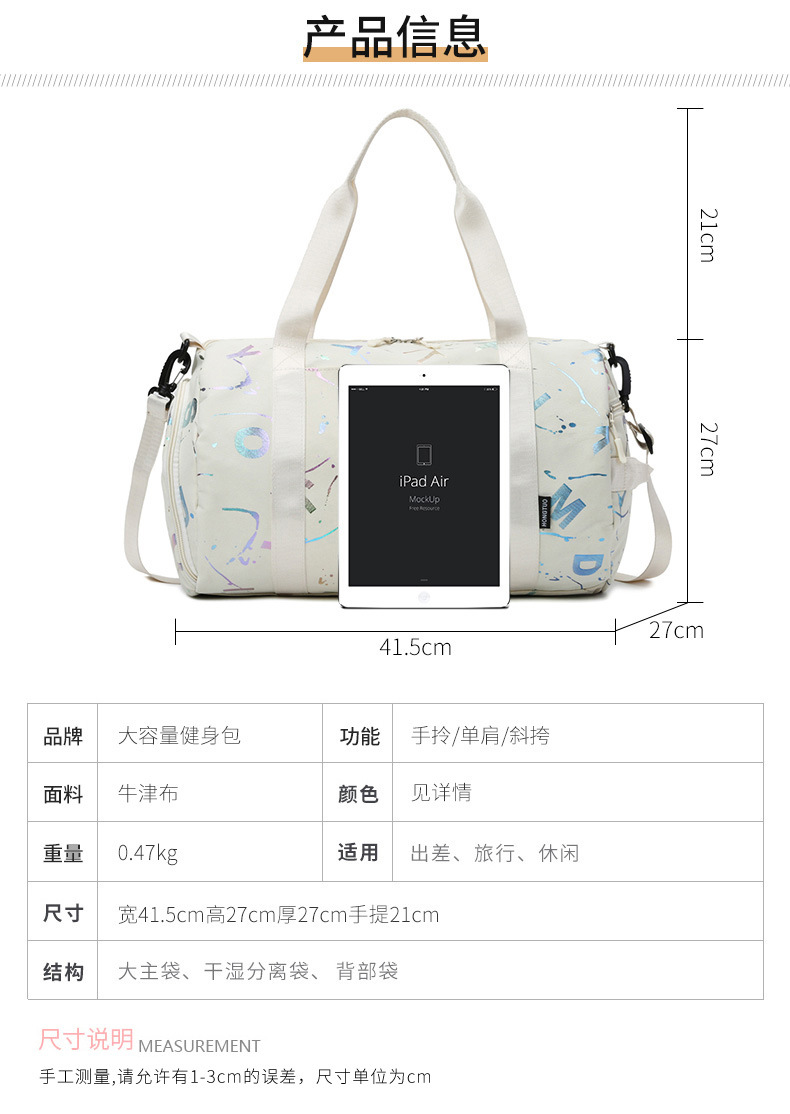 韩版休闲旅行包大容量瑜伽游泳包健身包干湿分离训练运动手提包