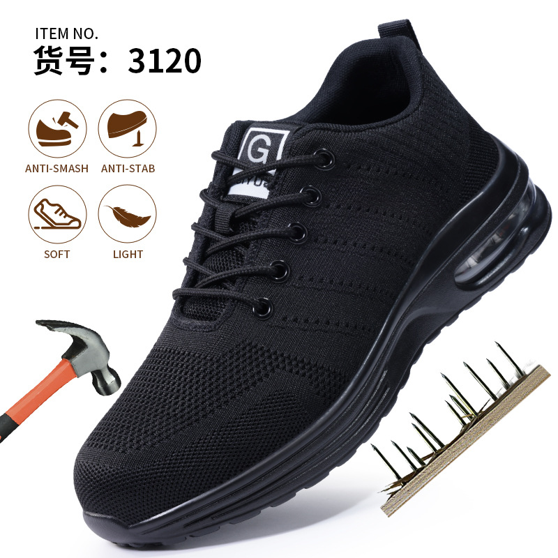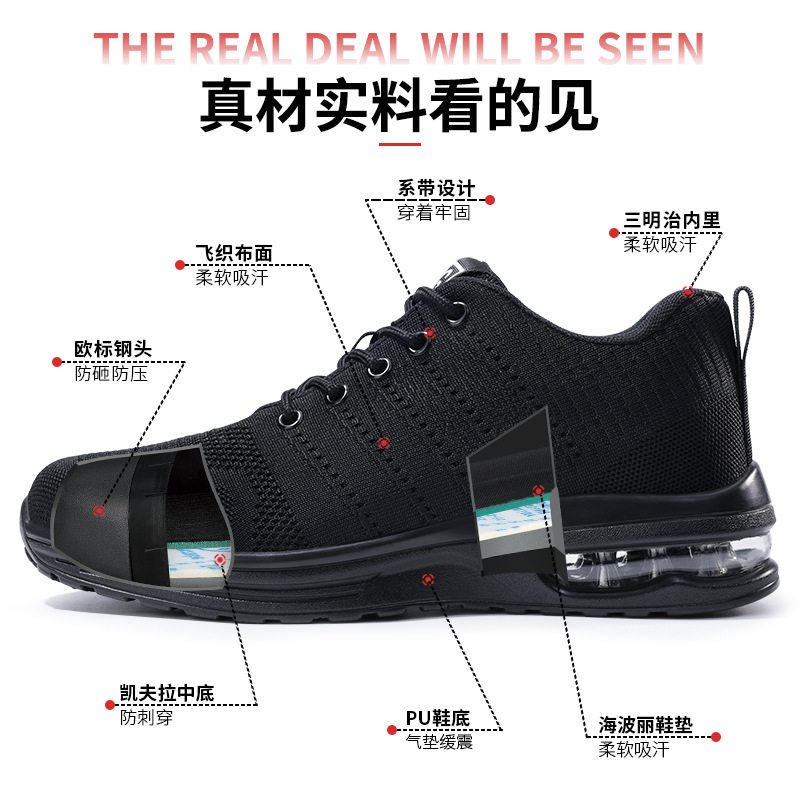 劳保鞋男防砸防刺穿气垫飞织轻便跨境舒适工作防护夏季安全鞋批发