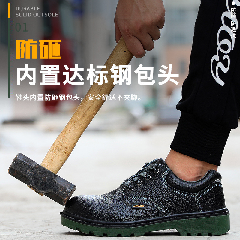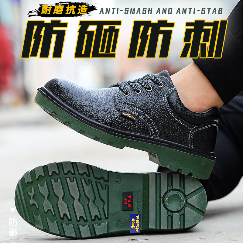 聚氨酯钢包头男女防砸防刺穿低帮绿底四季真皮劳保鞋安全防护