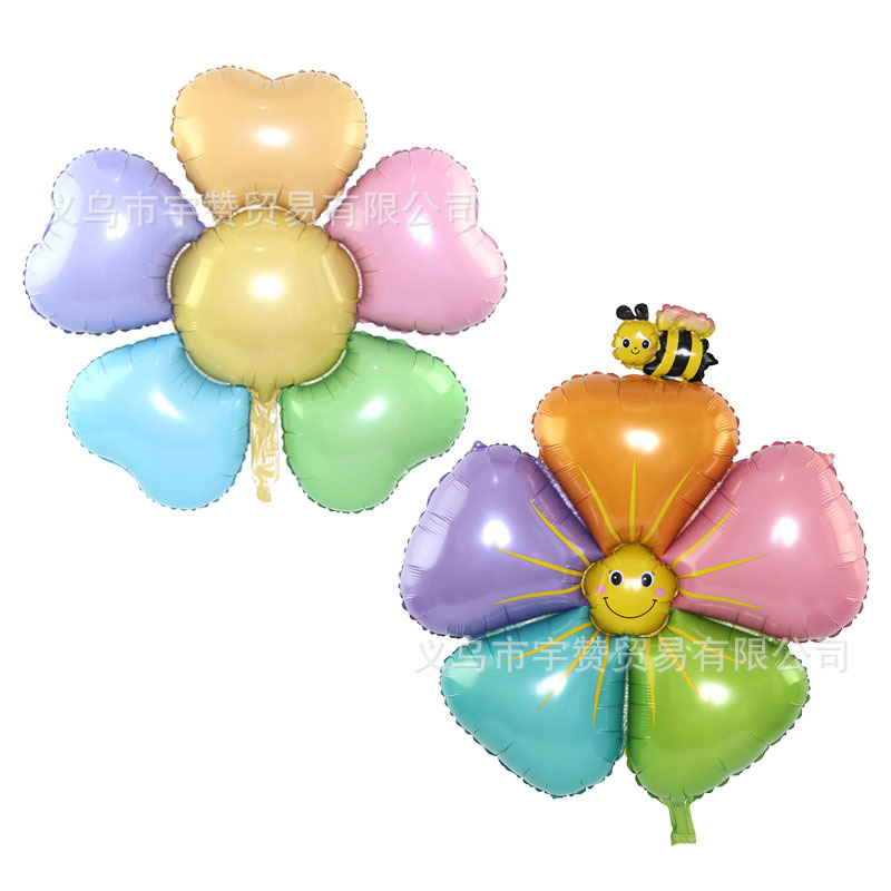 新款六一儿童节生日布置装饰花朵气球马卡龙七彩蜜蜂雏菊铝膜气球