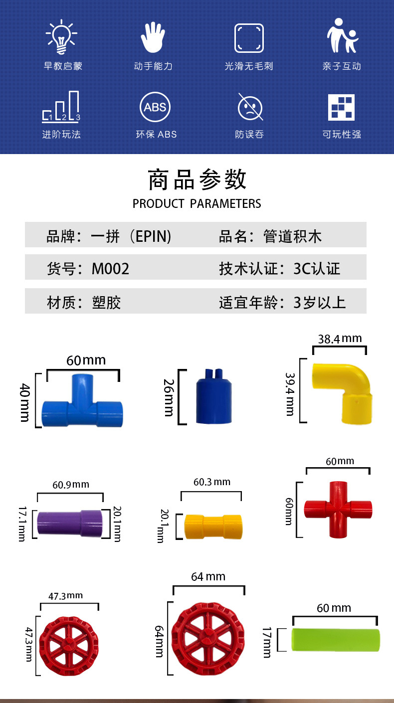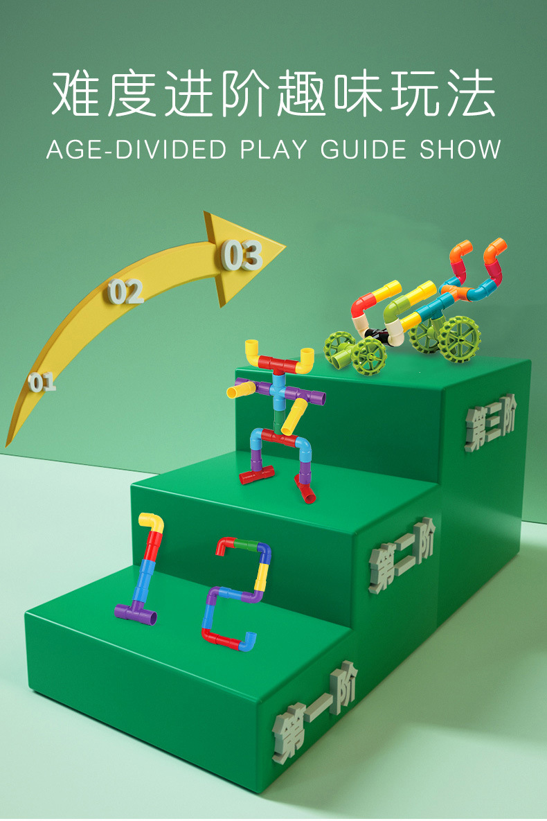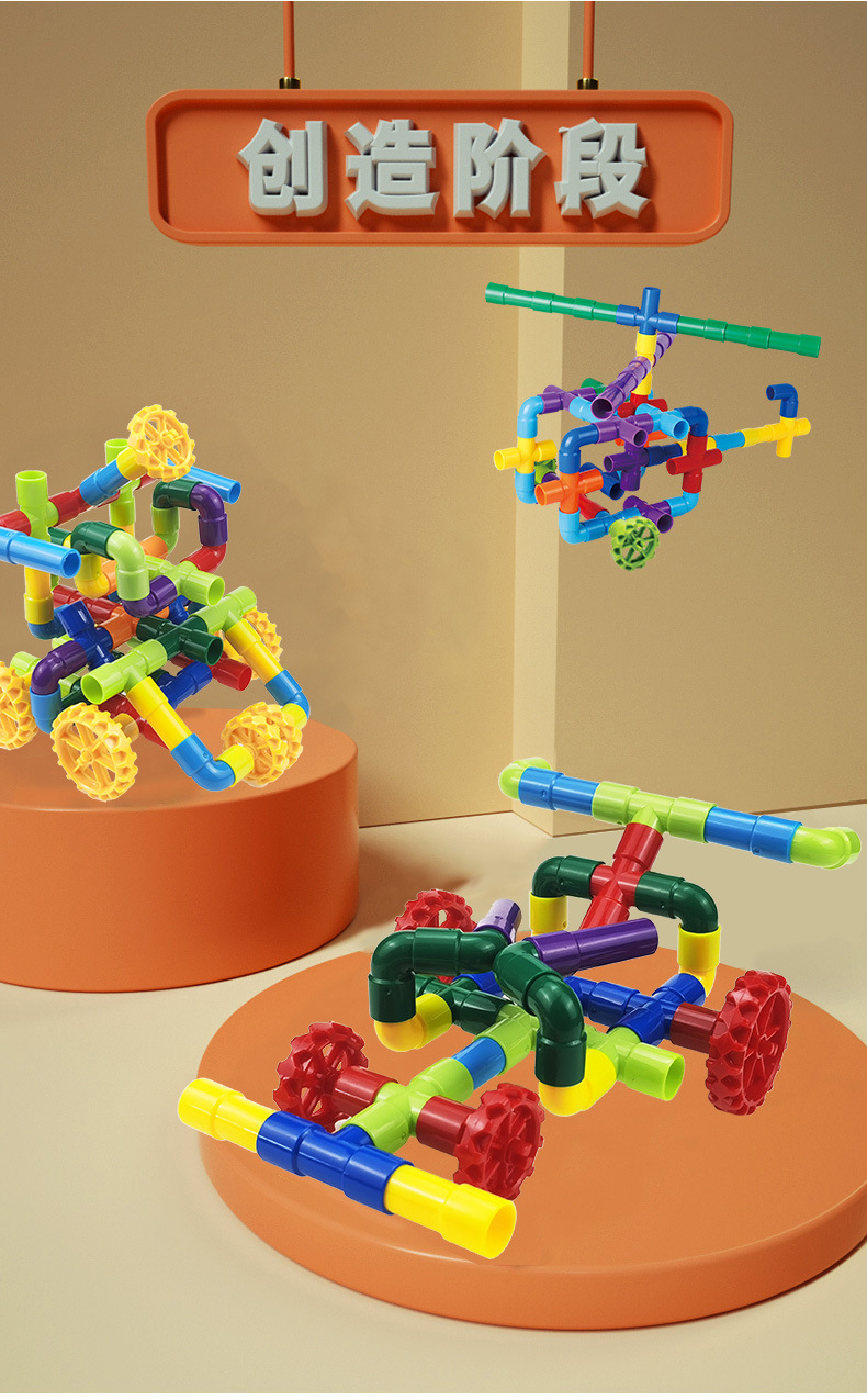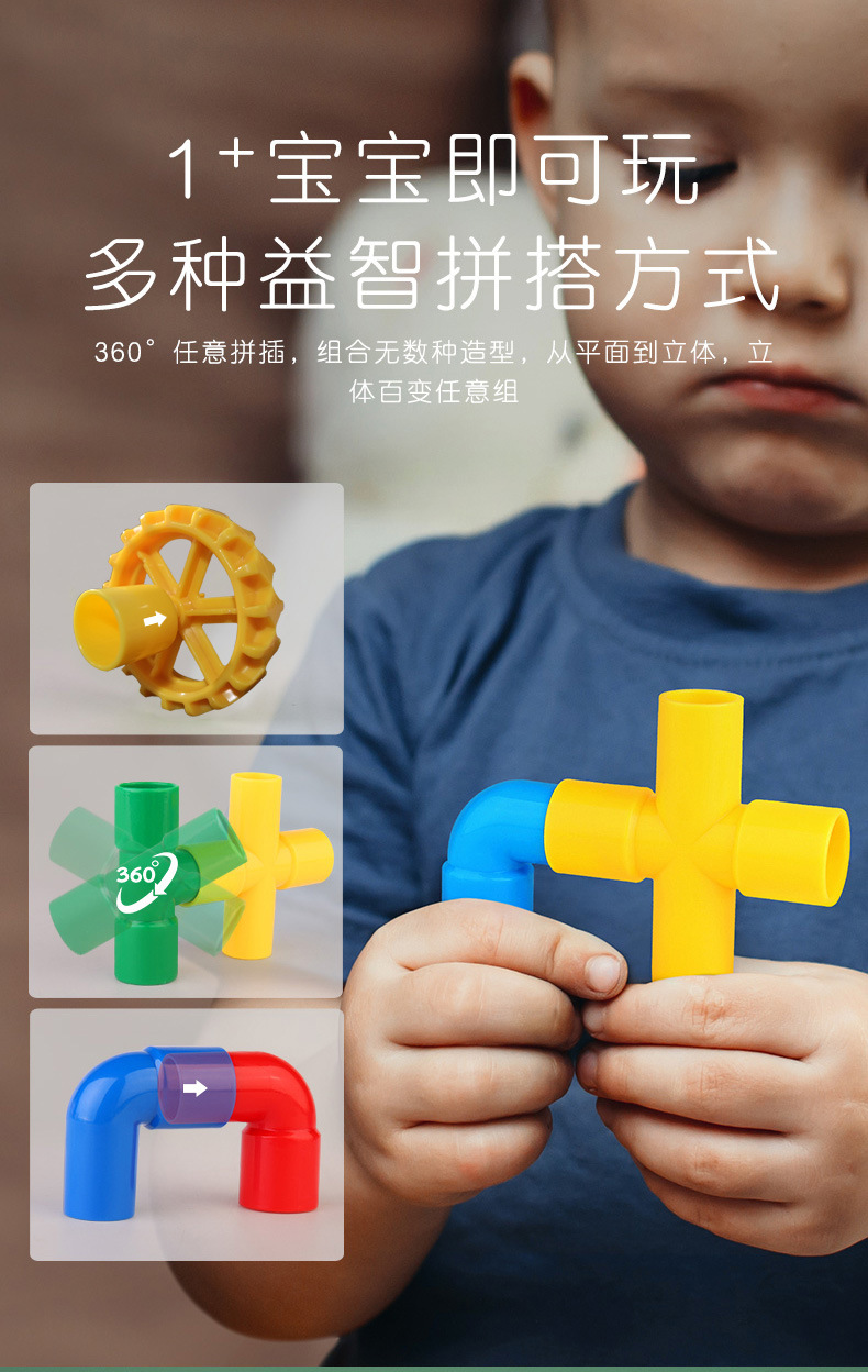 六一儿童节礼物玩具拼装大颗粒水管道积木幼儿园男孩女孩早教益智