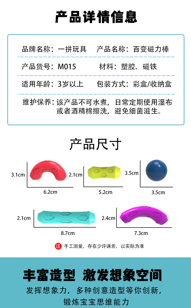 百变磁力棒积木拼装儿童大颗粒男孩女孩宝宝磁铁早教磁力玩具益智
