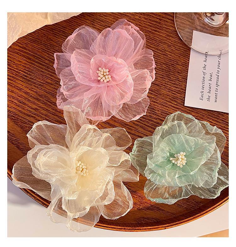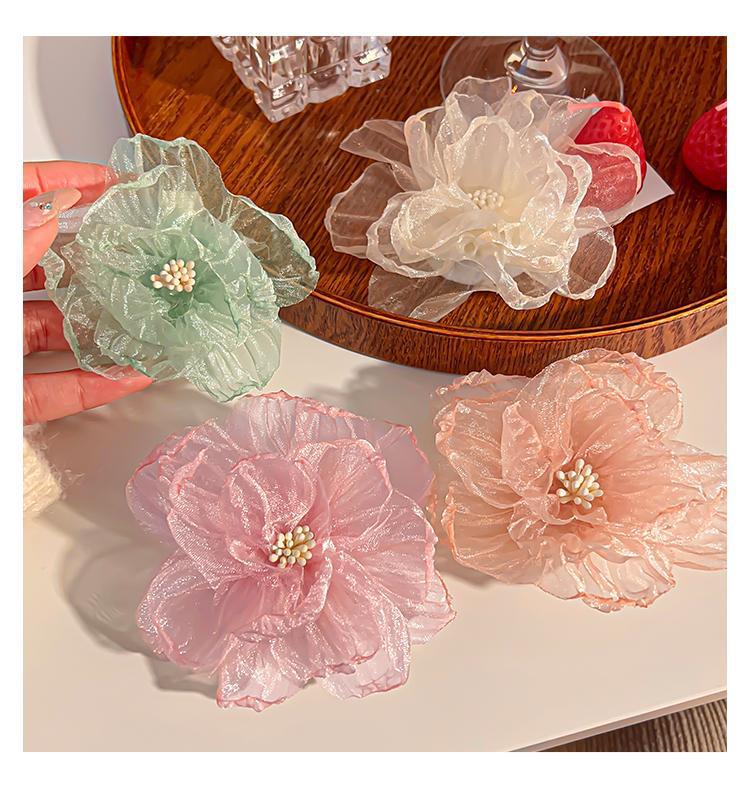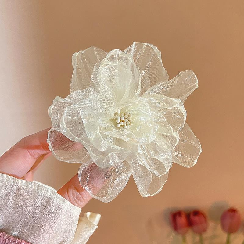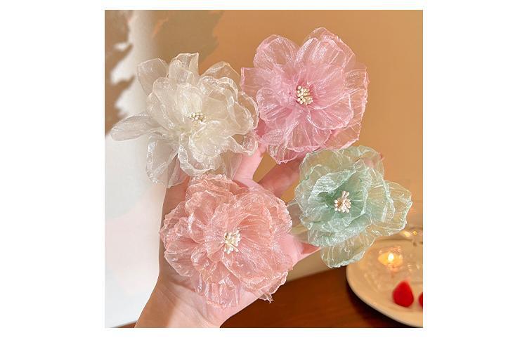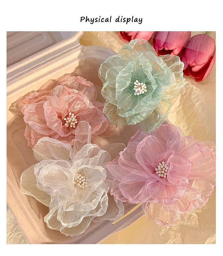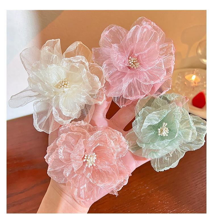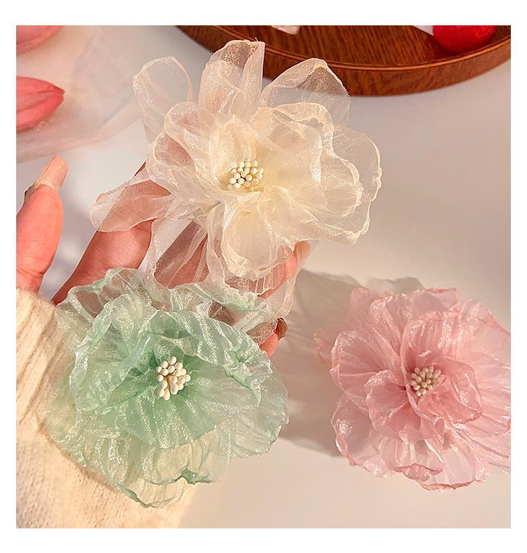 超仙欧根纱花朵发夹边夹女新款度假风刘海夹森系花花夹子头饰2024