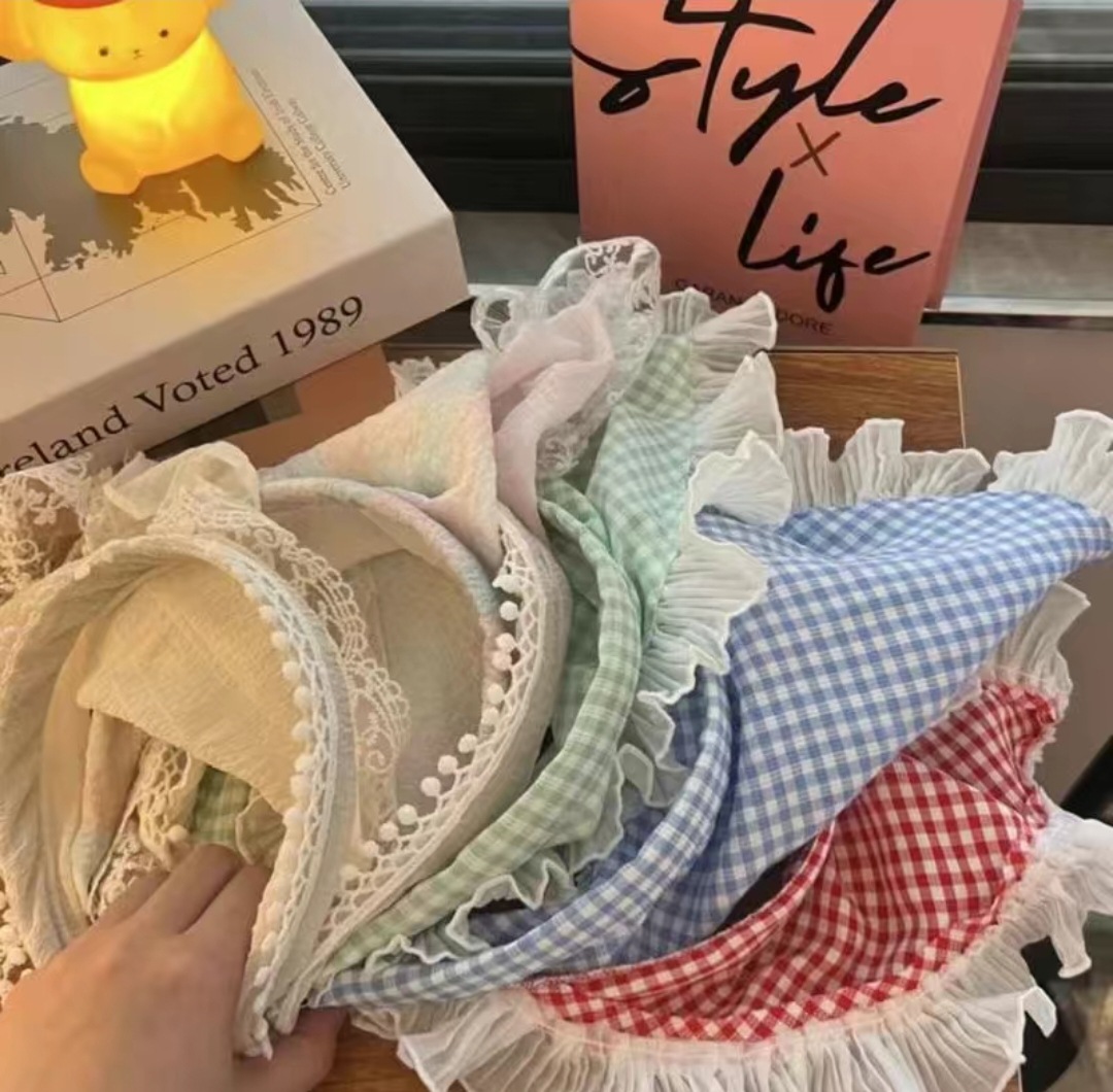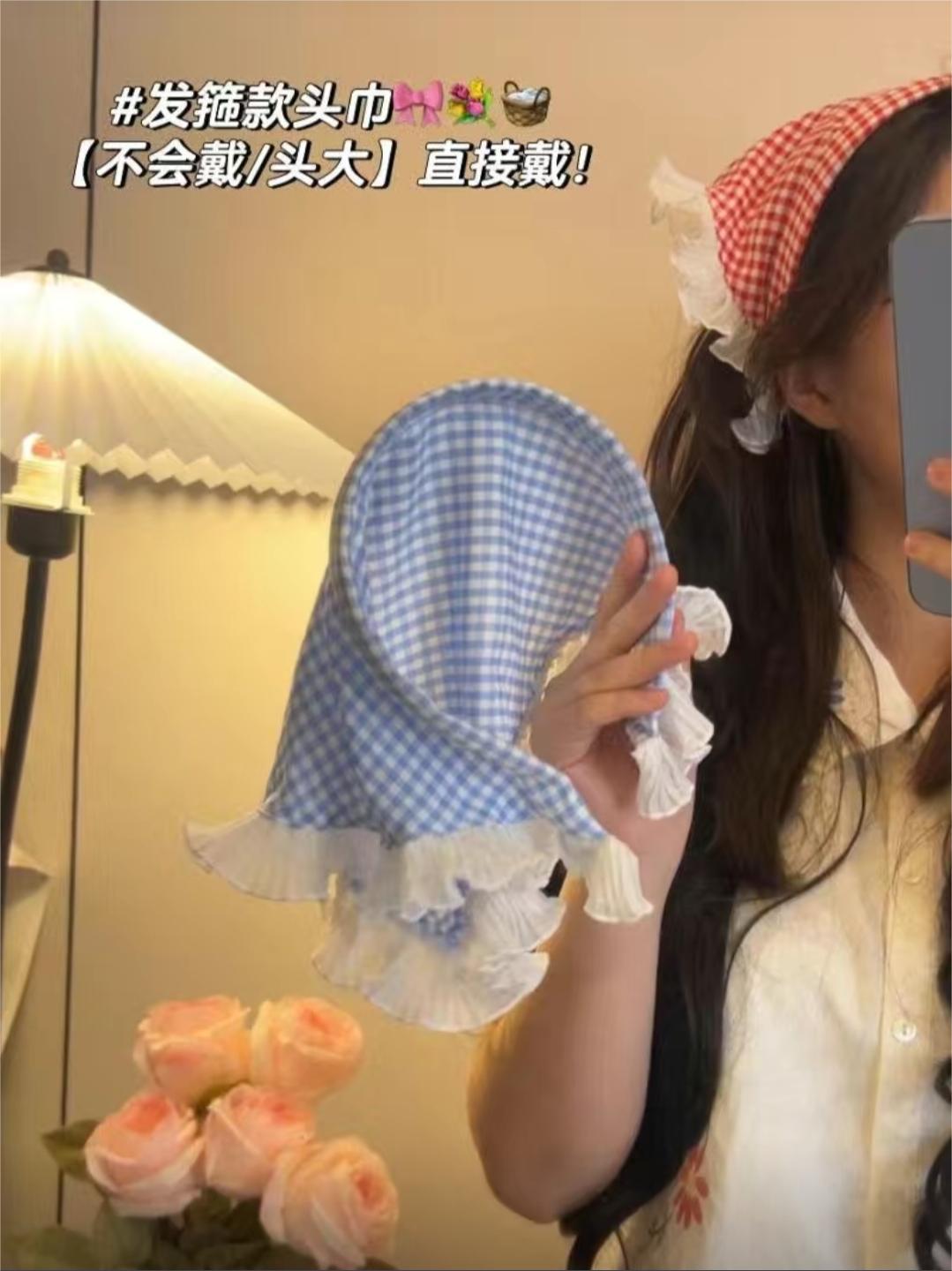懒人神器发箍款头巾田园风格子木耳边头箍2024新款春夏发带三角巾