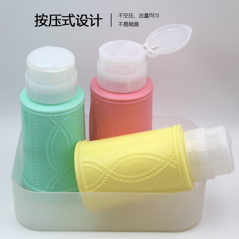 彩色压瓶4新款美甲按压空瓶带锁防漏清洁剂卸甲洗甲水分装瓶压瓶