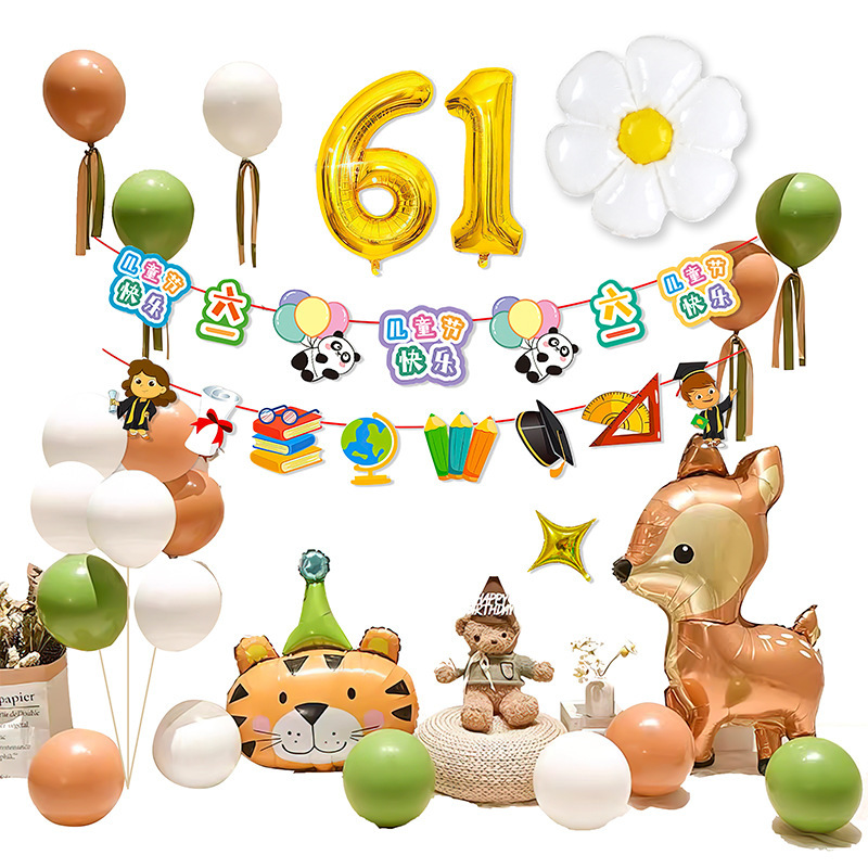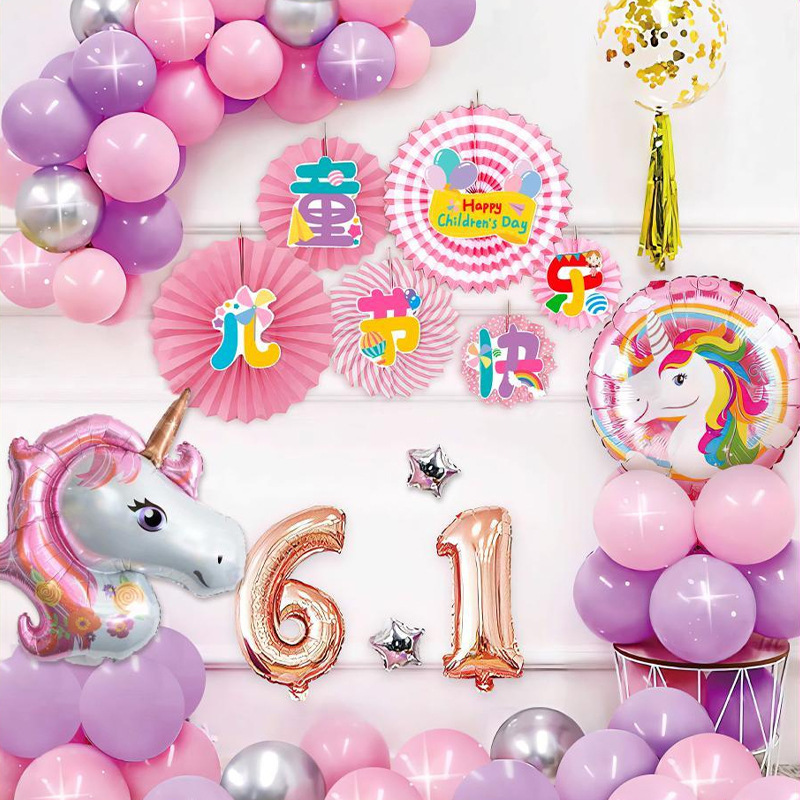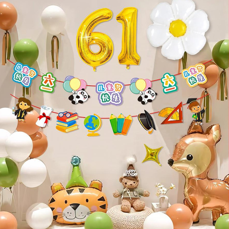 61六一儿童节气球套装商场学校幼儿园背景墙节日氛围布置铝膜气球