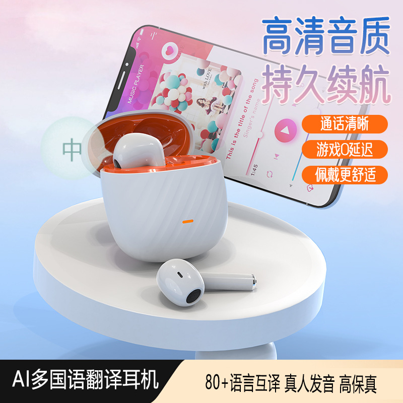 多国语翻译蓝牙TWS耳机 触控语音翻译超长待机蓝牙5.3适合IOS安卓