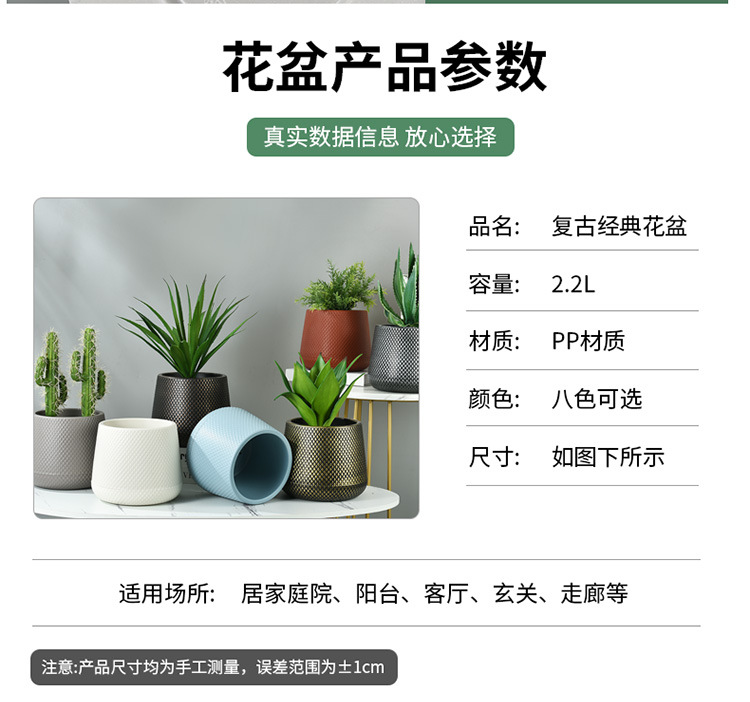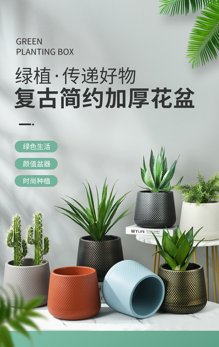 复古简约百搭加厚多色混搭分体式环保居家经典圆形花盆种植盆