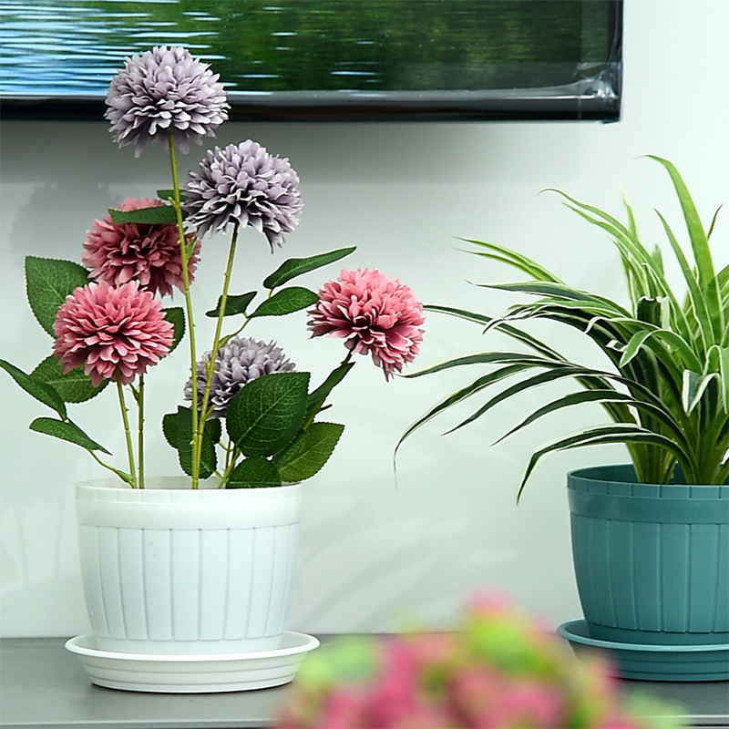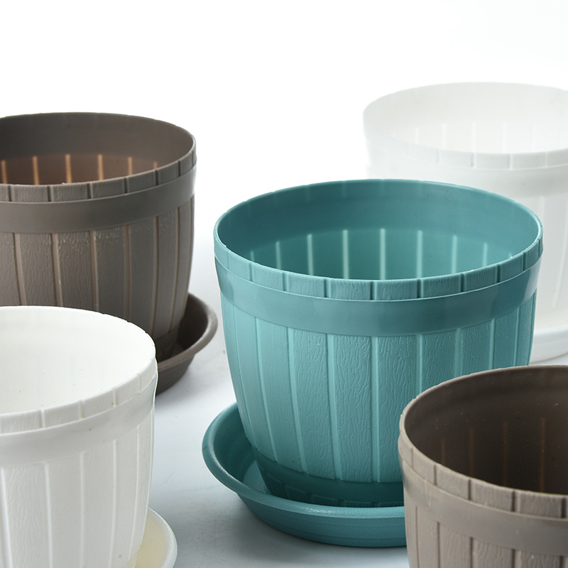 厂家直营地摊简约仿木桶多肉磨砂塑料圆形小花盆