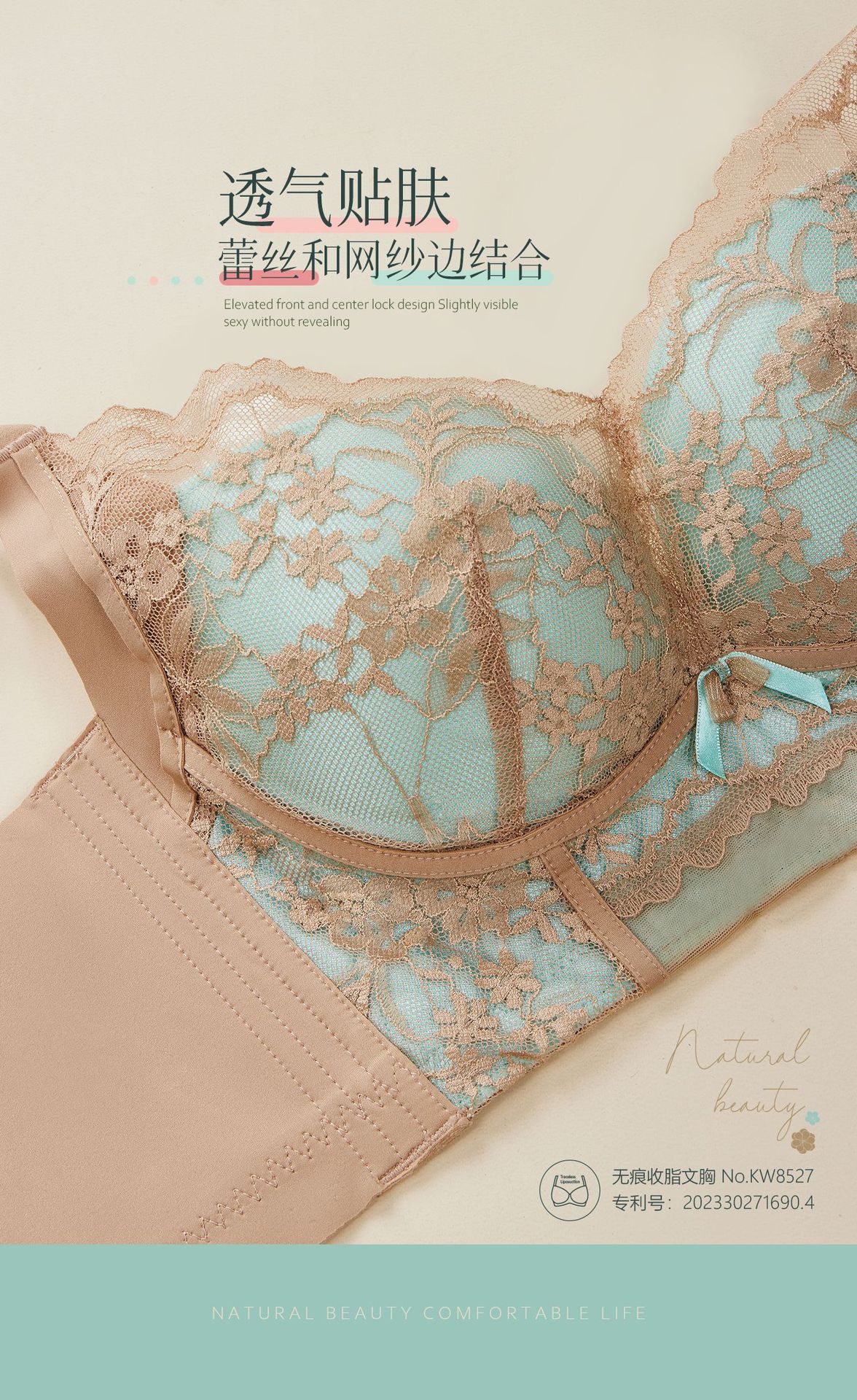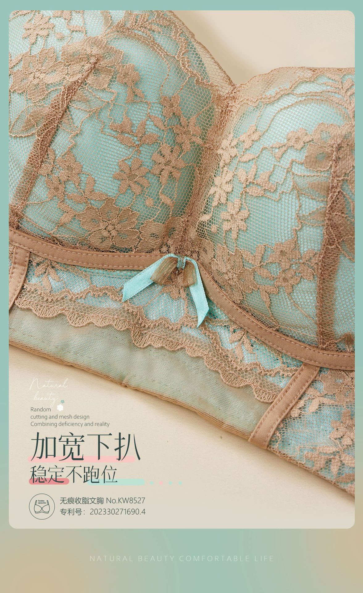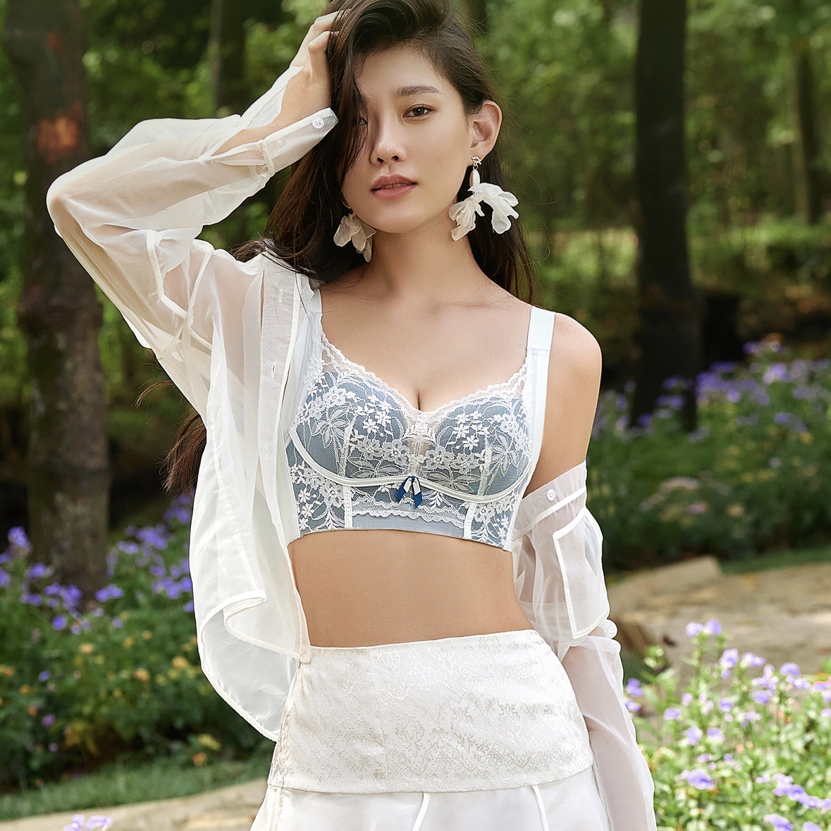 高档蕾丝胸罩女聚拢无钢圈收副乳调整型小胸显大薄款五排扣内衣