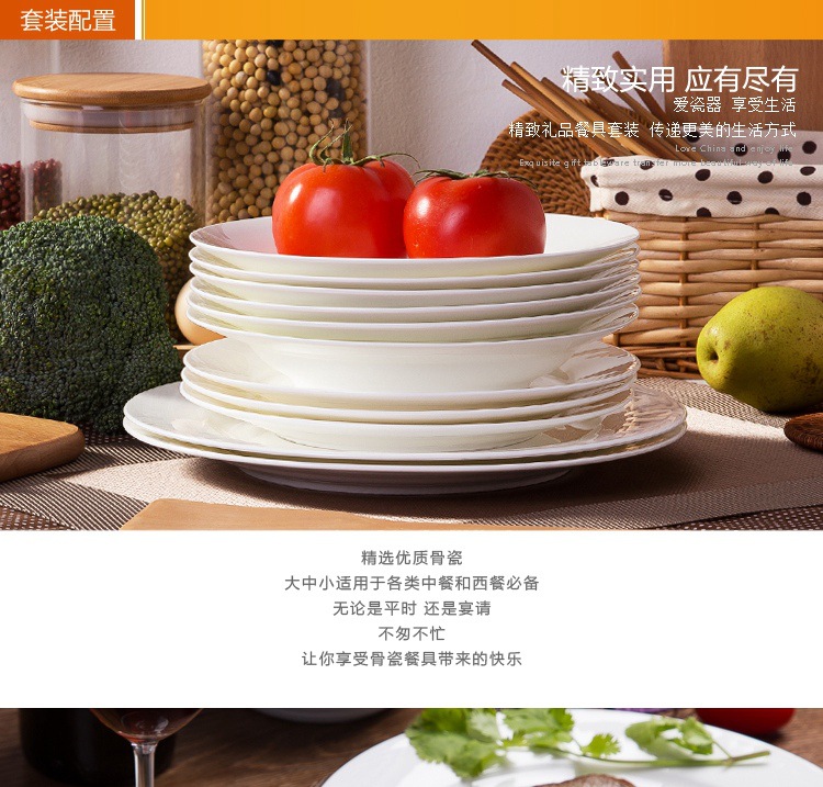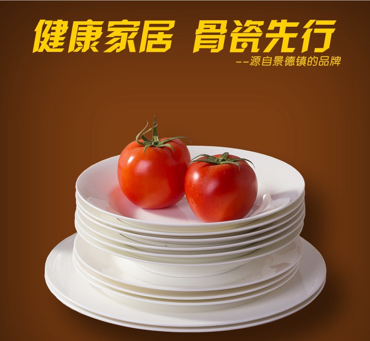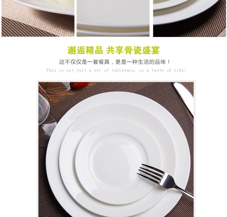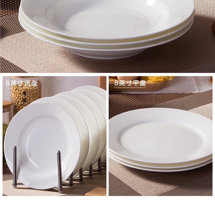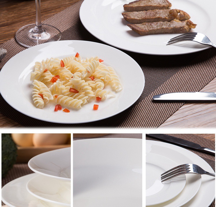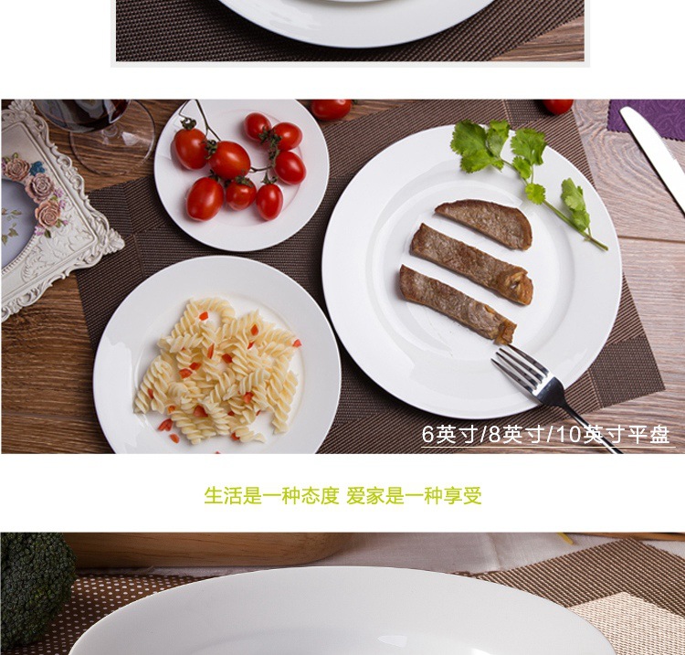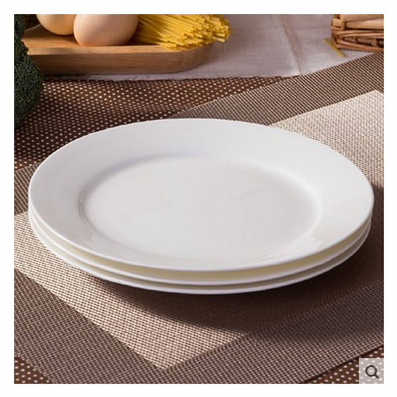 纯白色圆形碟子家用骨瓷菜盘子6英寸8寸10寸平盘陶瓷牛排西餐盘