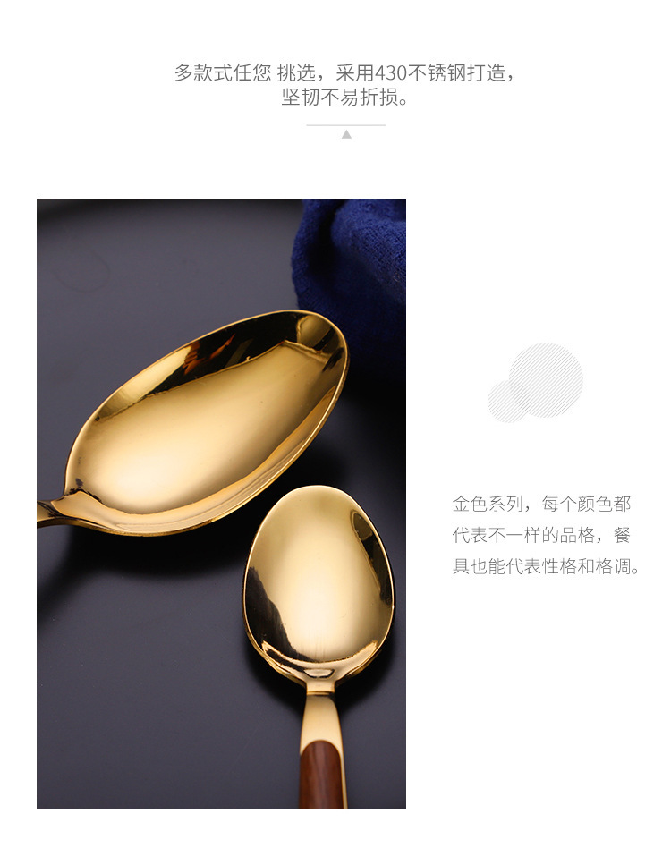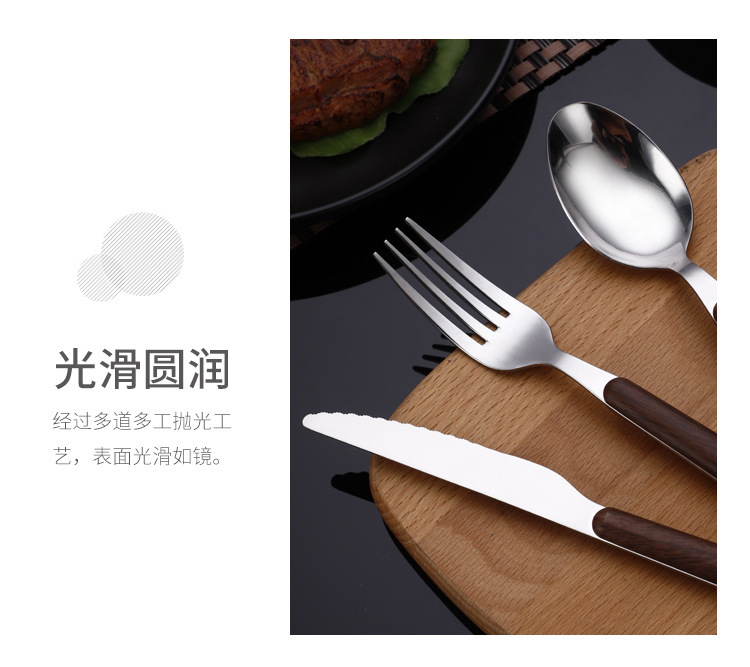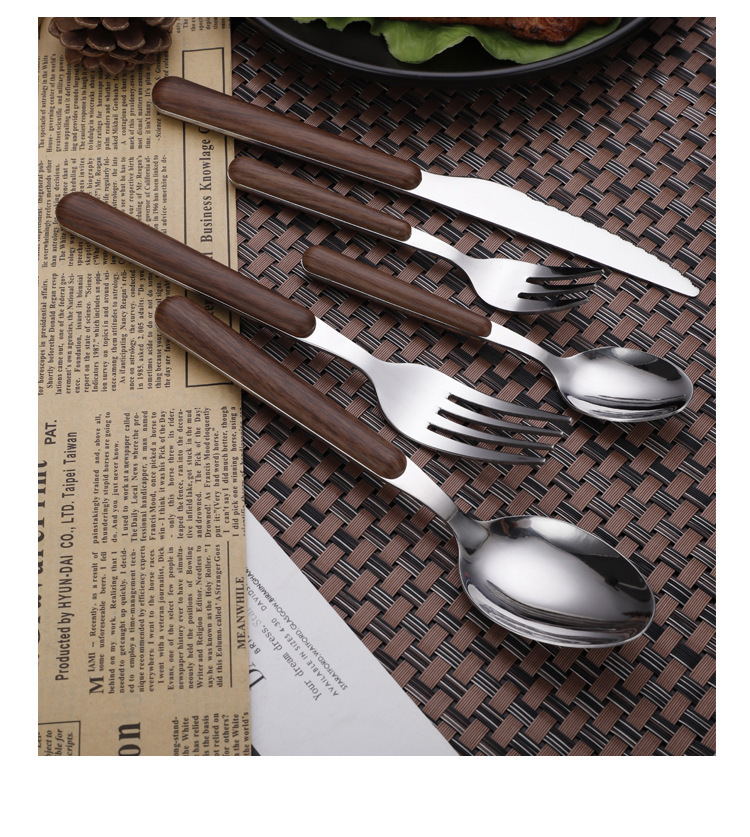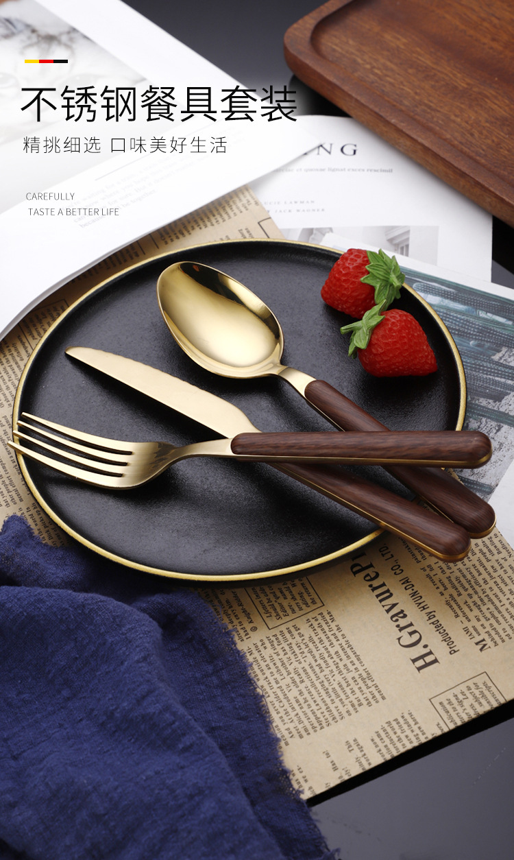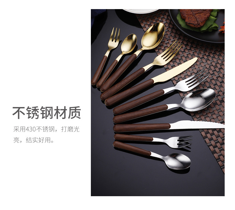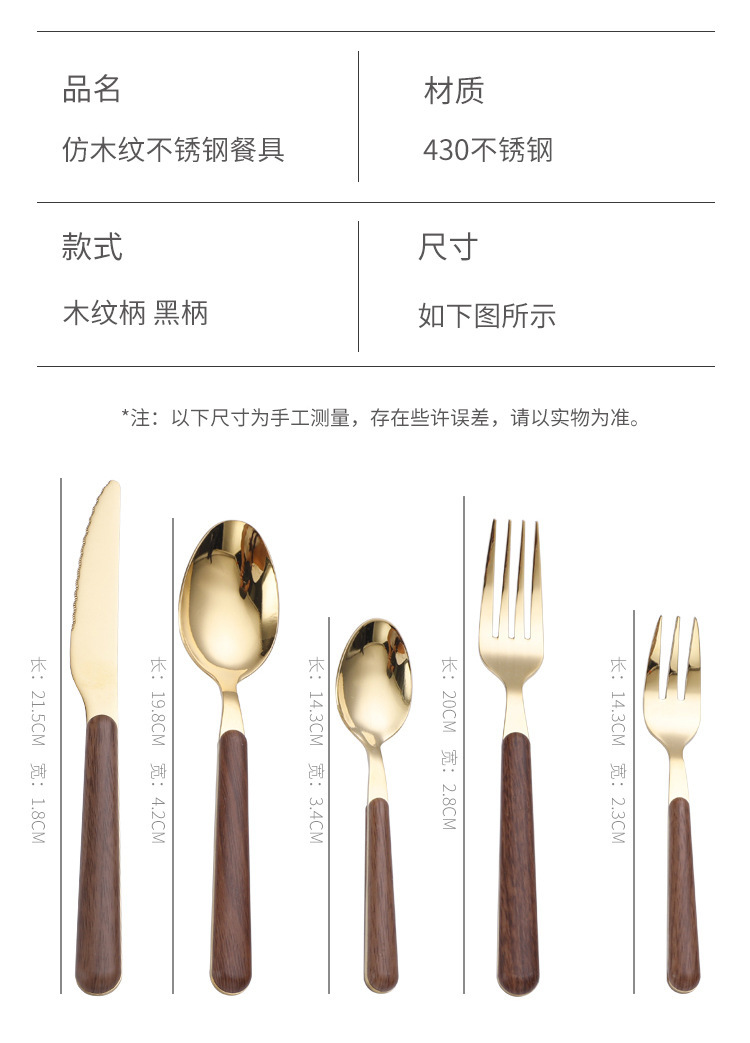 便携风夹柄不锈钢餐具牛排全套刀叉勺甜品品质仿木勺子叉子高颜值
