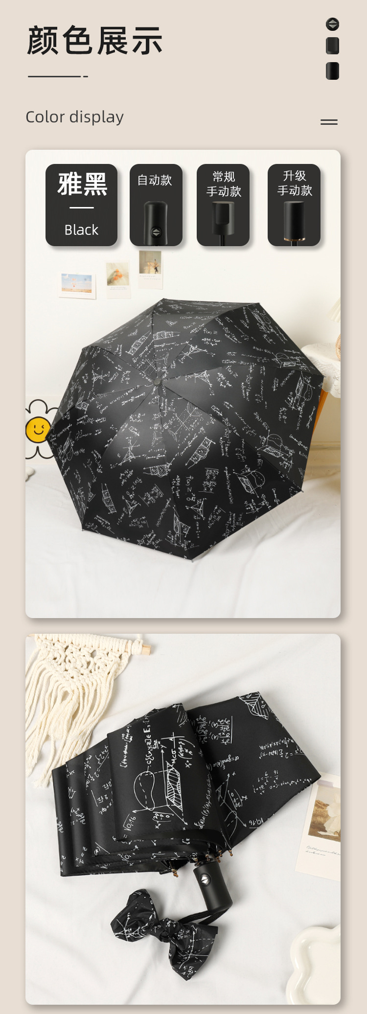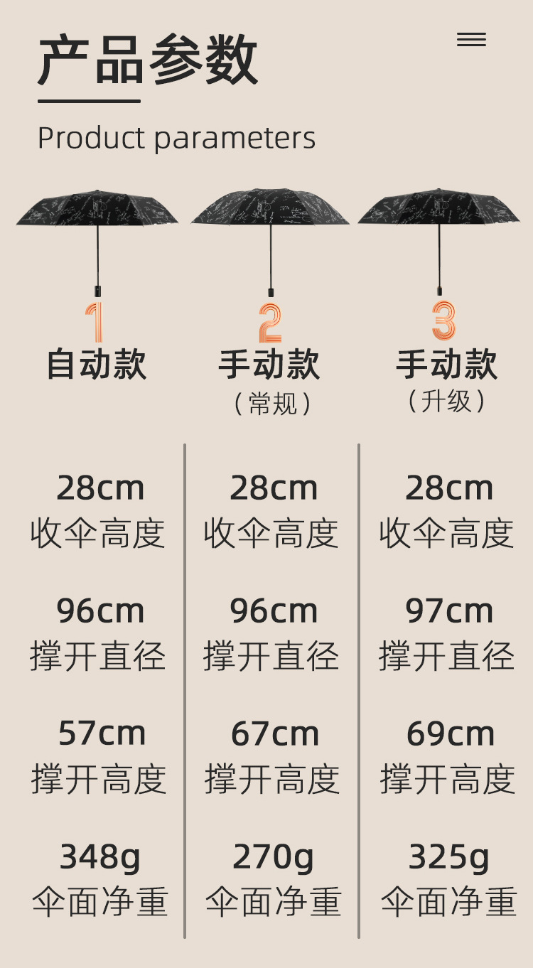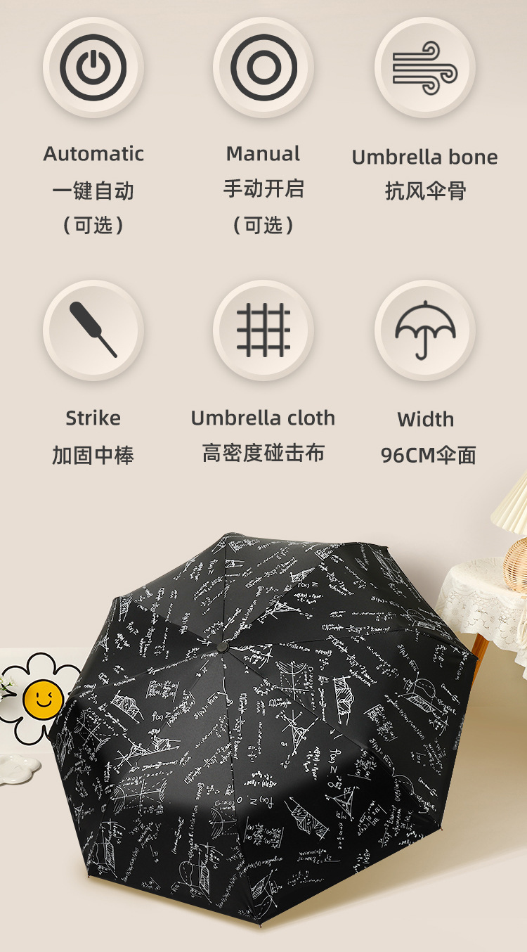 数学公式学霸伞黑胶晴雨伞防紫外线遮阳太阳伞学生伞厂家现货批发