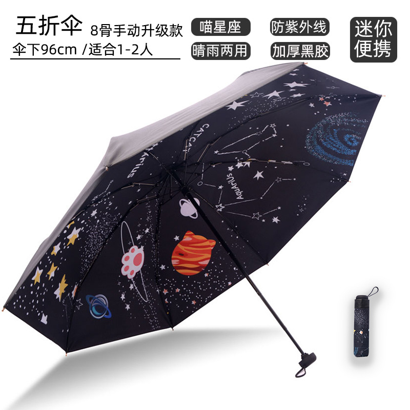 雨伞迷你五折星空小黑伞遮阳防紫外线晴雨两用数码印刷图案广告伞