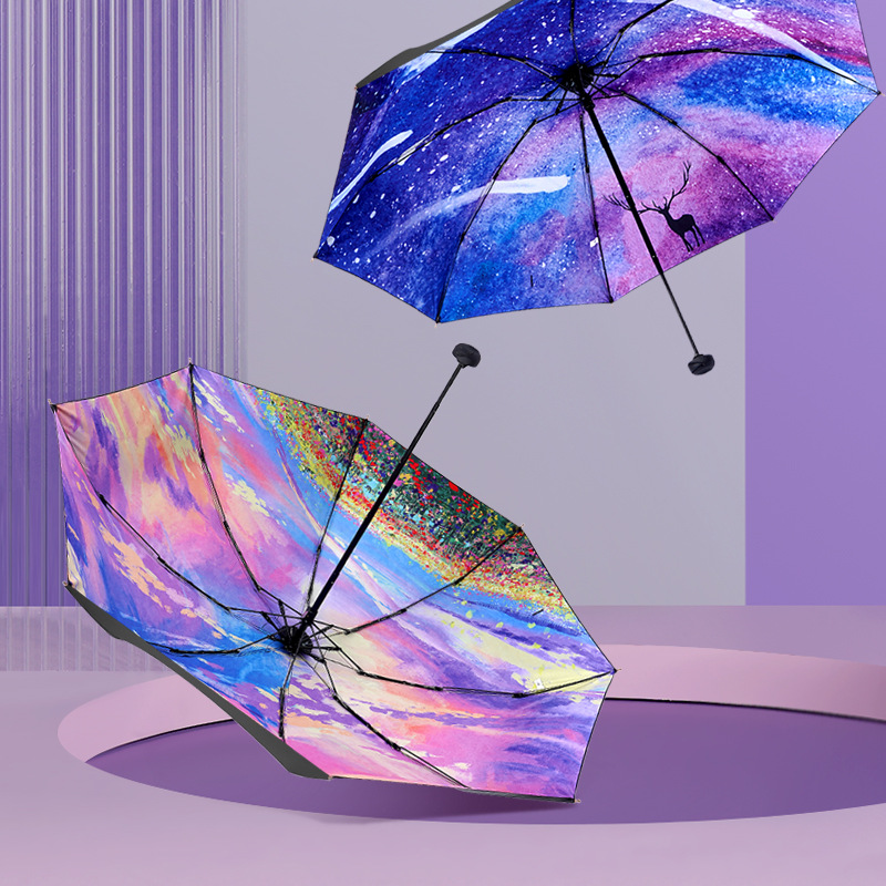 全自动星空雨伞男女防晒太阳伞防紫外线黑胶伞折叠遮阳伞晴雨两用