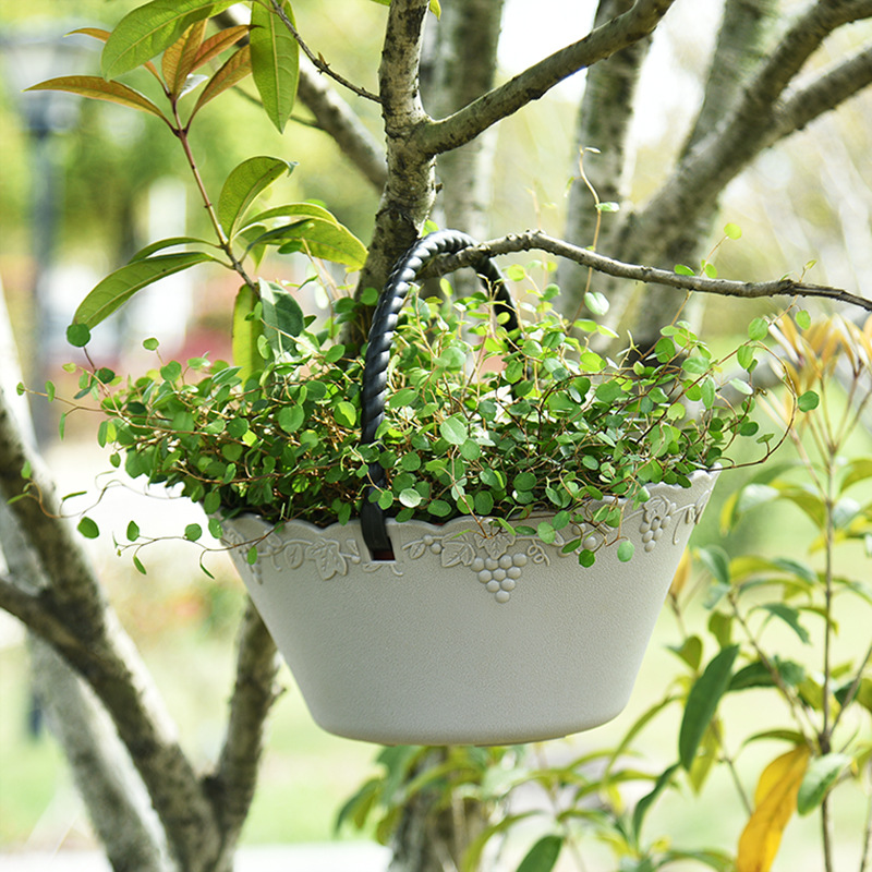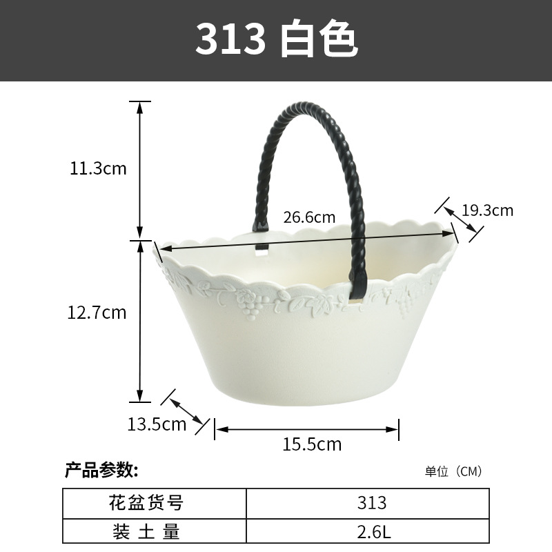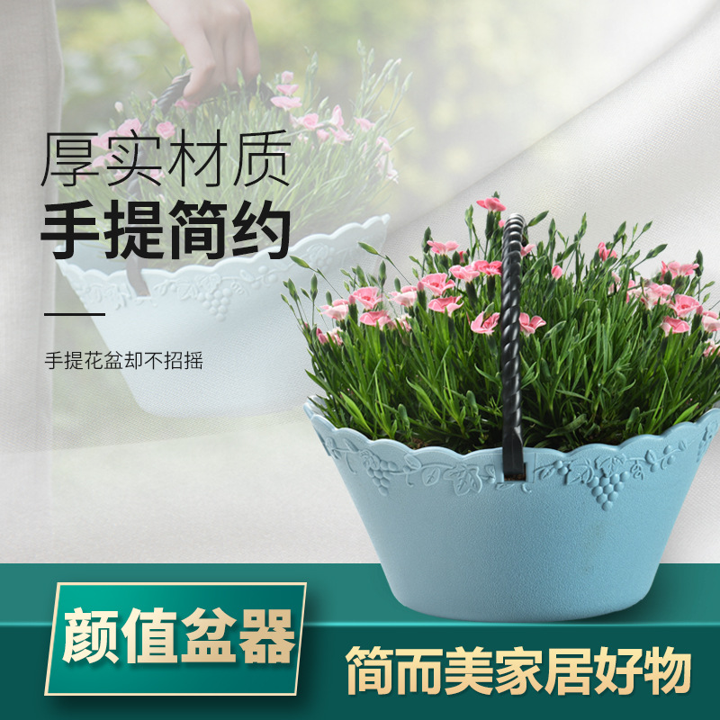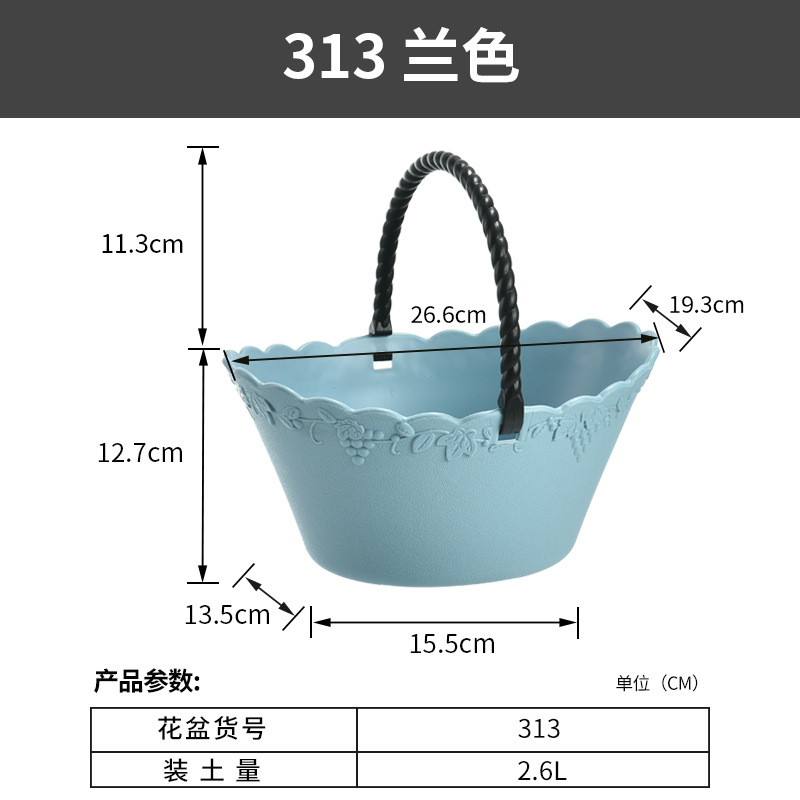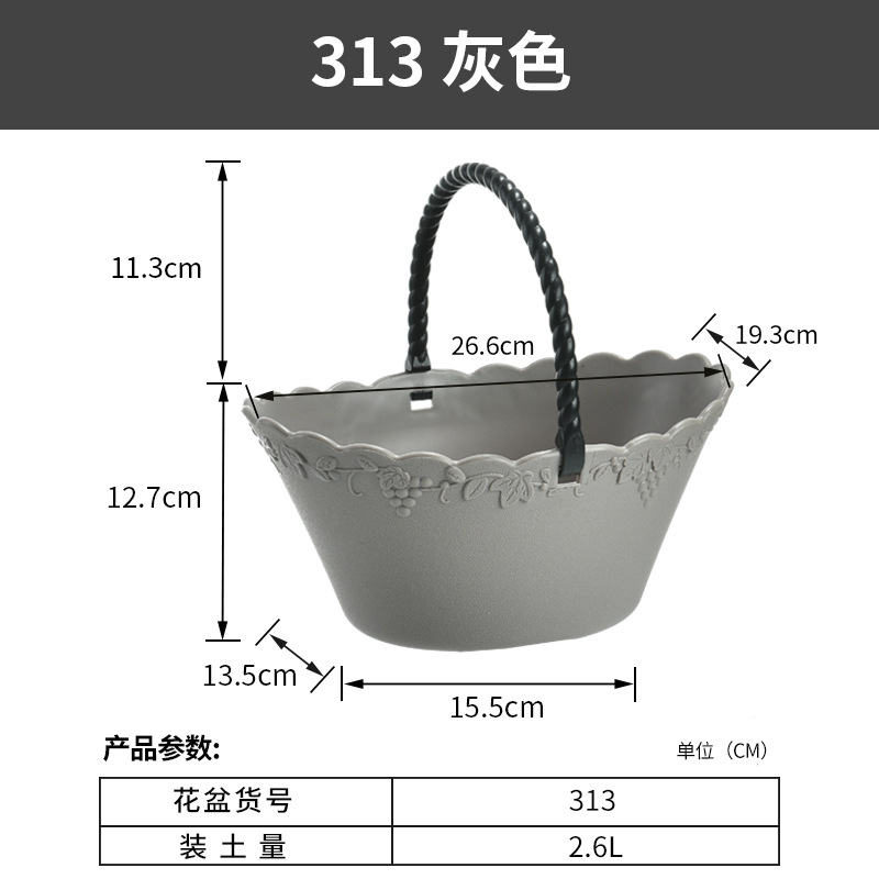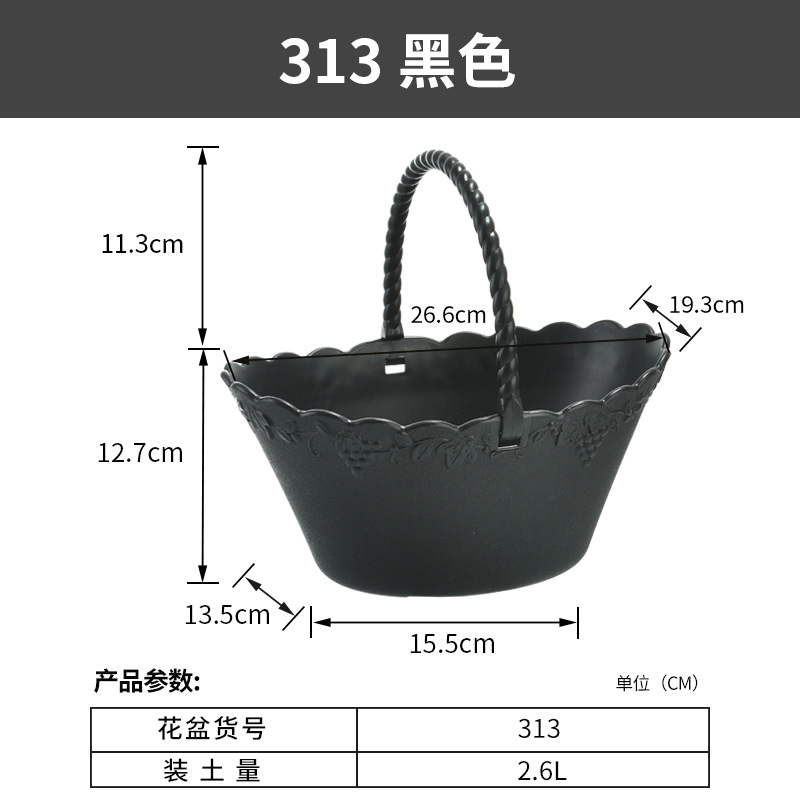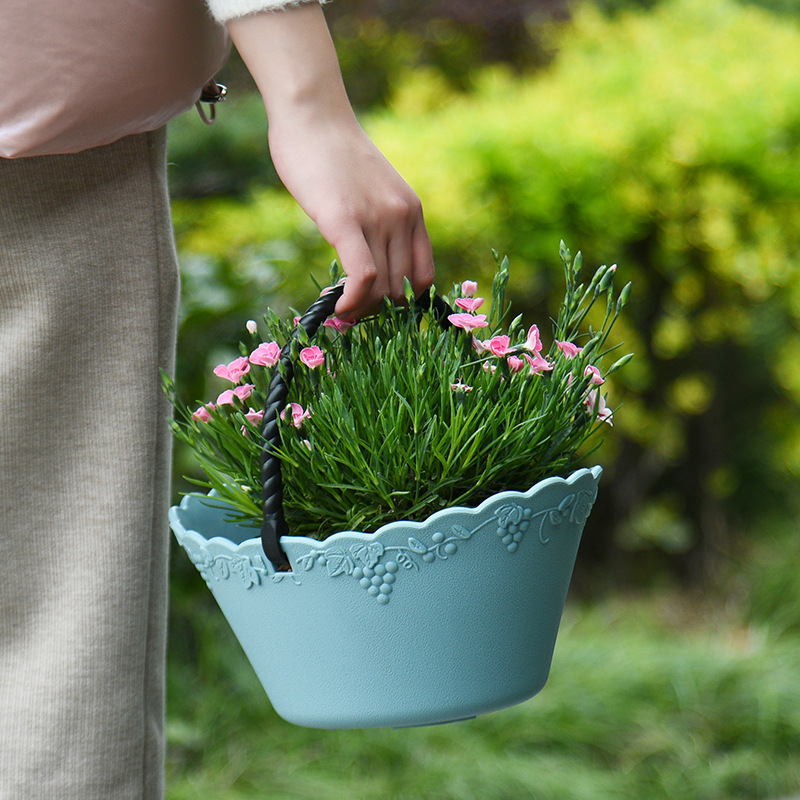 厂家直营创意简约加厚花篮水果蔬菜篮带把手提手葡萄藤纹塑料花盆