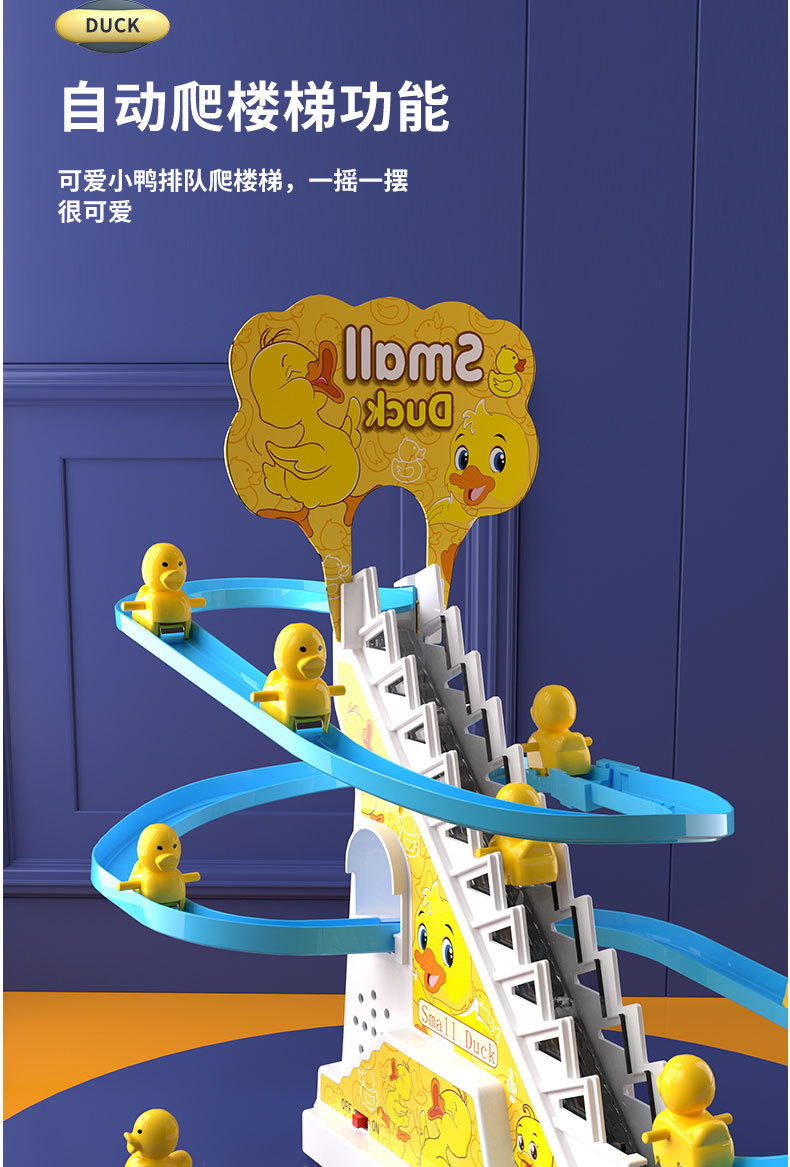 抖音热卖儿童小黄鸭自动爬楼梯轨道电动声光带音乐益智玩具批发