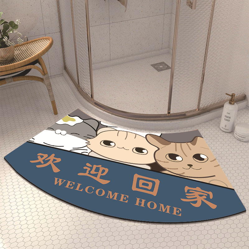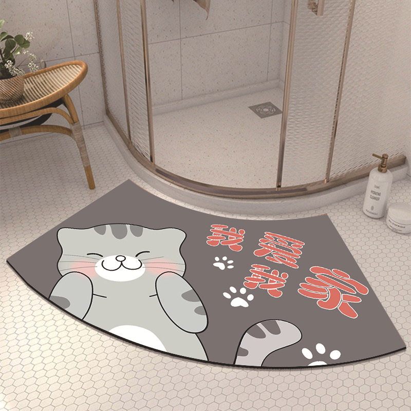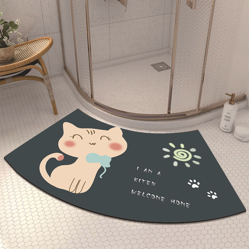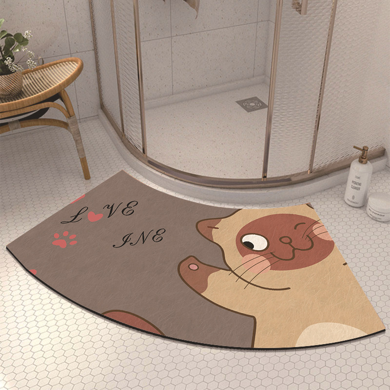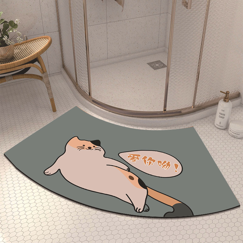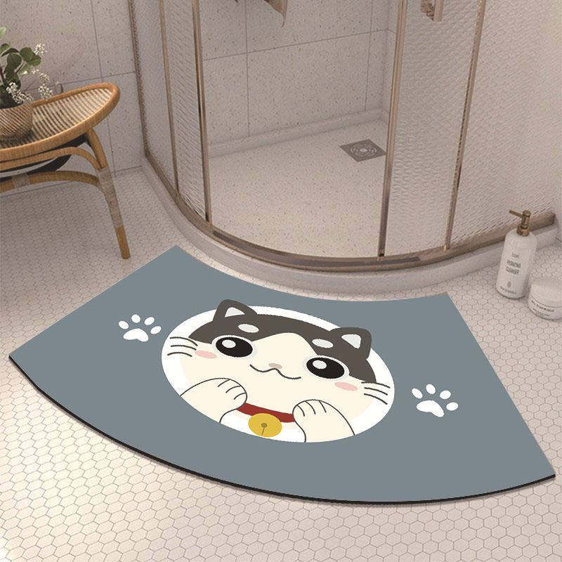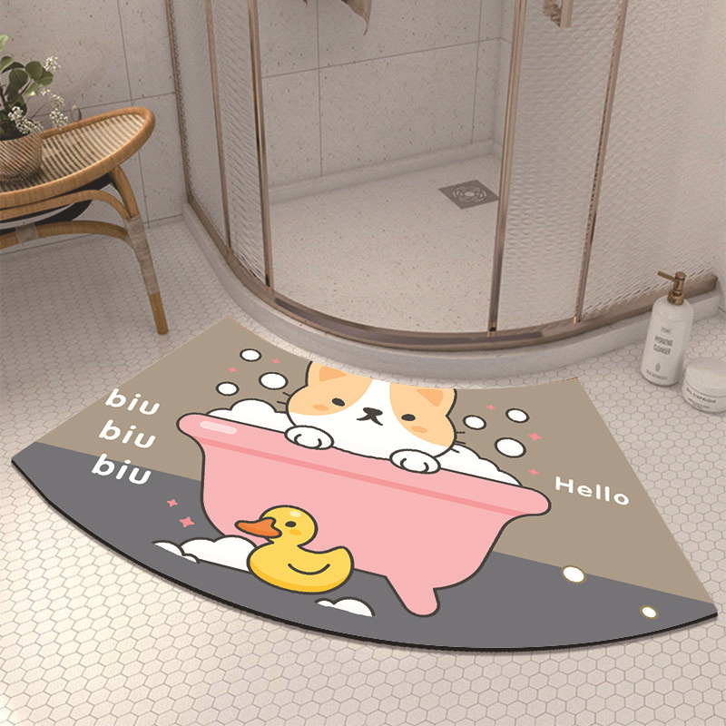 硅藻泥弧形地垫 可爱卡通动物浴室吸水速干地毯 厨房卫生间防滑垫