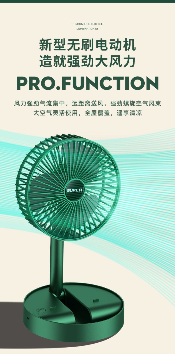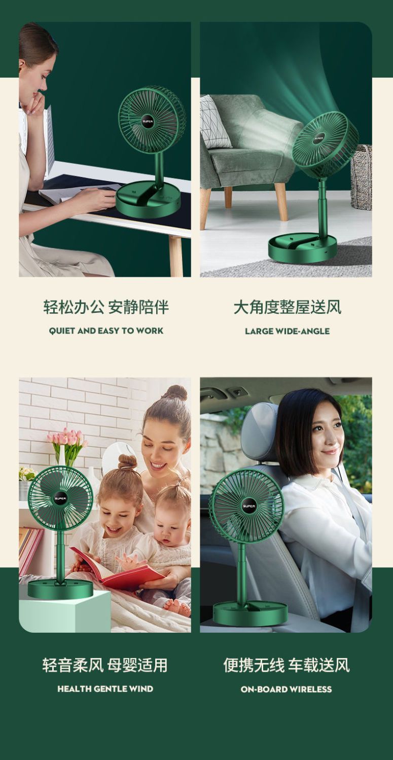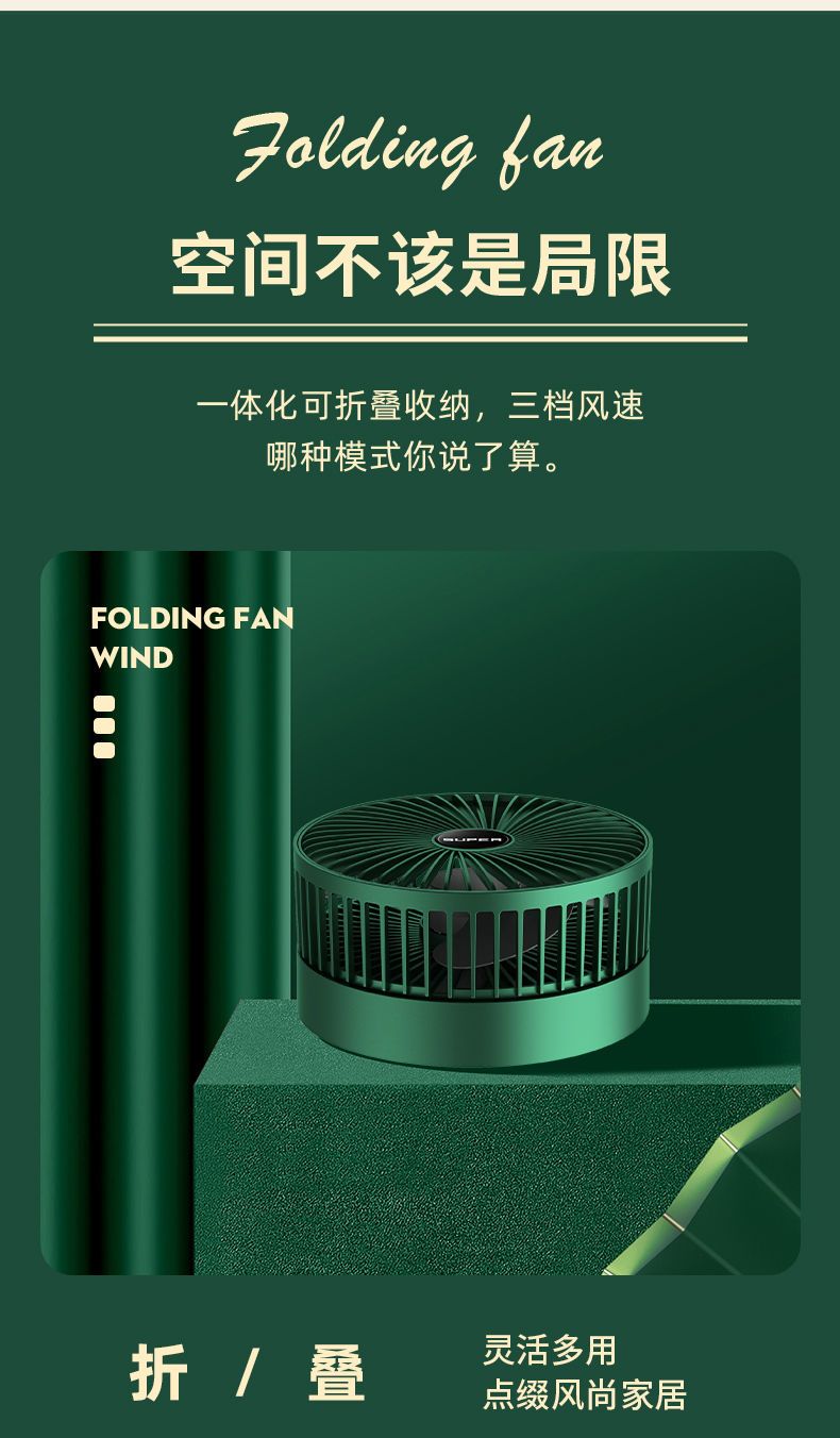 可伸缩折叠办公桌面小风扇USB充电学生宿舍家用静音便携台式风扇