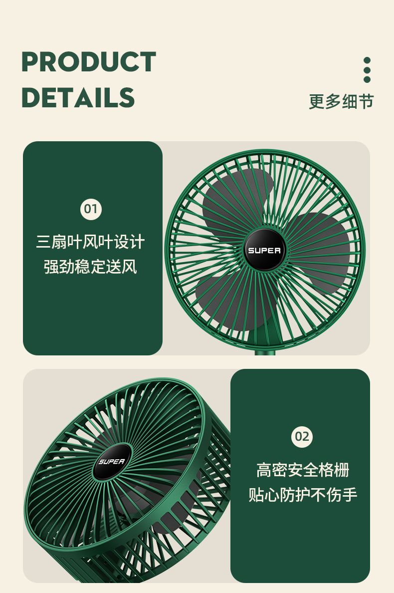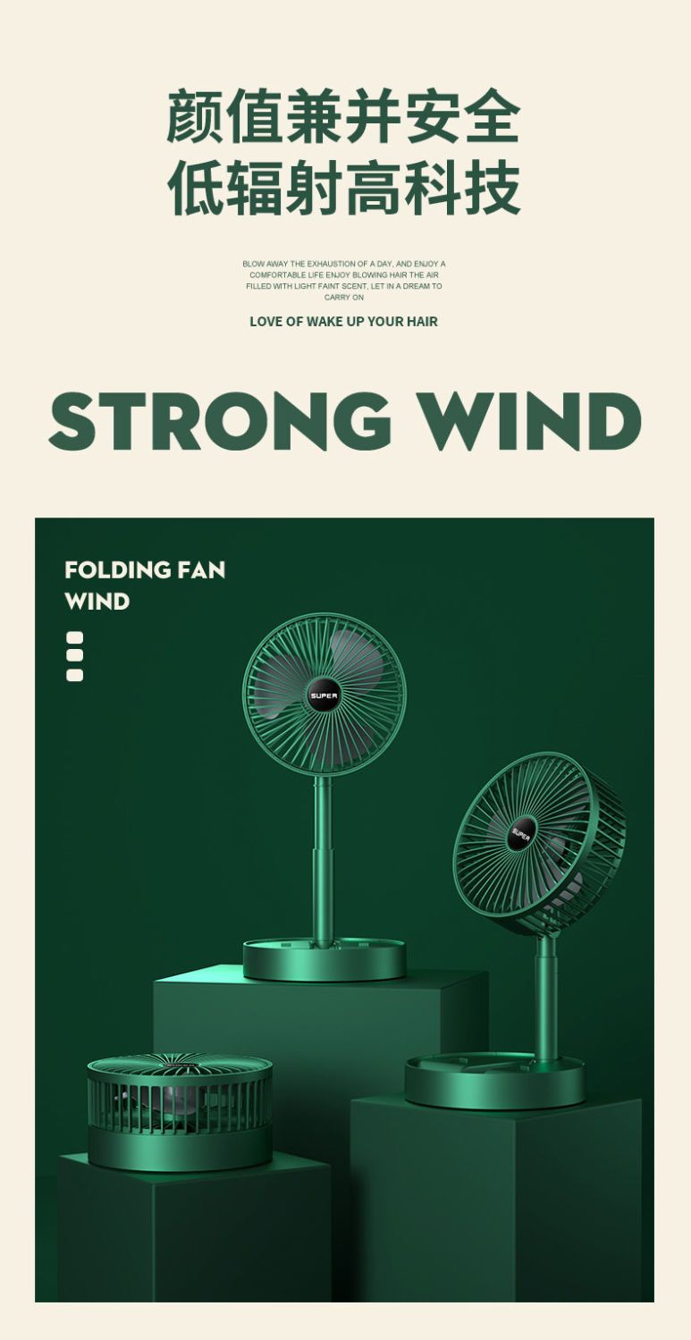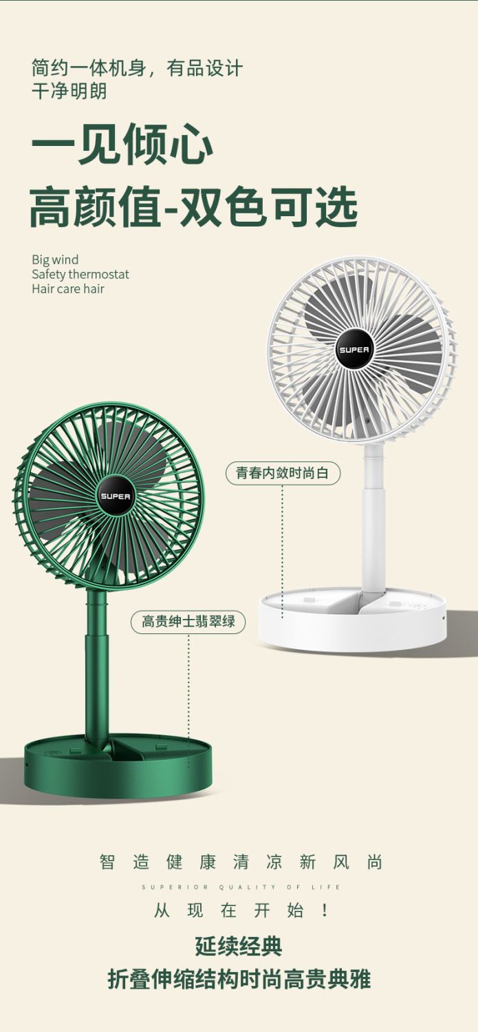 可伸缩折叠办公桌面小风扇USB充电学生宿舍家用静音便携台式风扇