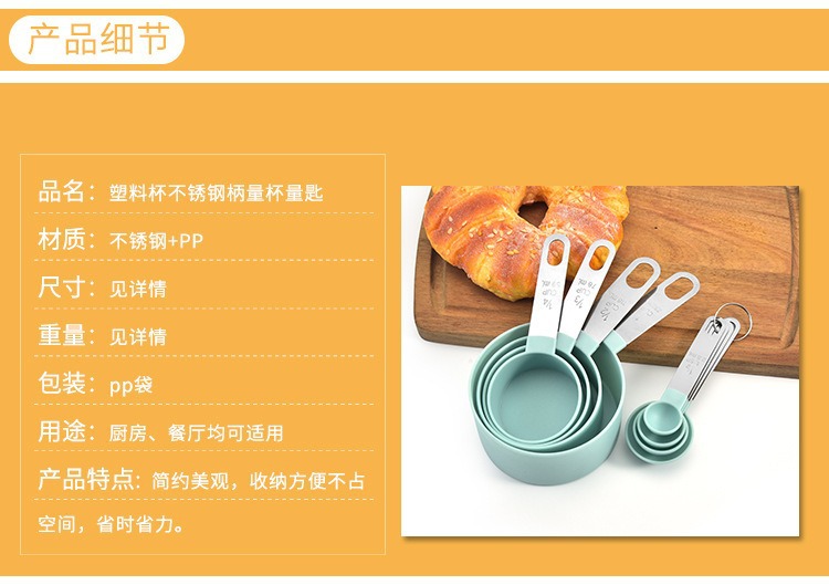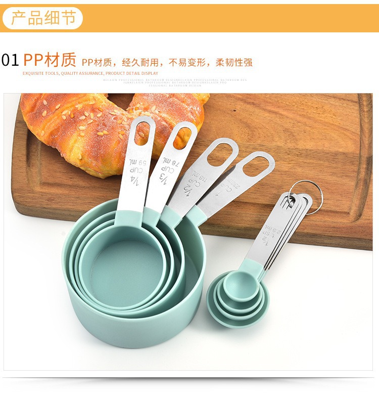 不锈钢量杯量勺套装 带刻度烘焙工具塑料不锈钢手柄量勺8件套组合