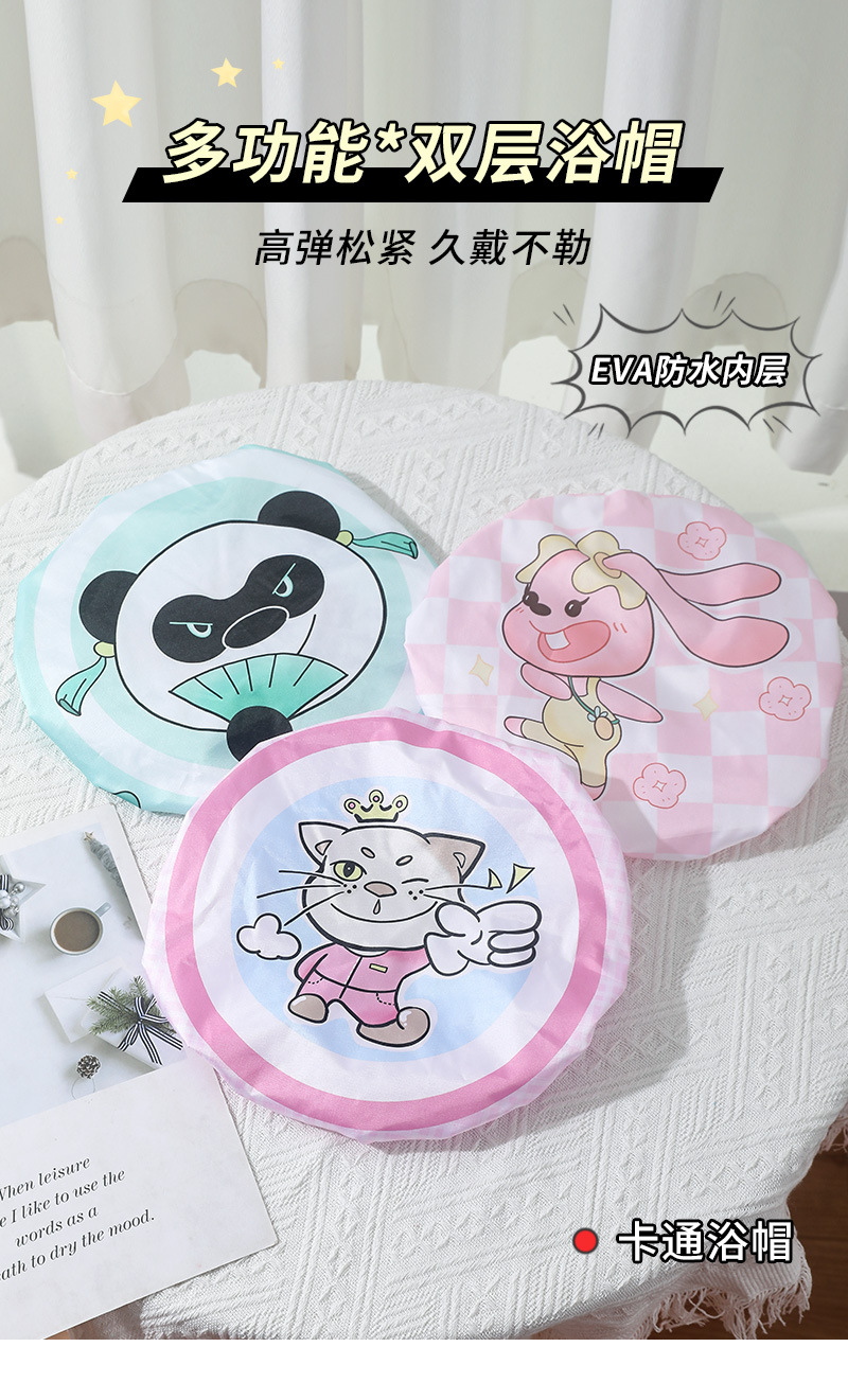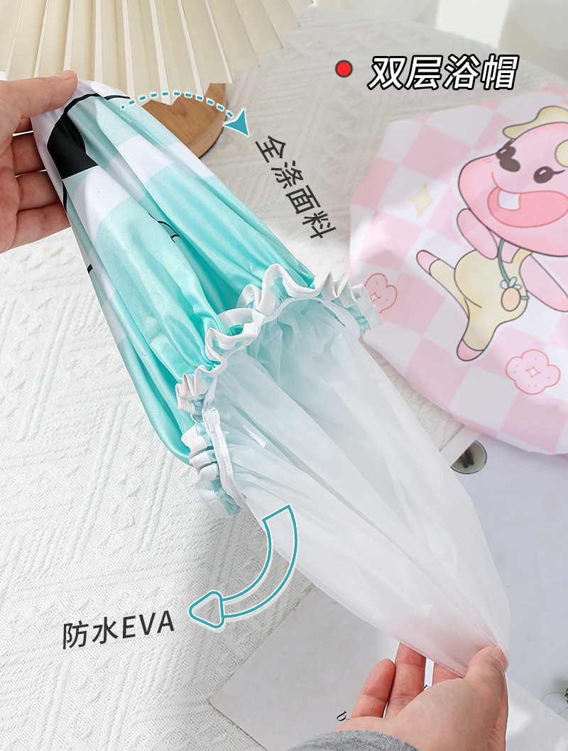 双层头套帽厨房防油烟帽子女士款发套卡通加厚浴帽防水沐浴帽淋浴