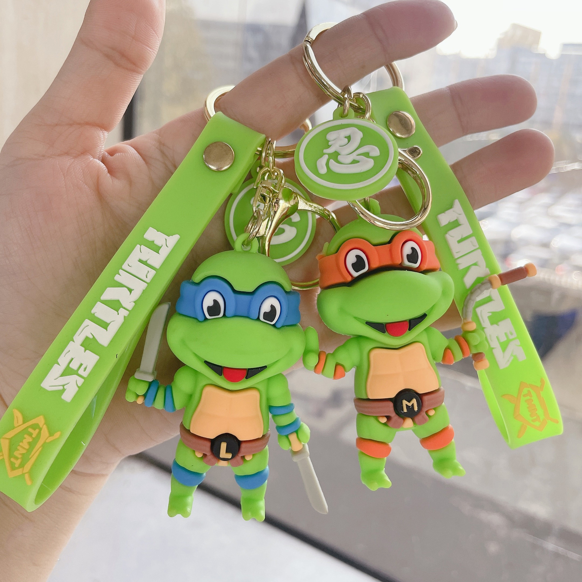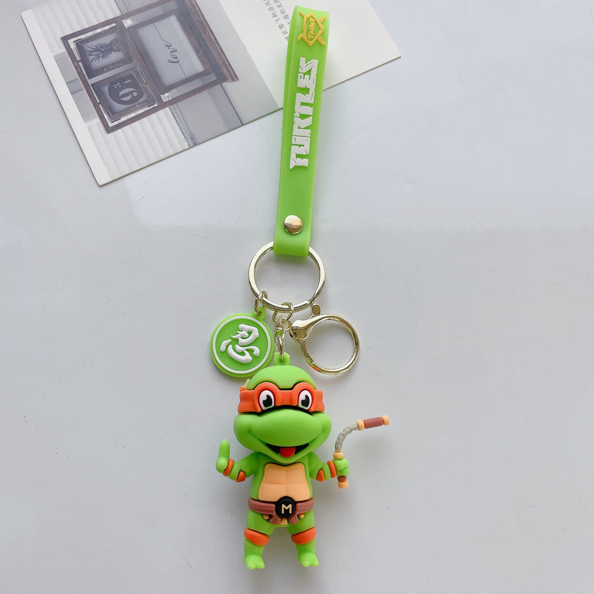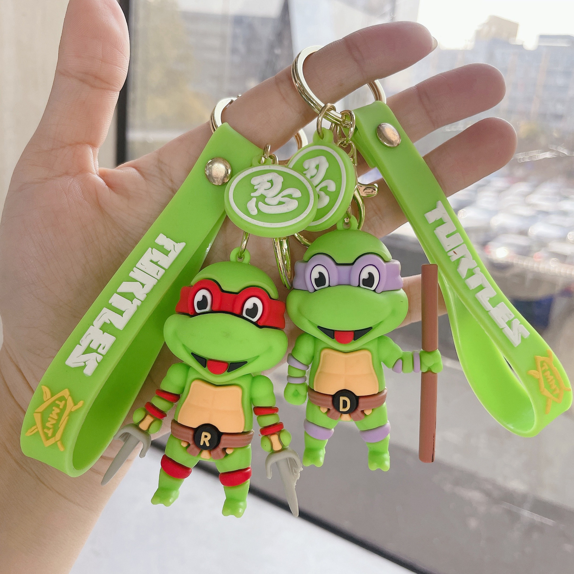 新款跨境爆款忍者神龟系列滴胶公仔钥匙扣汽车包包钥匙挂件批发