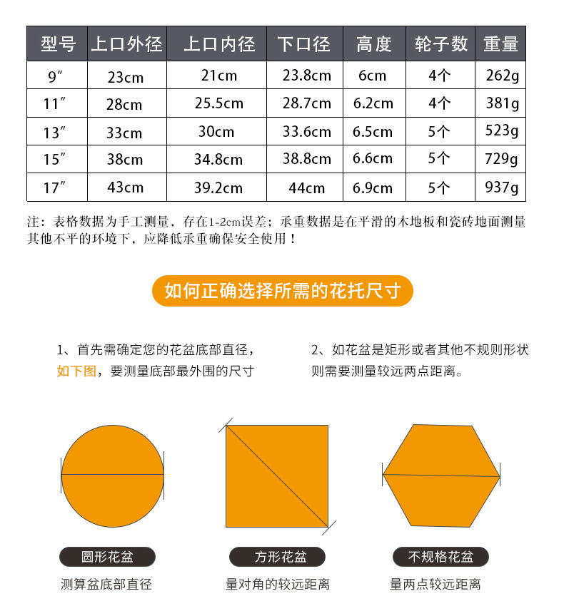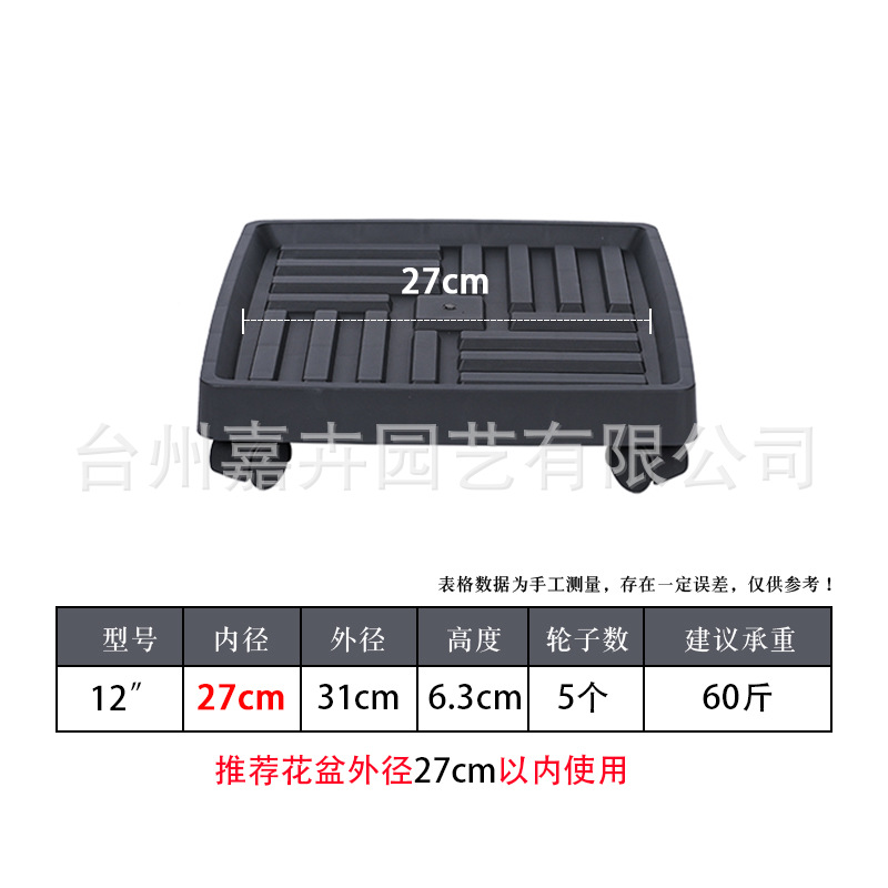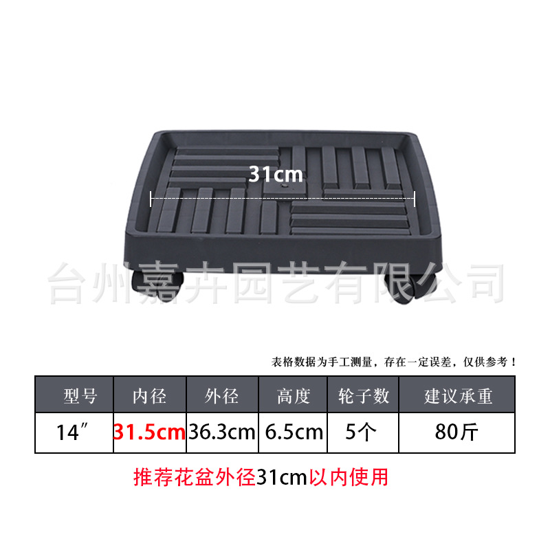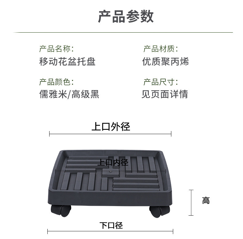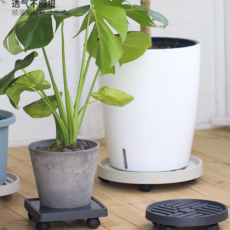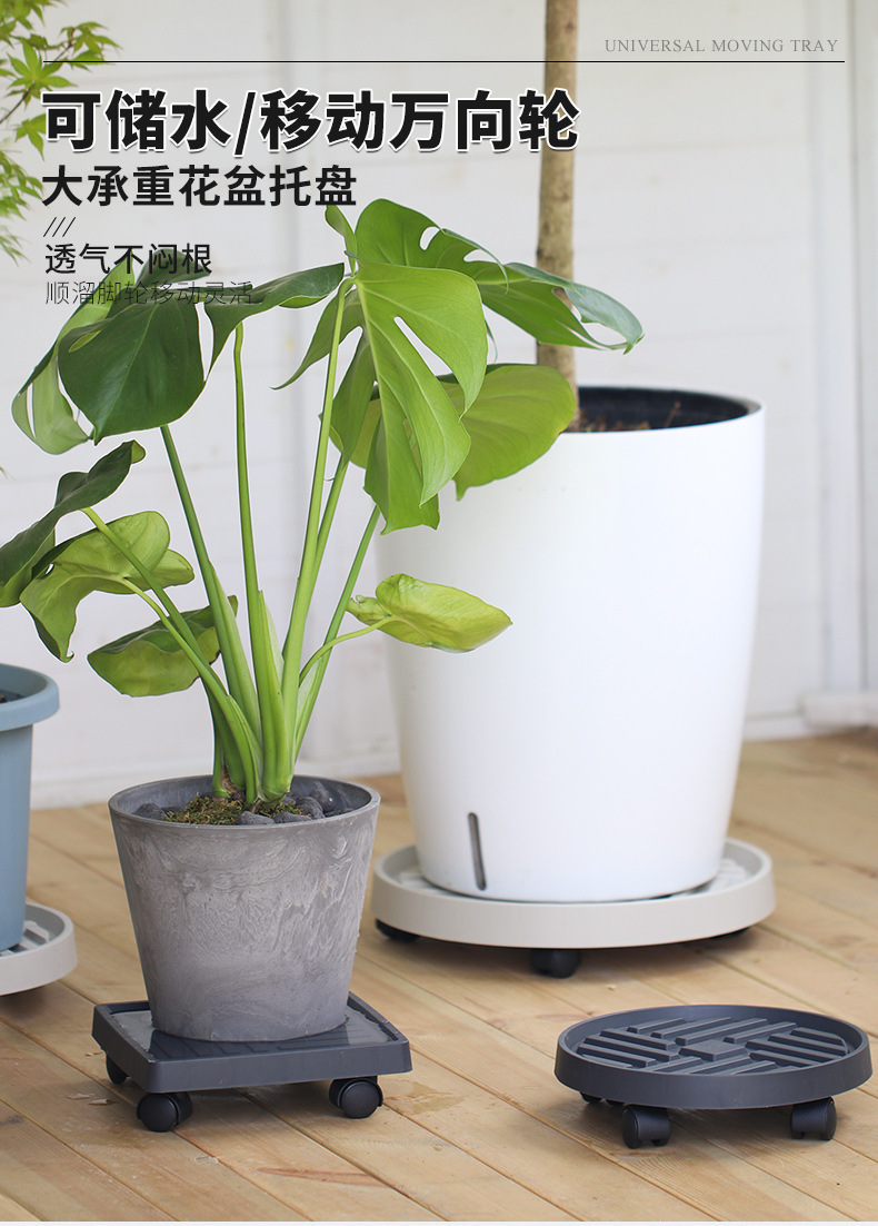 圆形方形移动花盆托盘 沥水透气底托 万向轮底座树脂花托接水