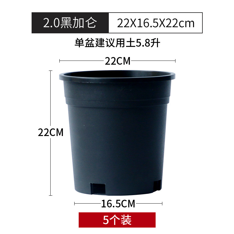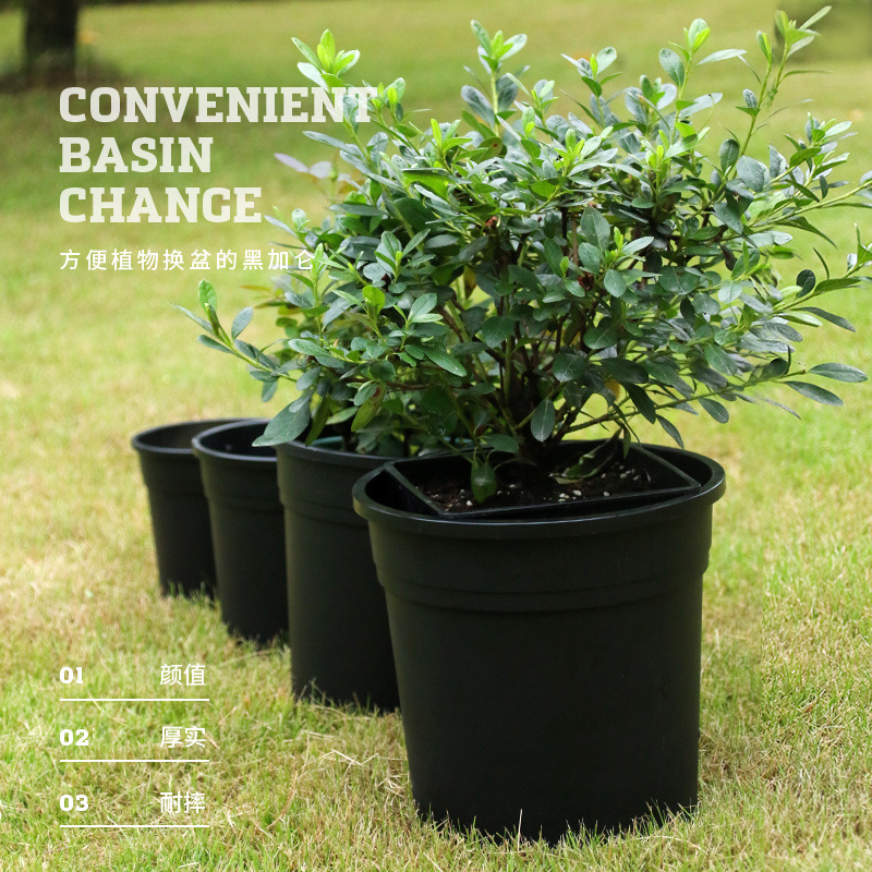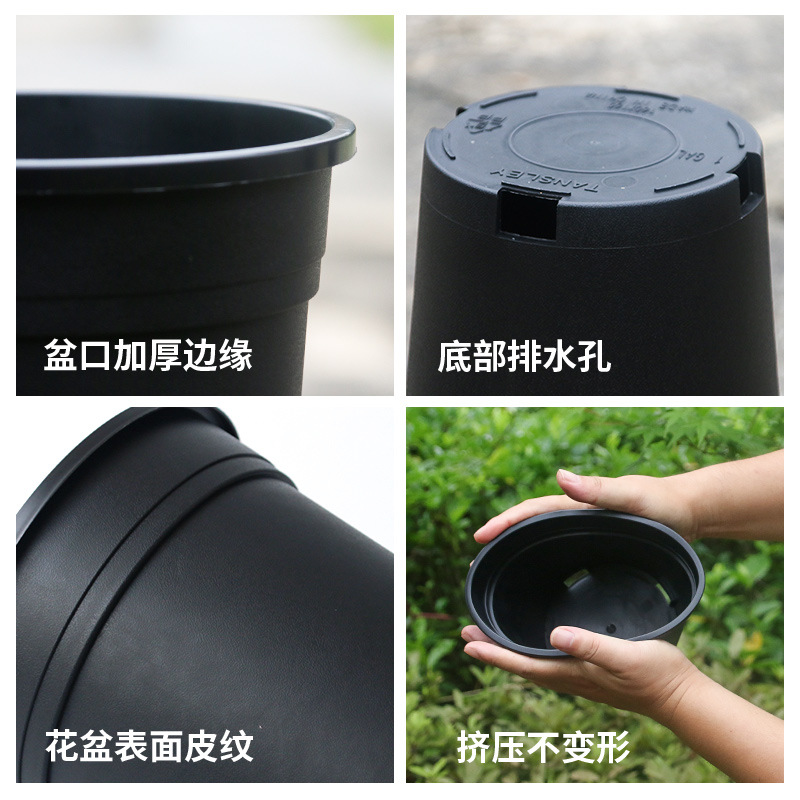 黑色加仑盆塑料花盆绿植盆栽绿萝月季平底侧开孔基地用盆