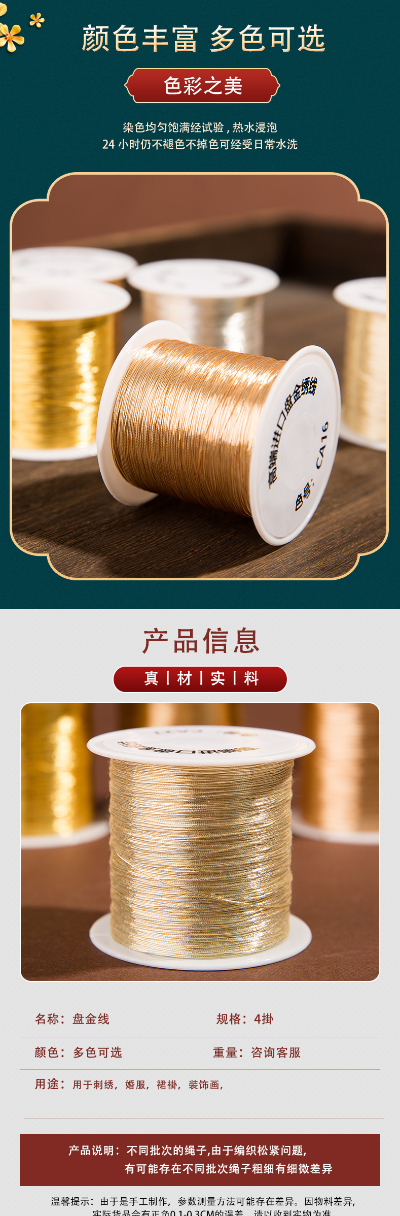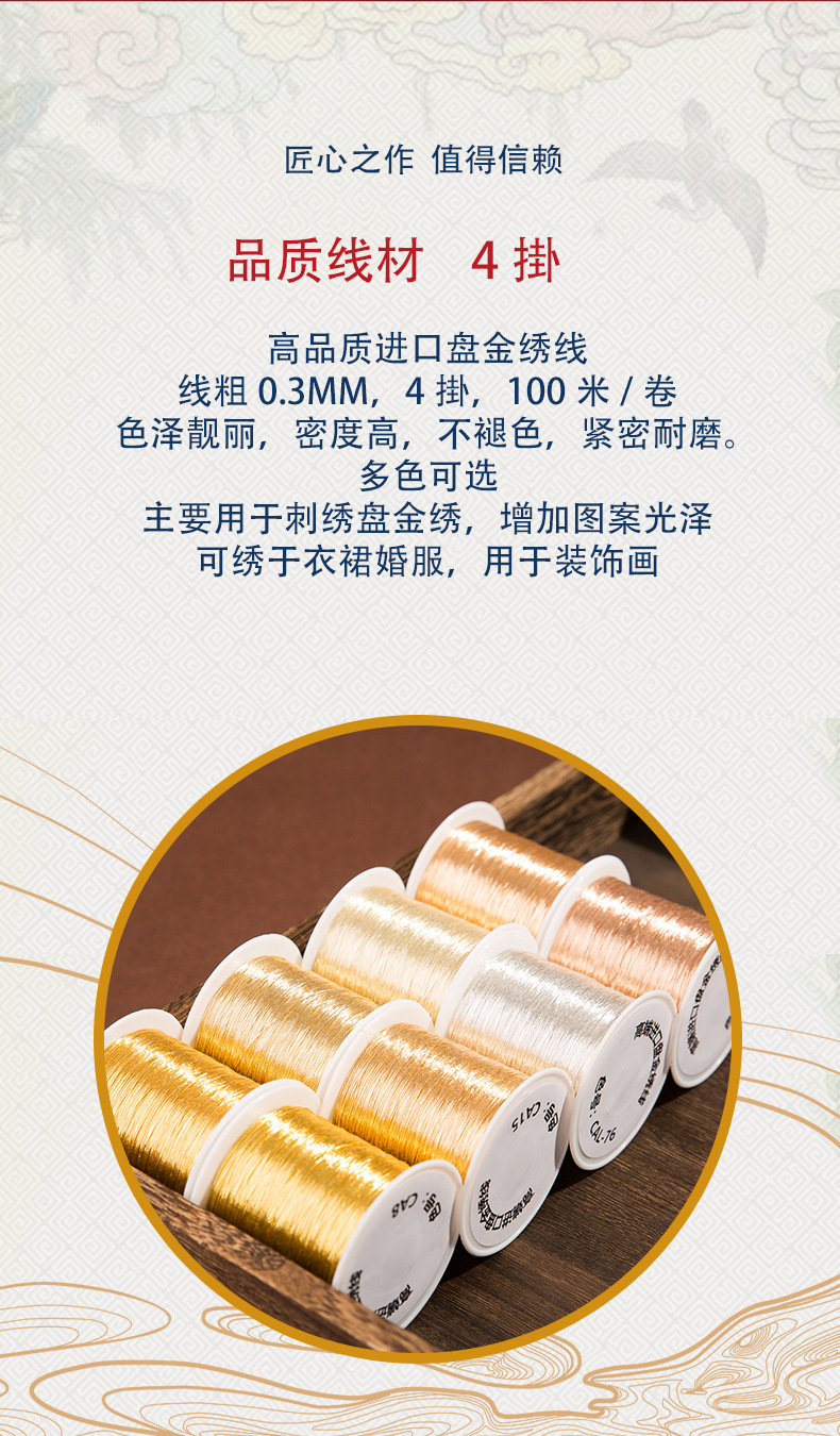 JR高端进口盘金绣线DIY手工饰品婚服装饰画盘金绣苏绣专用