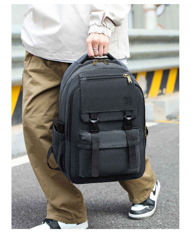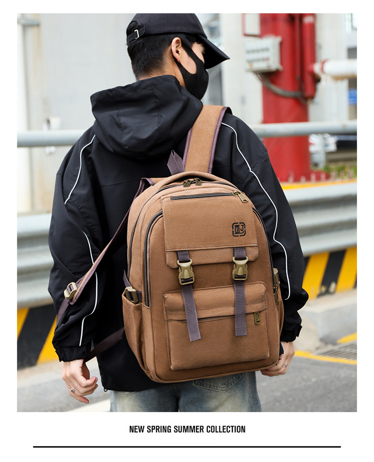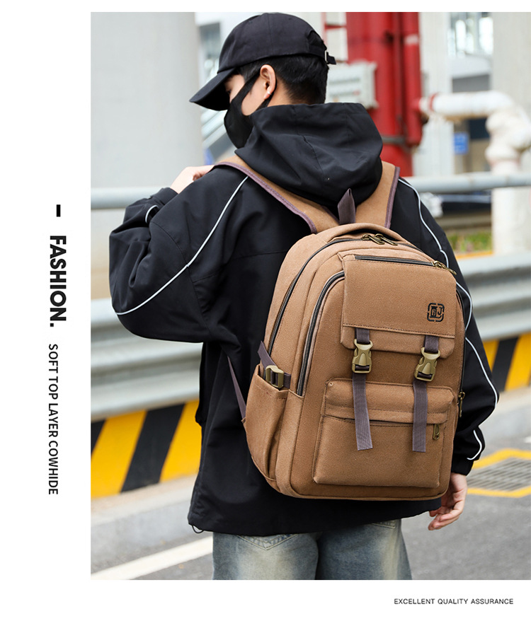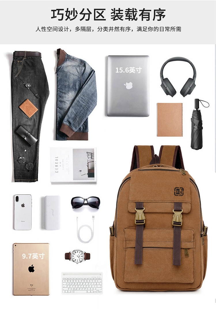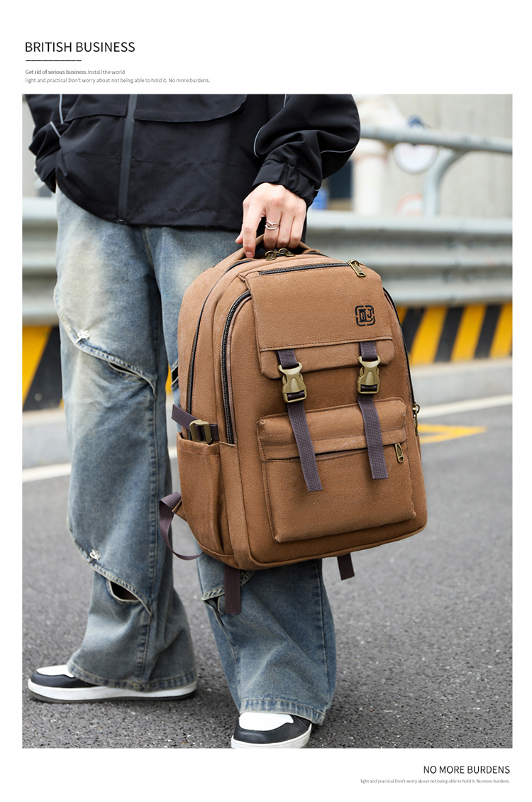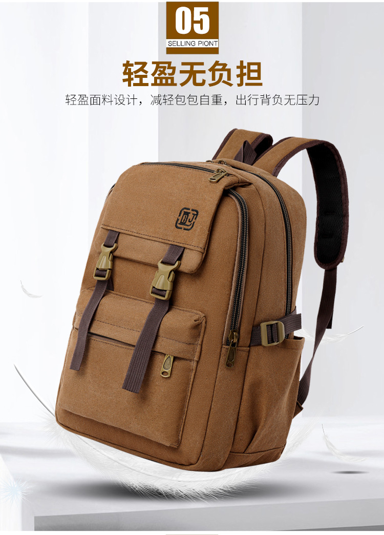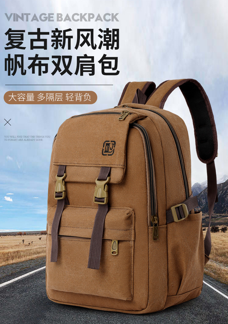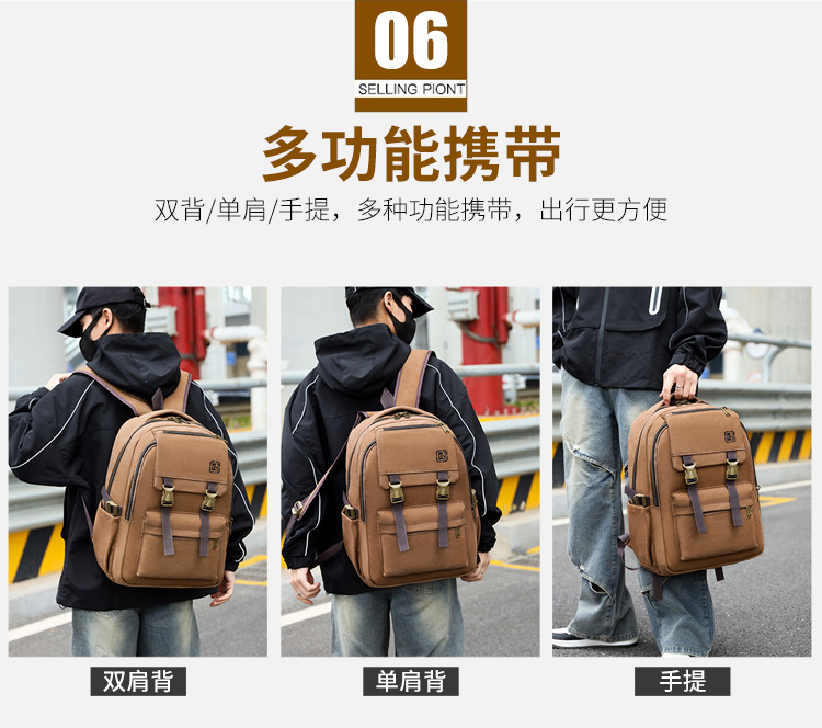 帆布双肩包复古潮流休闲书包多隔层户外旅行背包