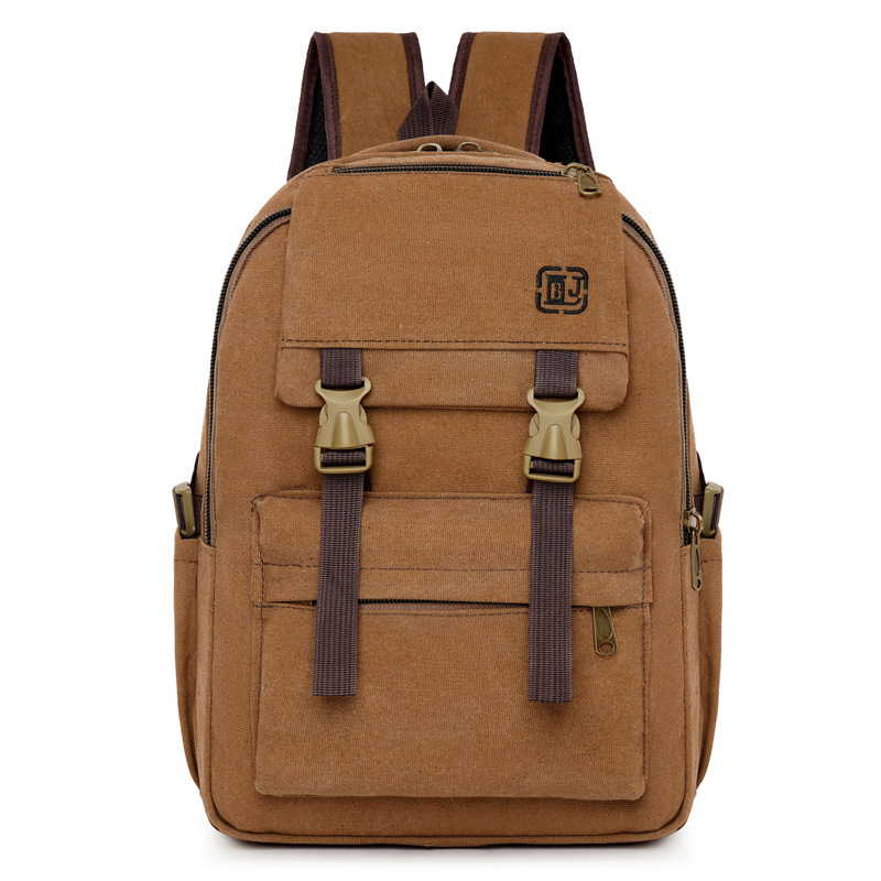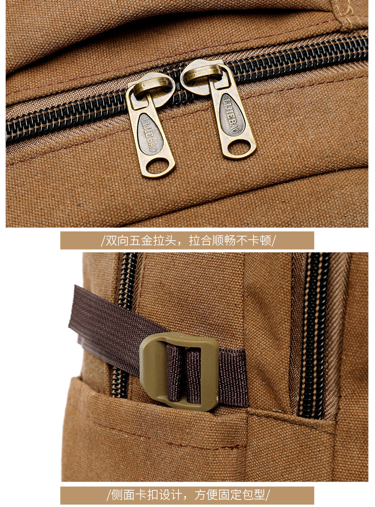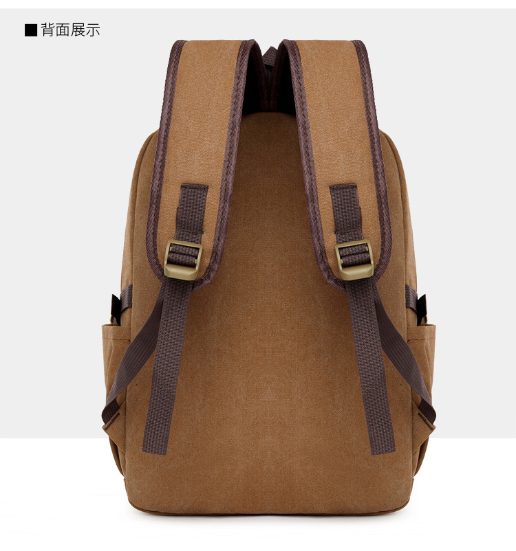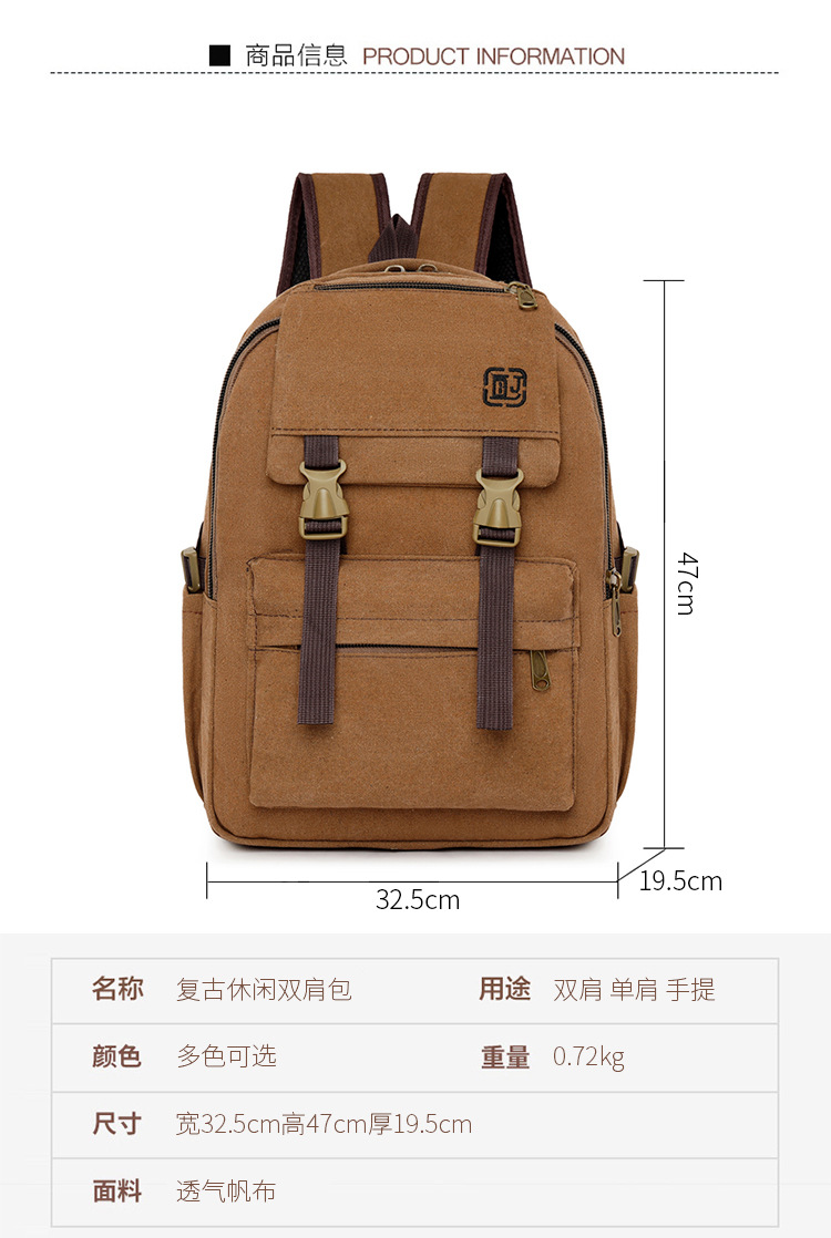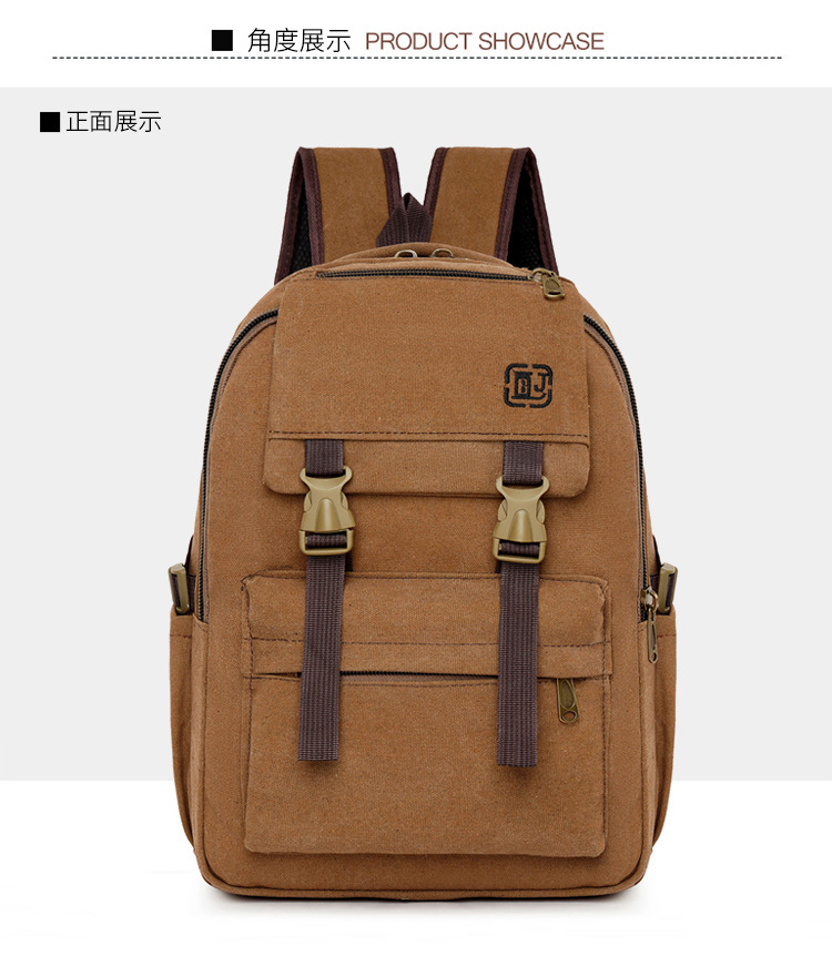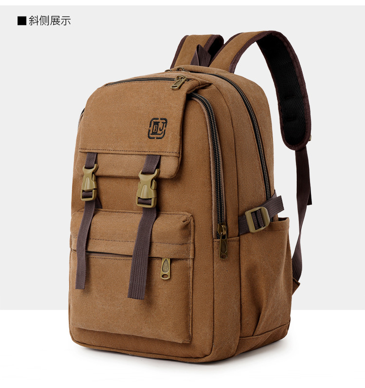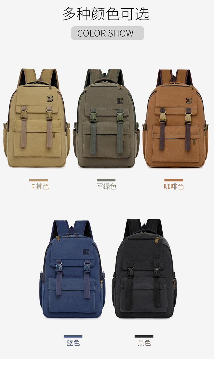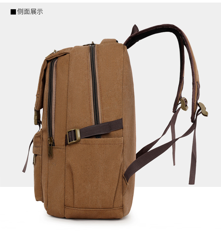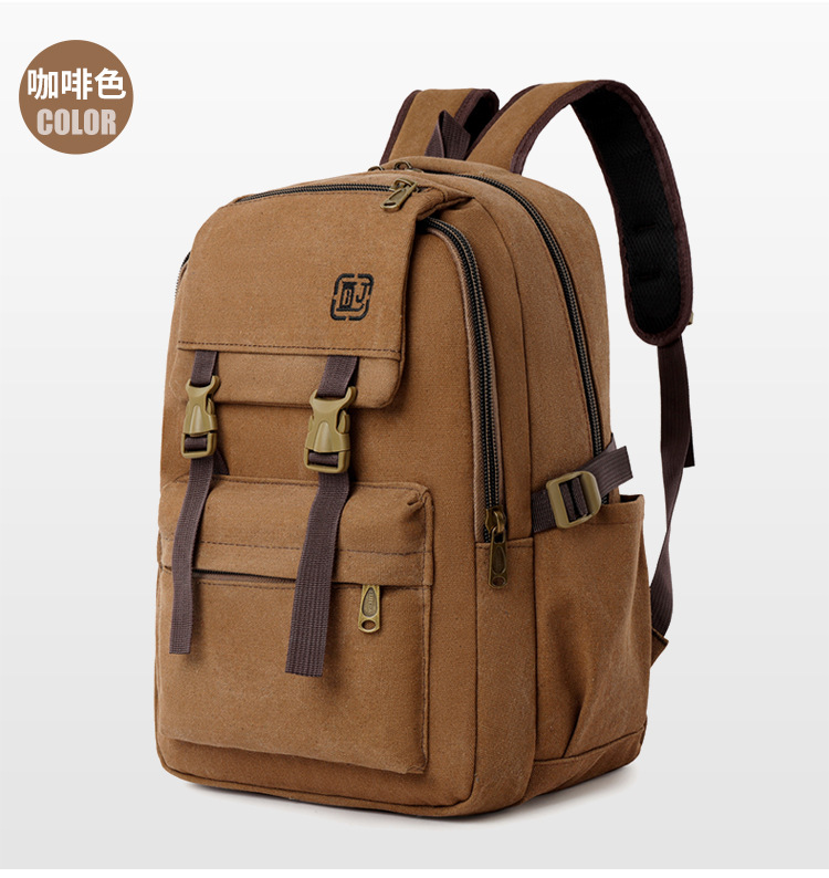 帆布双肩包复古潮流休闲书包多隔层户外旅行背包