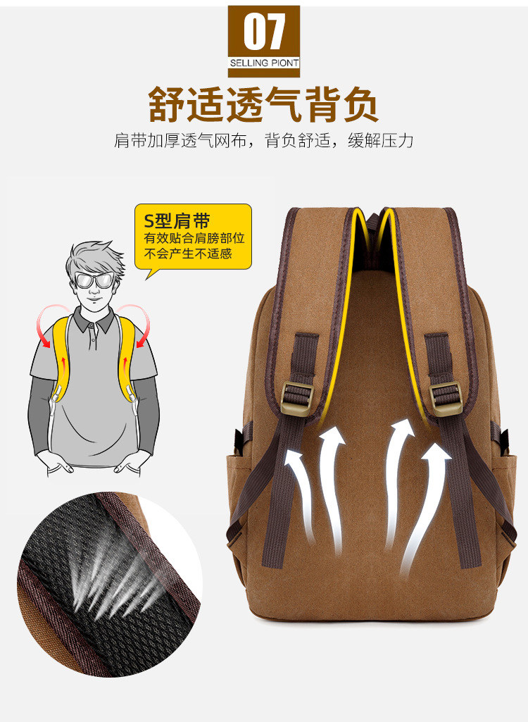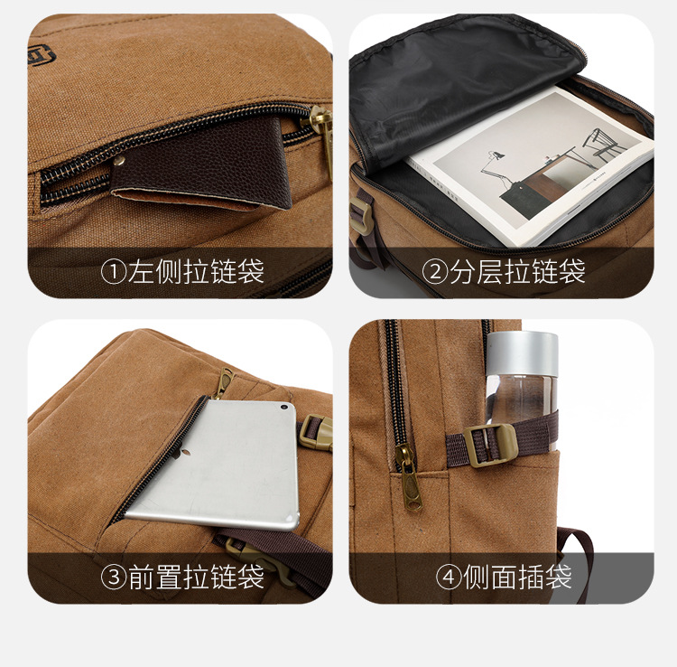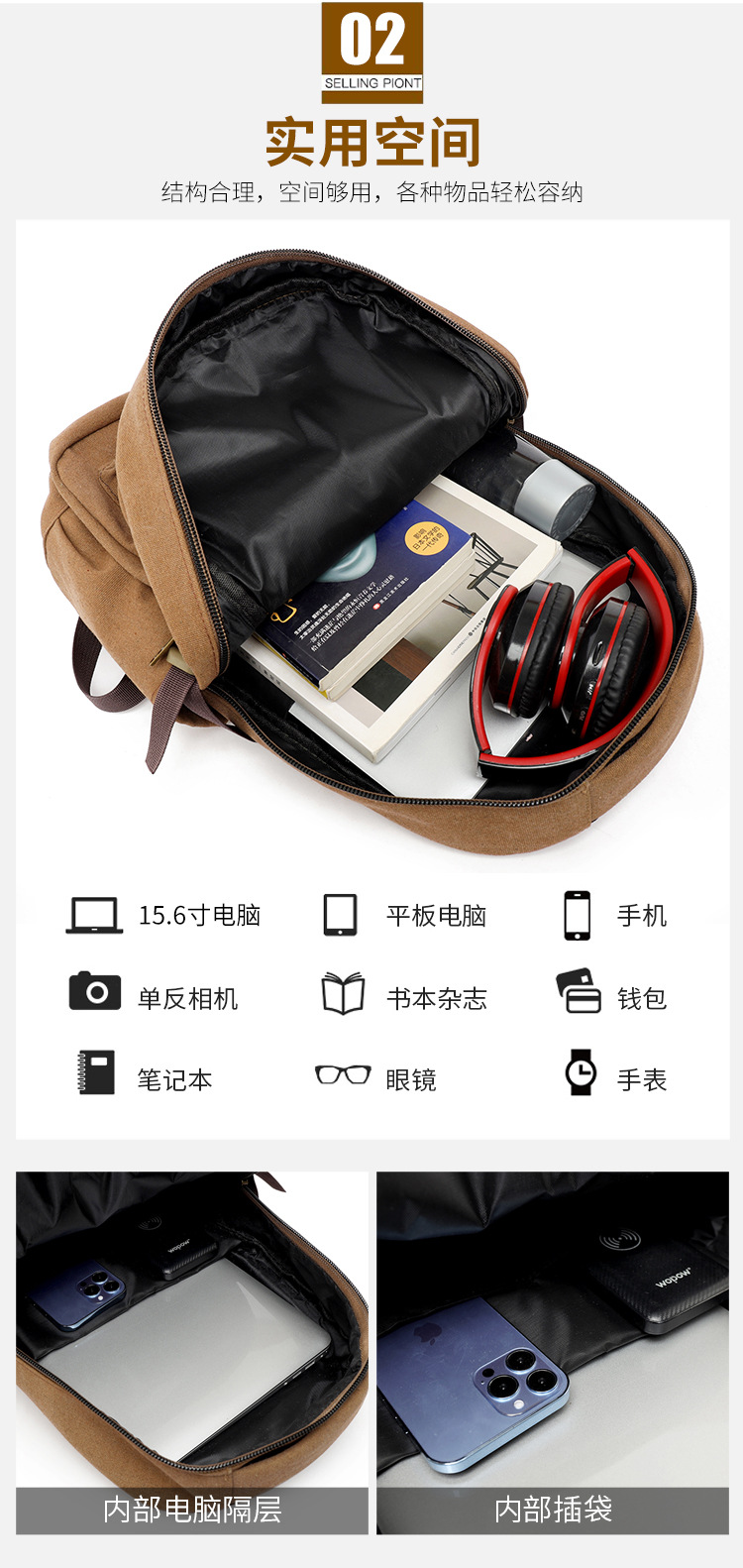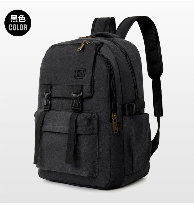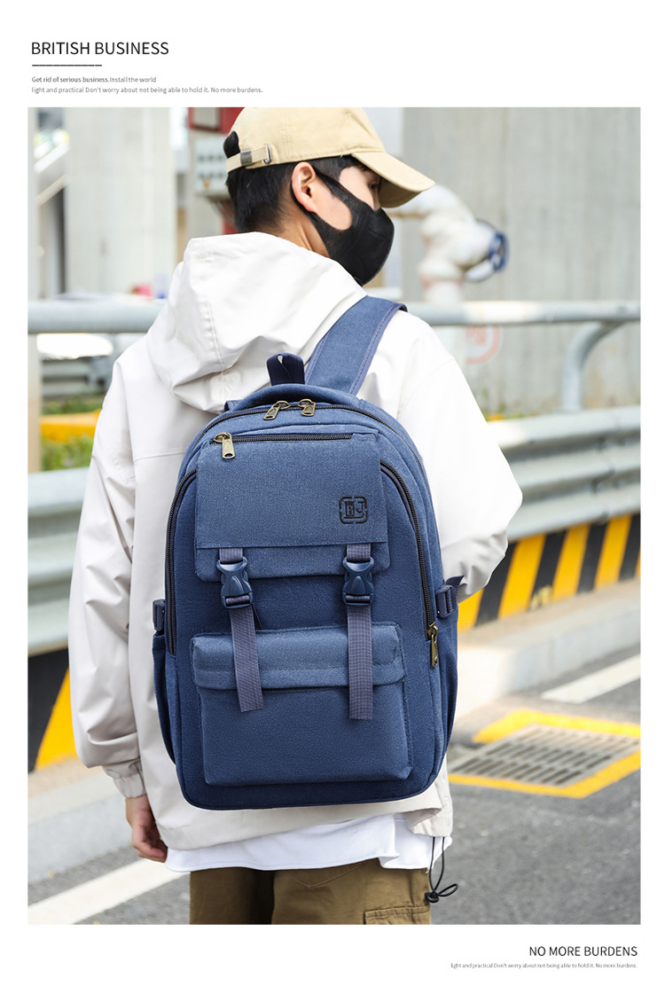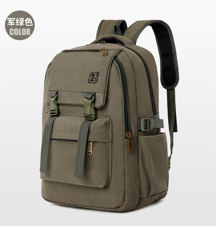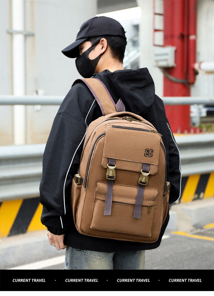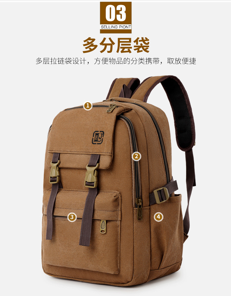 帆布双肩包复古潮流休闲书包多隔层户外旅行背包