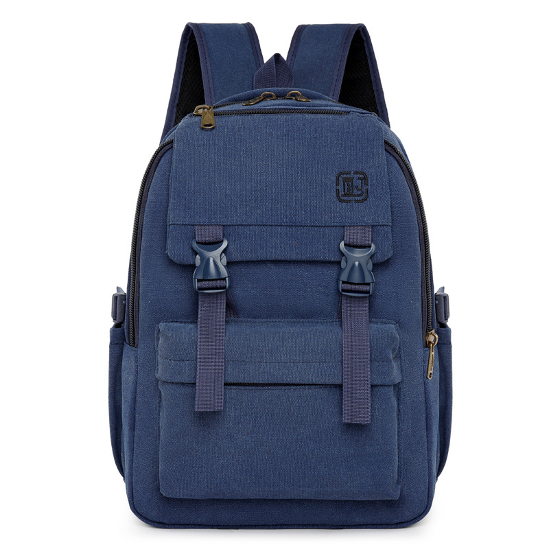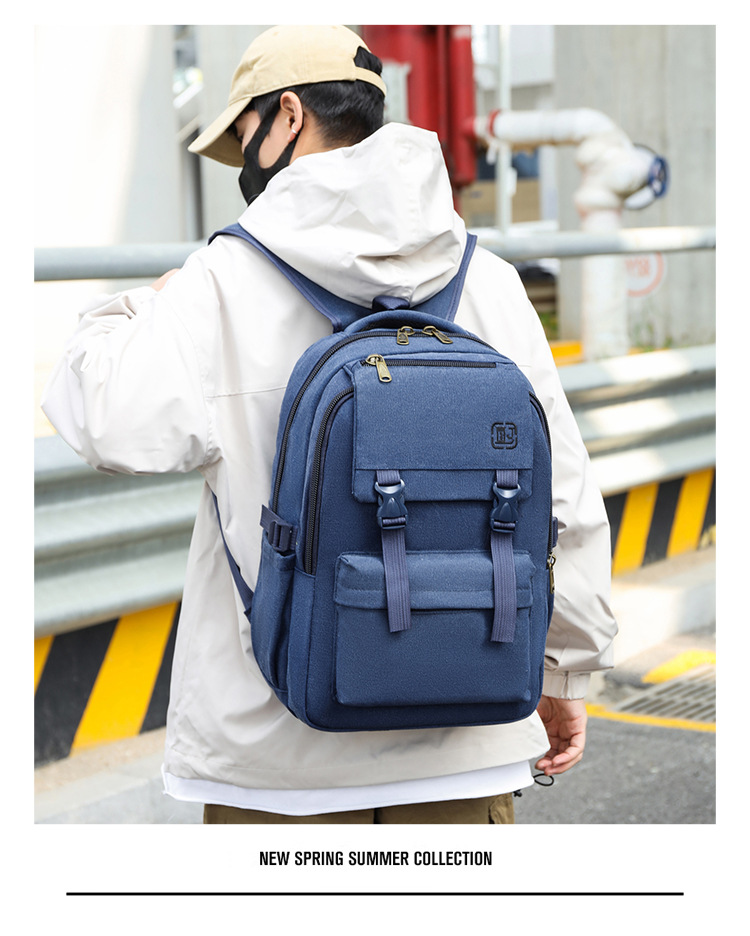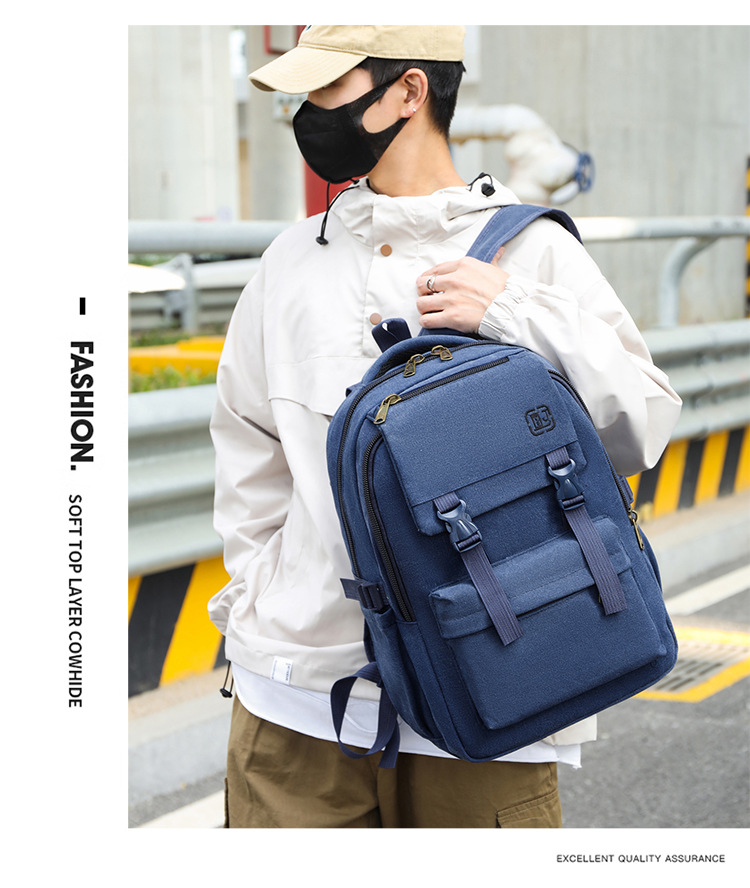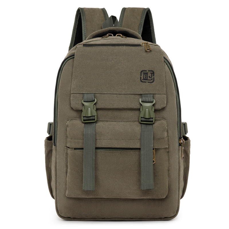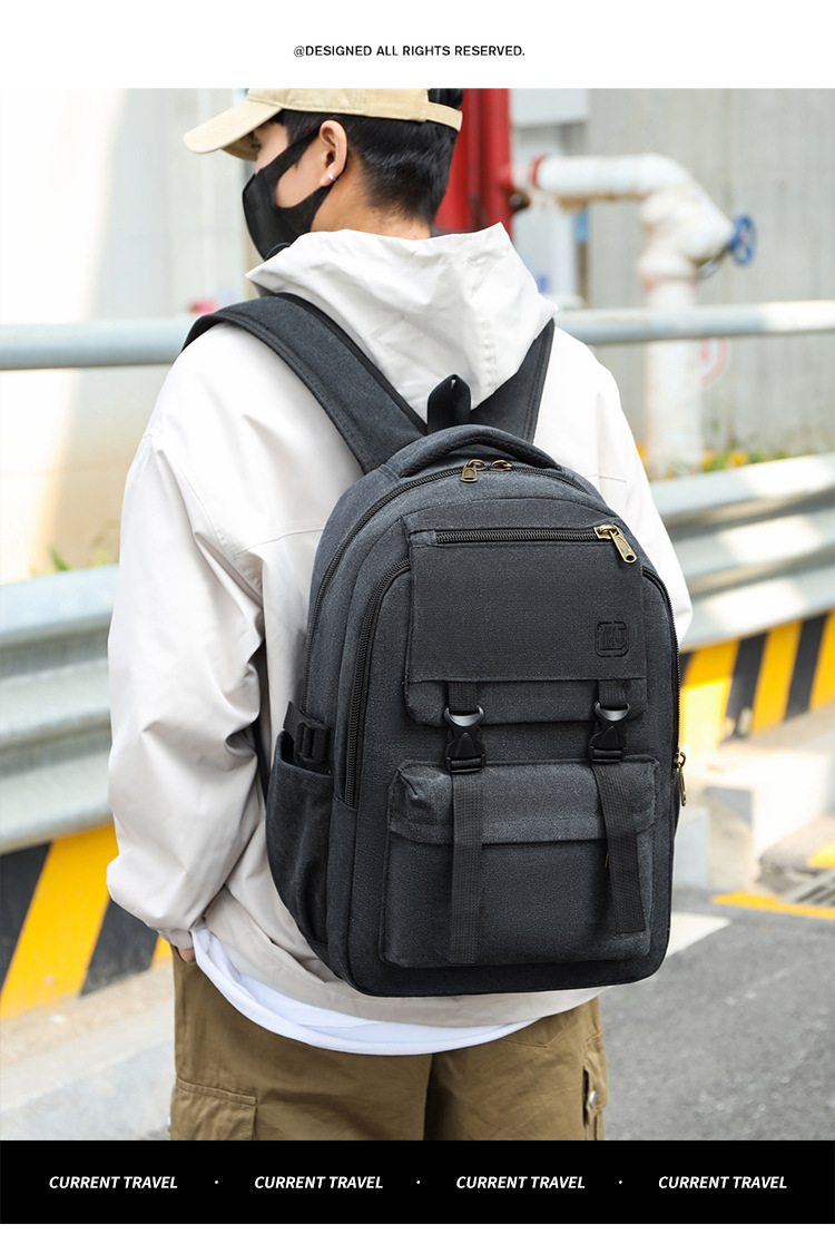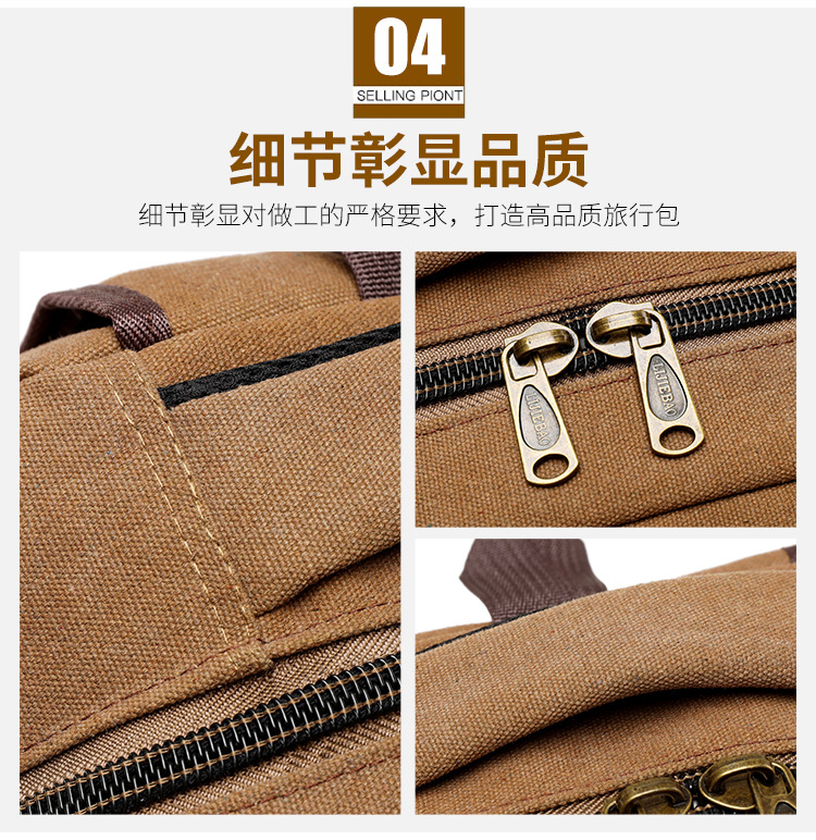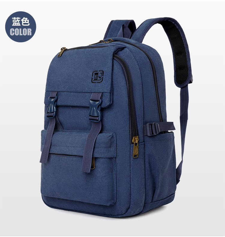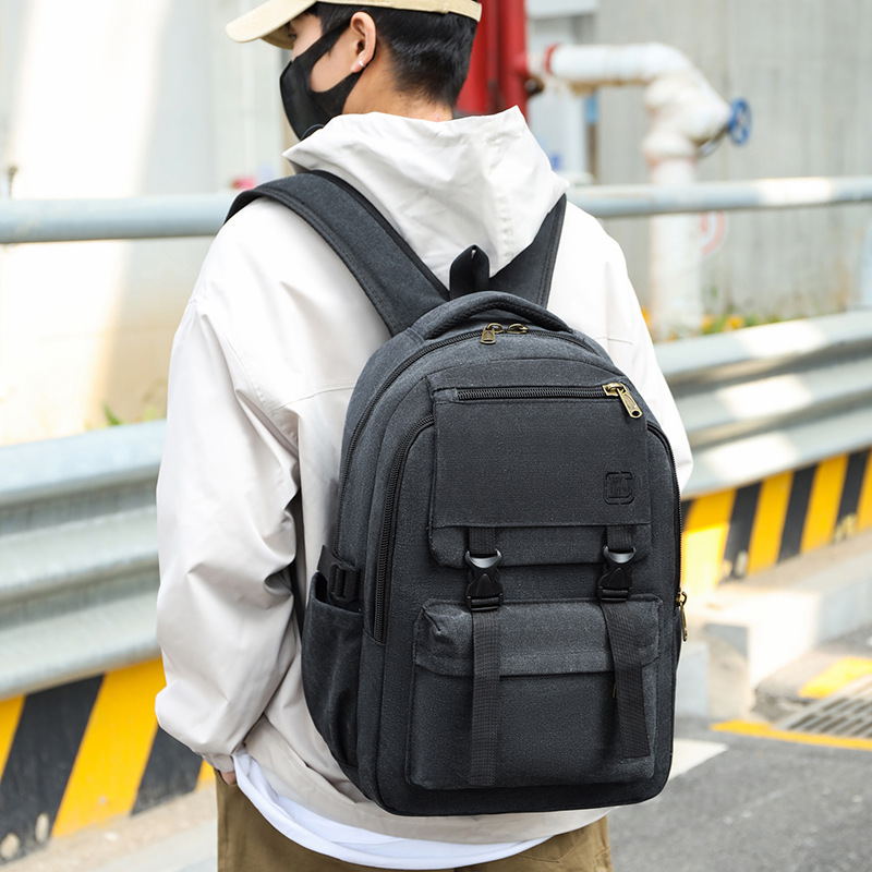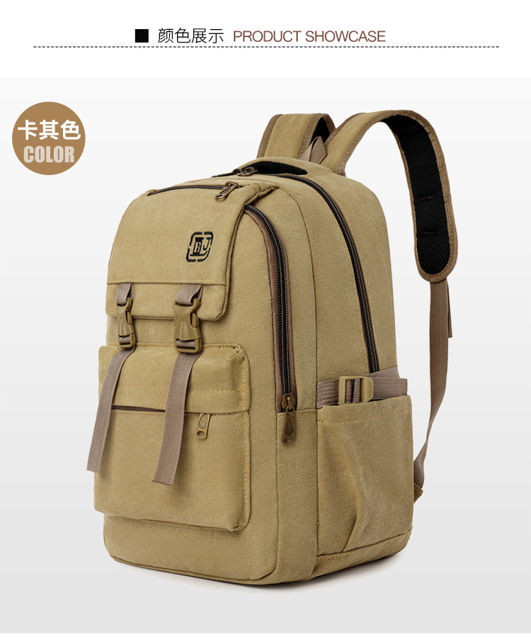 帆布双肩包复古潮流休闲书包多隔层户外旅行背包