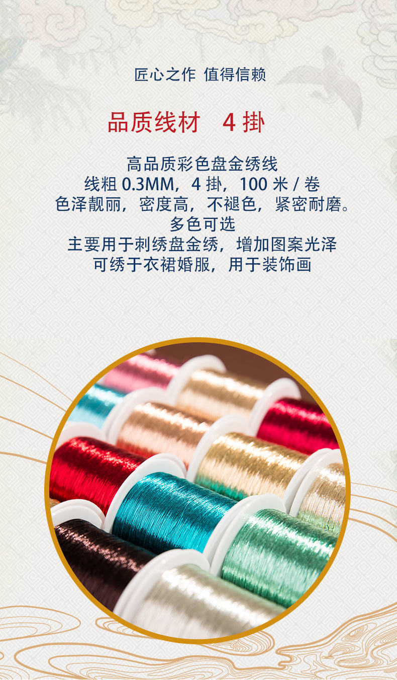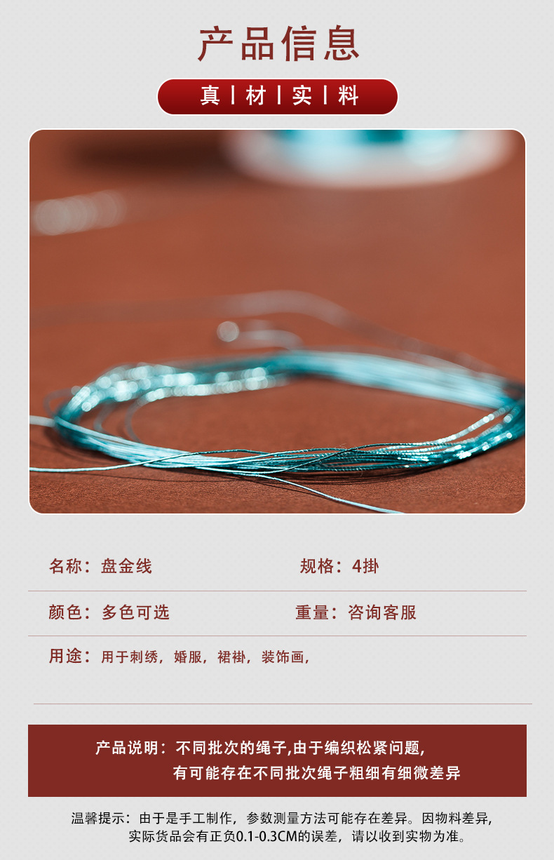 JR高端盘金绣线彩金线DIY手工饰品婚服装饰画盘金绣苏绣专用