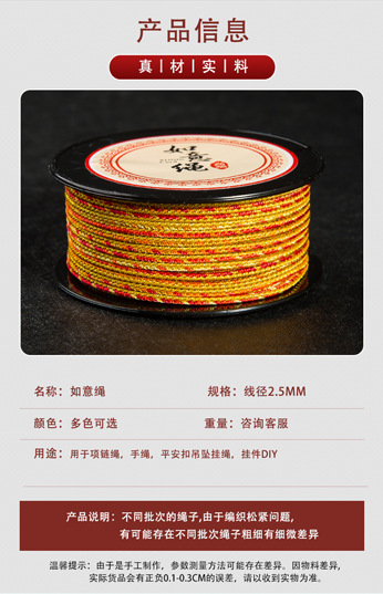 JR高端金丝如意绳2.5mm紧实手工编绳文玩绳项链翡翠吊坠挂绳手绳