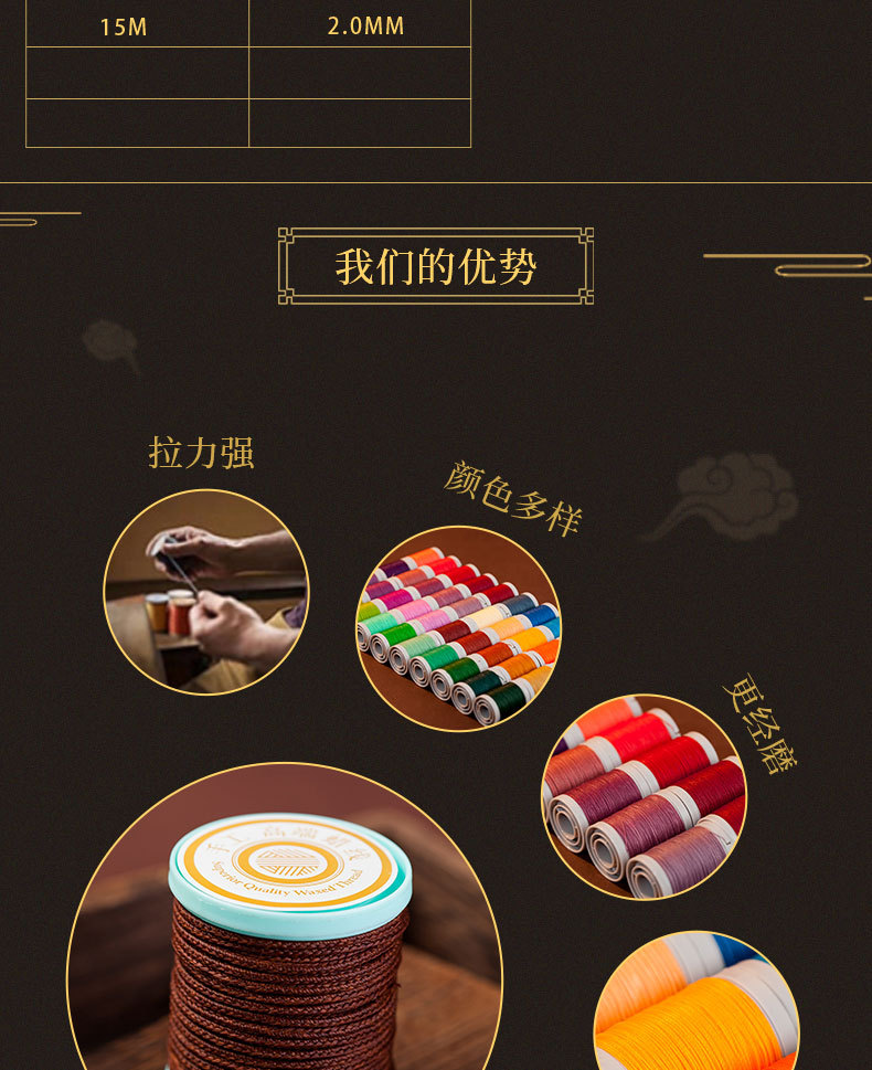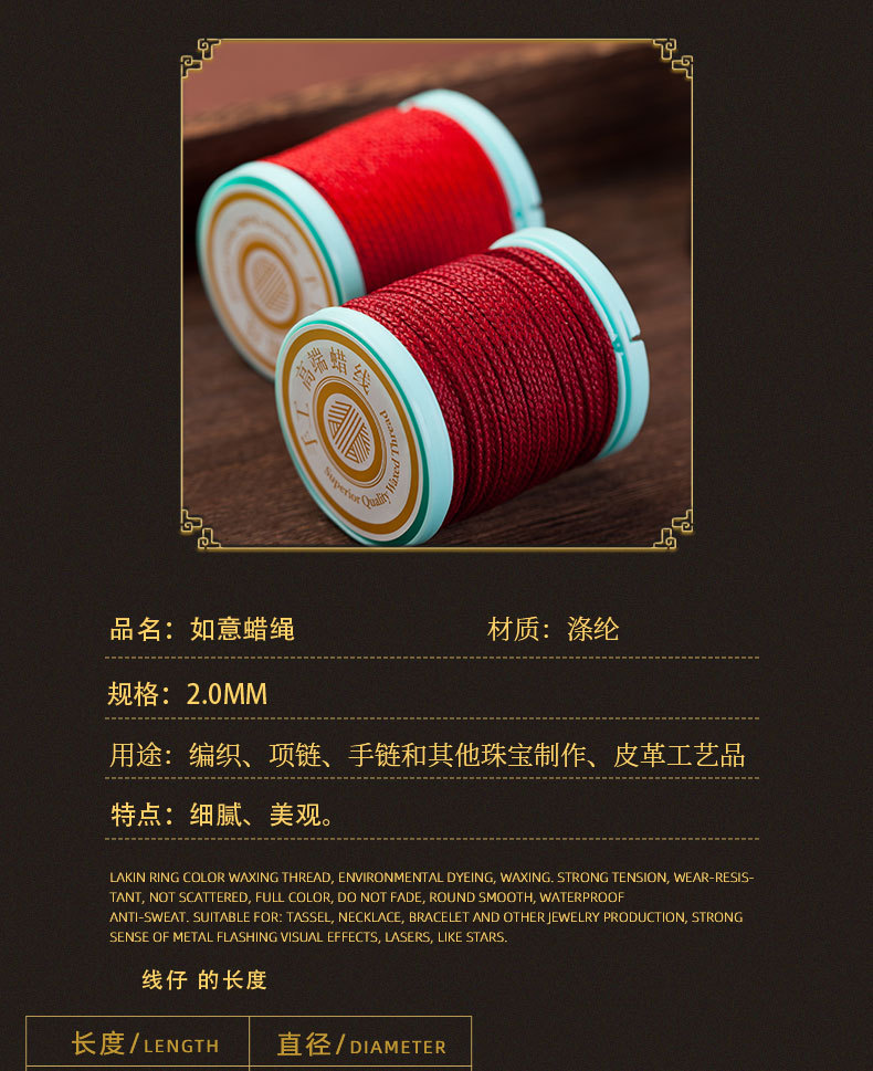 JR高端2.0mm如意蜡绳手工涤纶手工DIY蜡绳专用编织