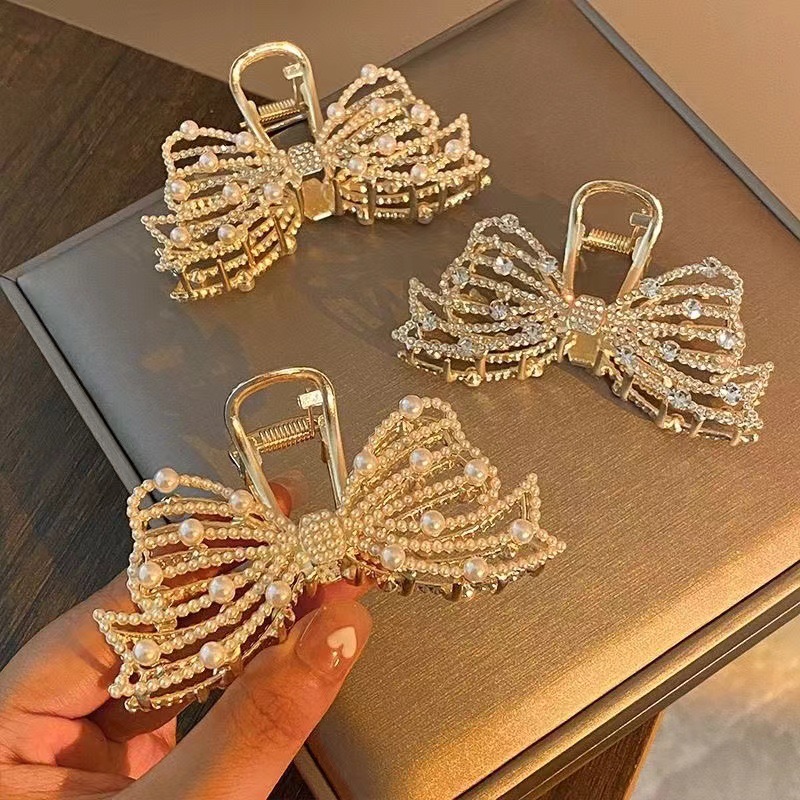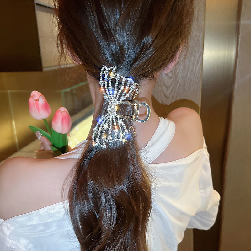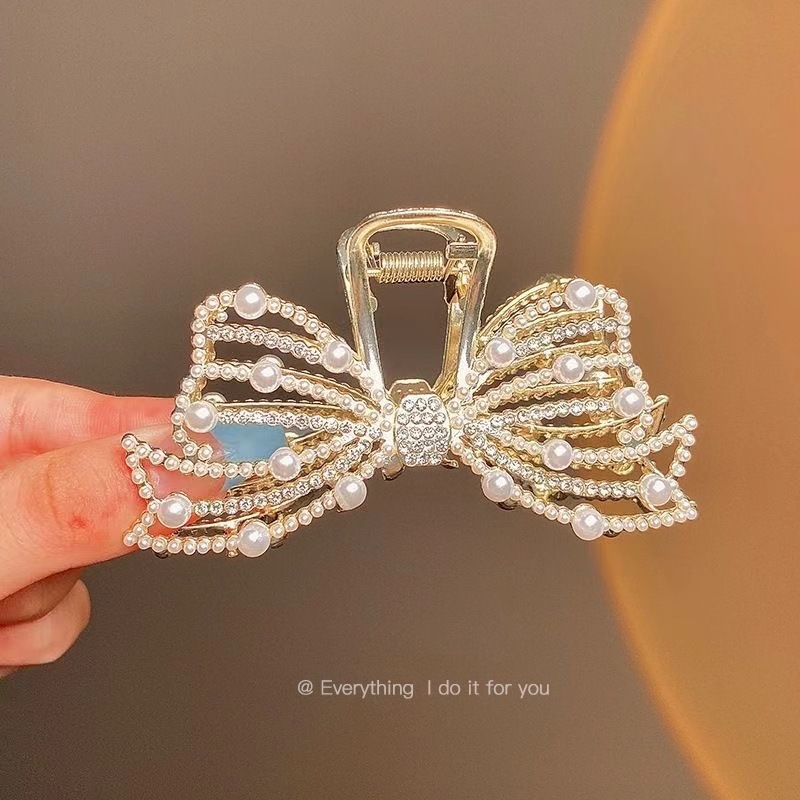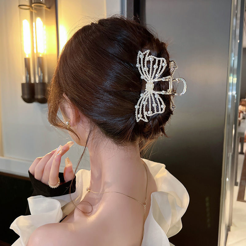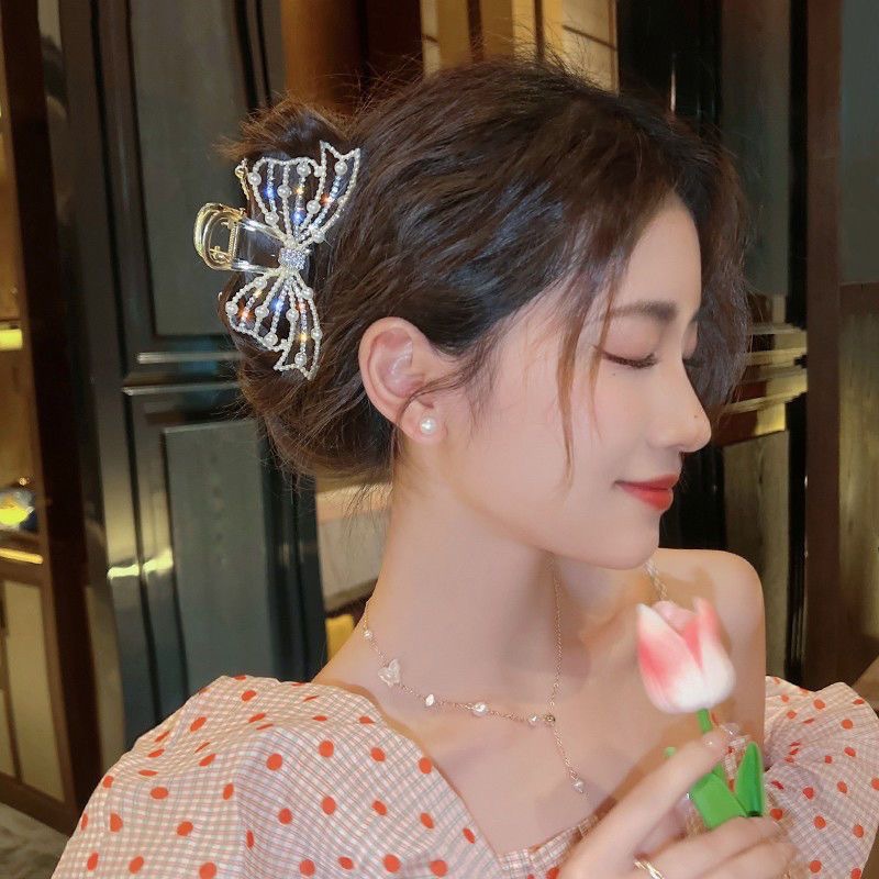 高颜值ins蝴蝶结抓夹女轻奢法式优雅大号后脑勺盘发鲨鱼夹子饰品