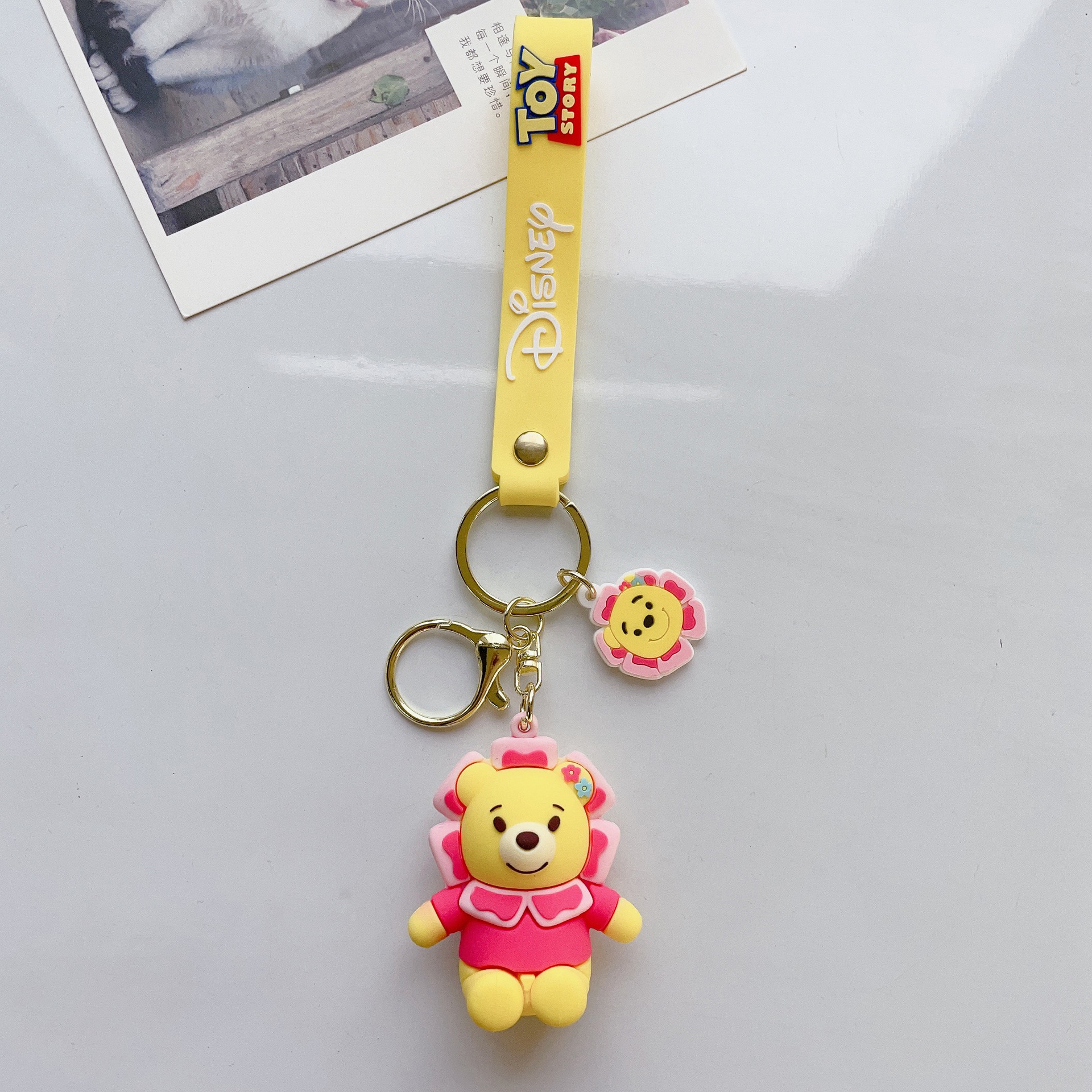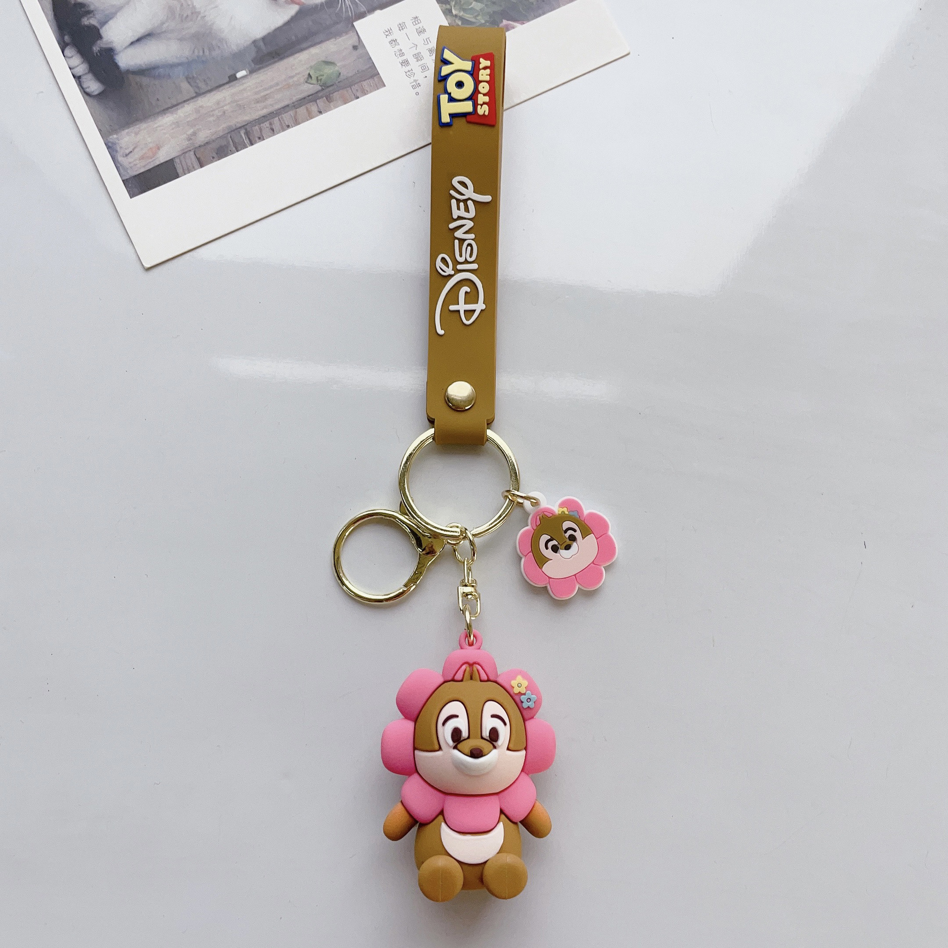创意太阳花草莓熊钥匙扣pvc挂件熊松鼠背包挂饰玩偶饰品批发