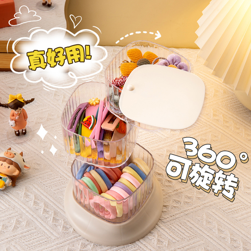 旋转首饰收纳盒学生宿舍卧室防尘发夹头绳桌面大容量收纳整理盒