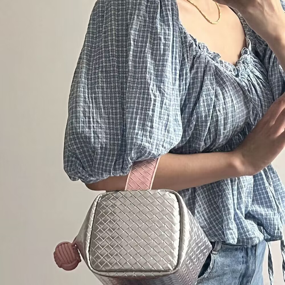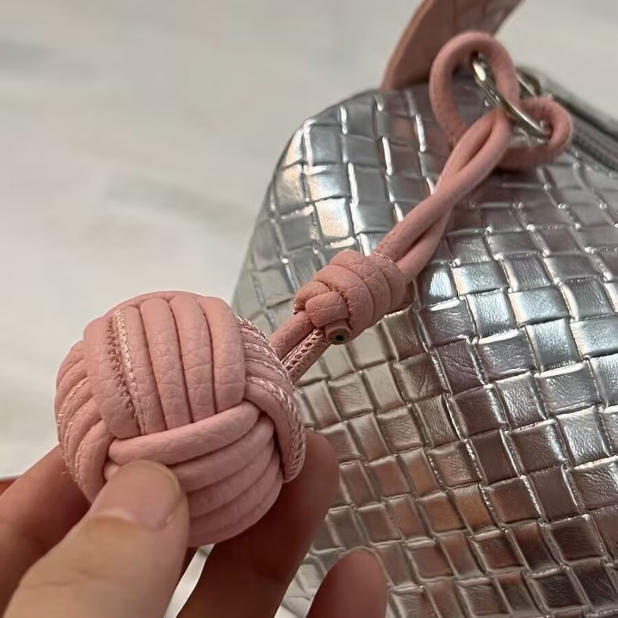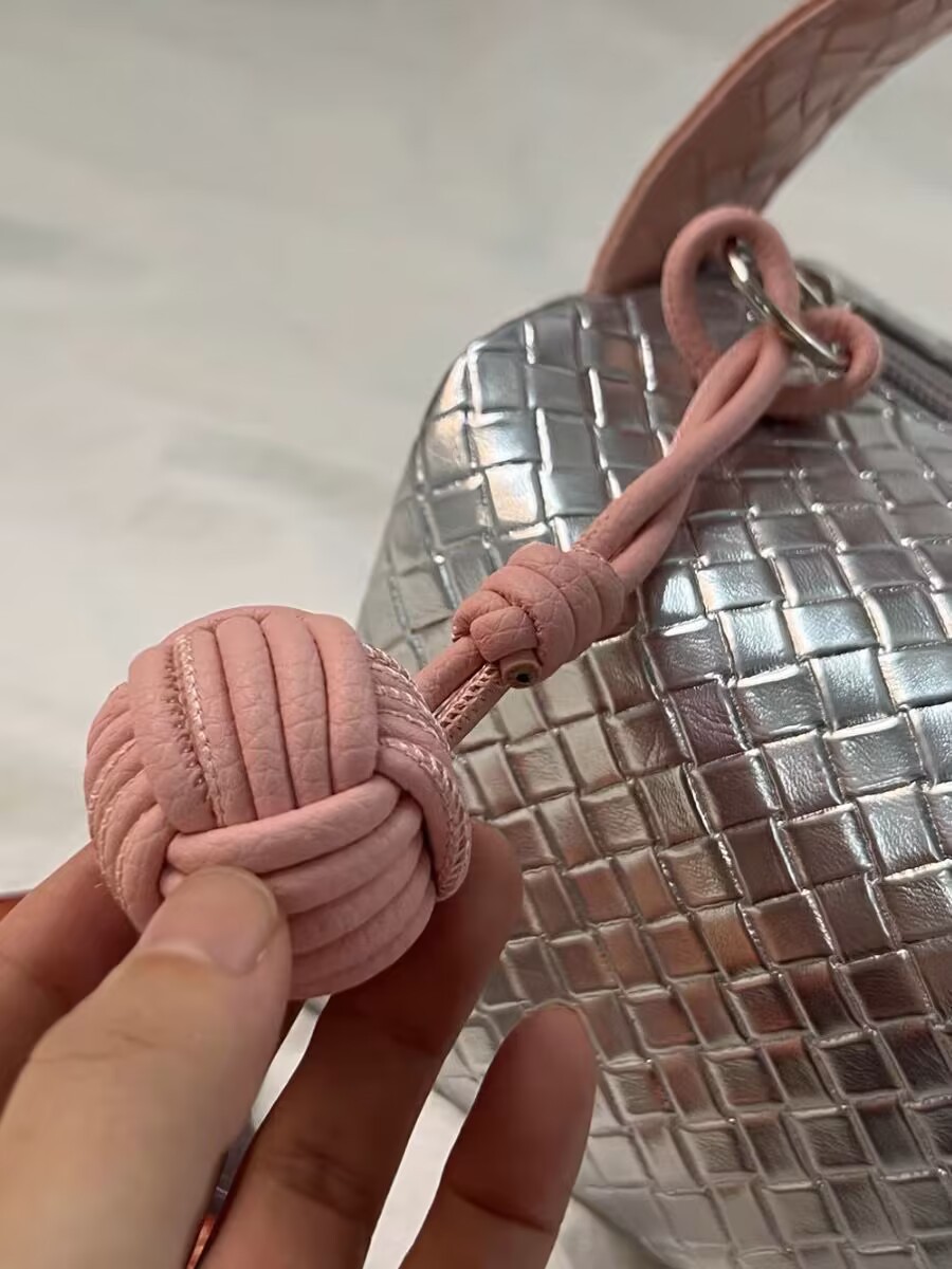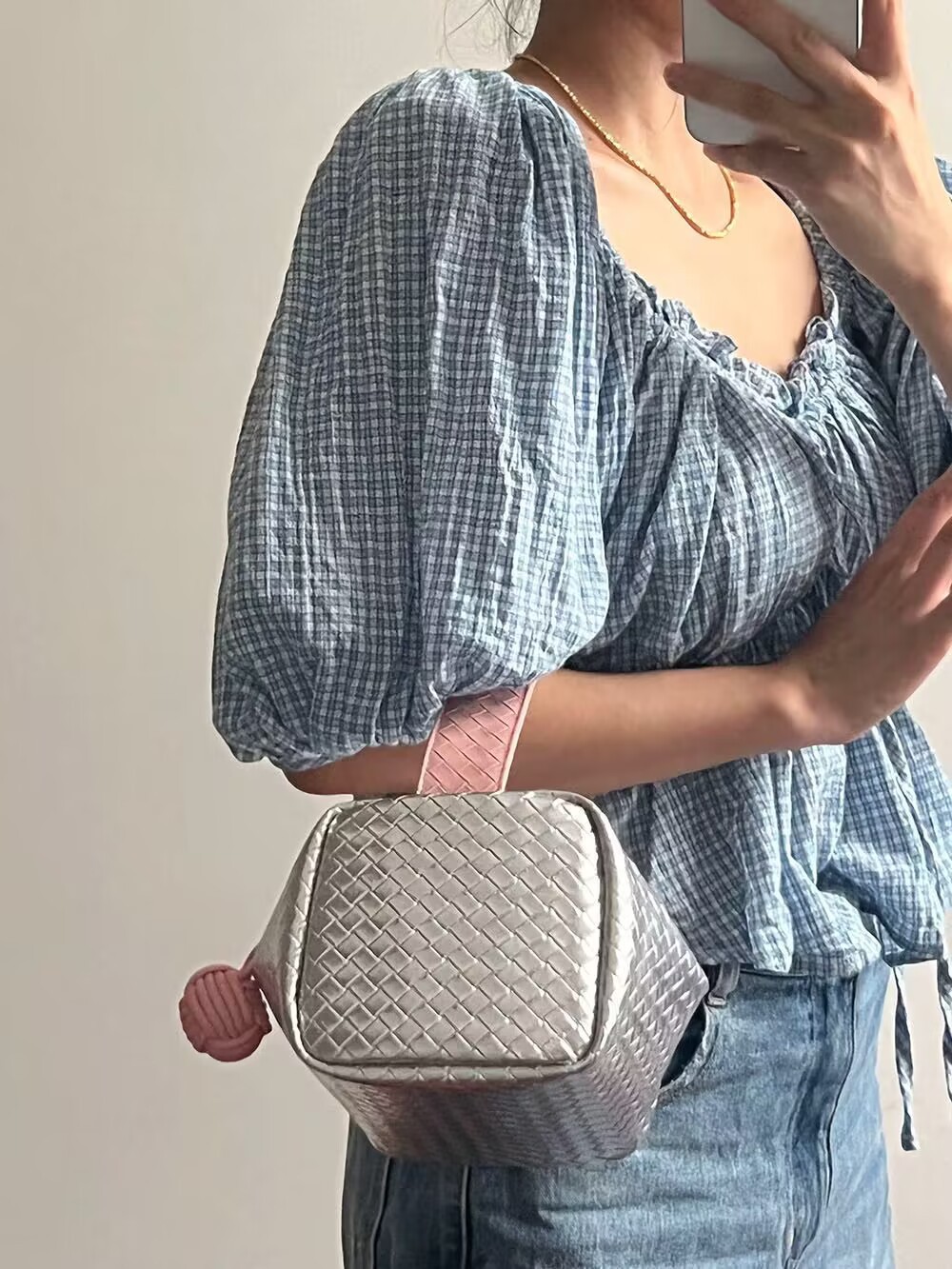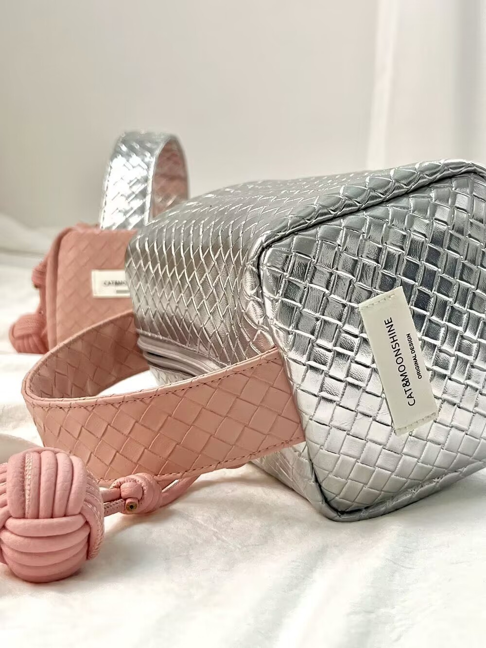 化妆包收纳包银粉拼色编织纹时尚百搭高颜值化妆包便携式手拧包