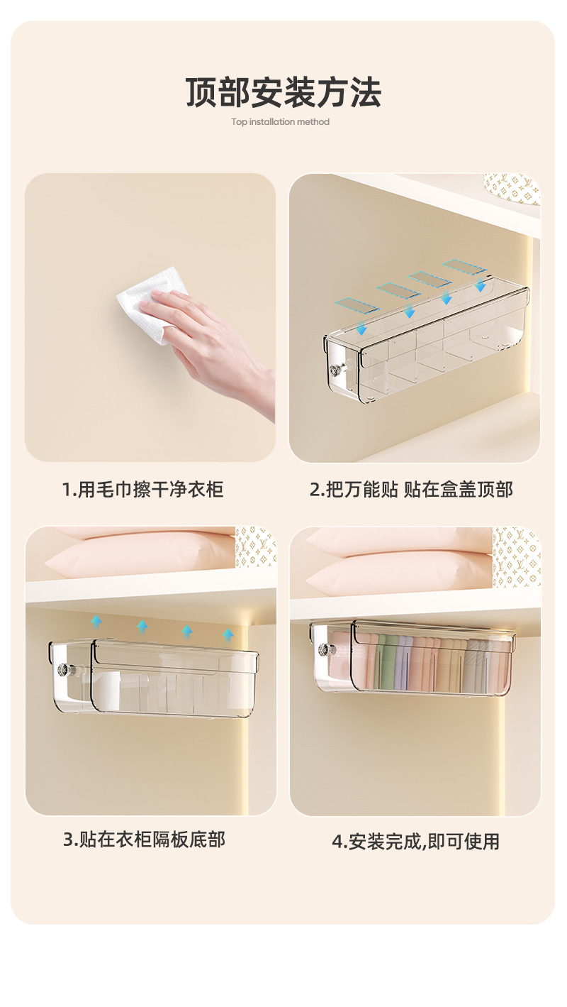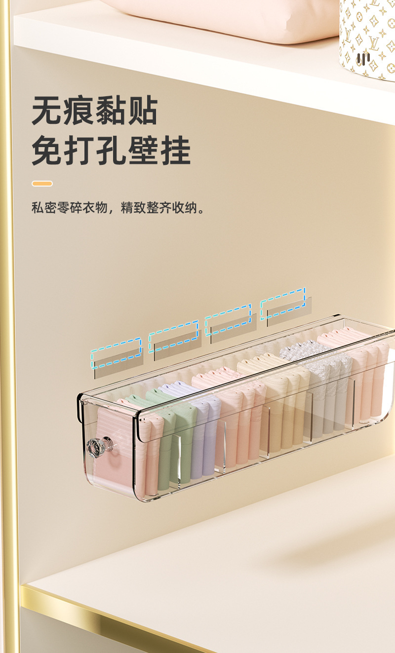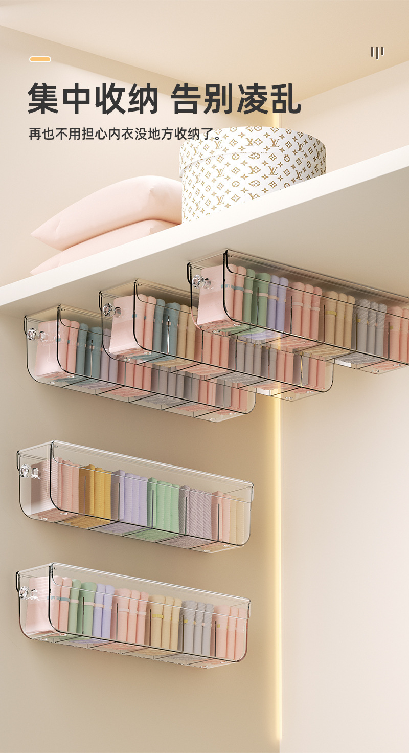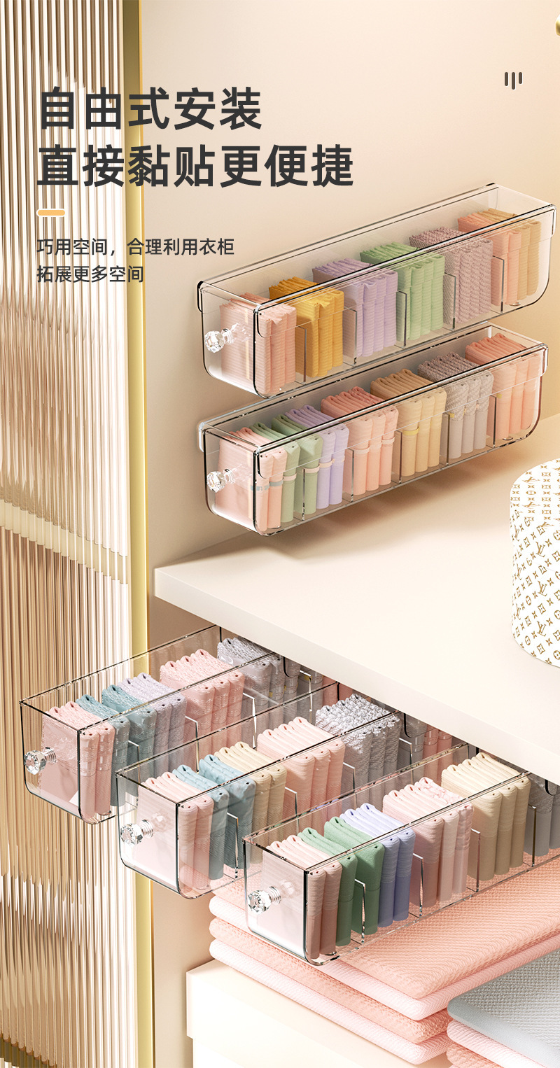 内衣收纳盒免打孔壁挂式内裤袜子整理盒衣柜贴身衣物收纳桌底收纳