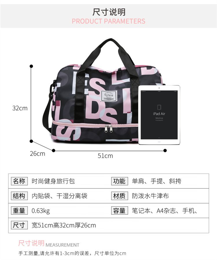 大容量旅行包手提短途出差旅行包多功能轻便防水运动健身收纳包
