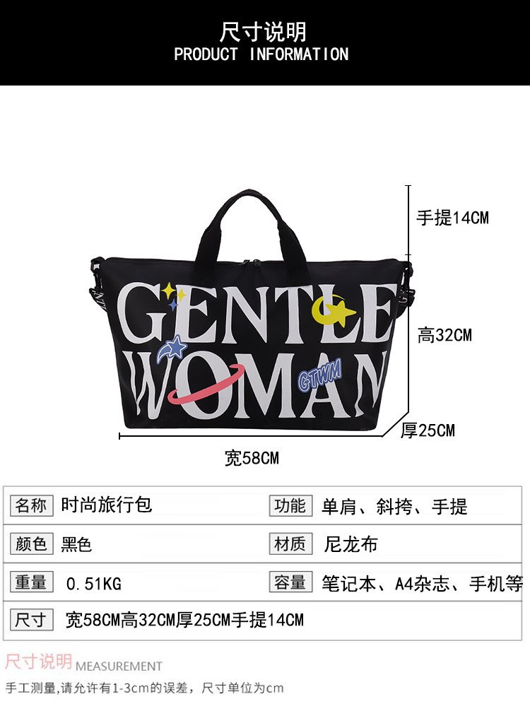 旅行包大容量字母印花潮流健身包运动瑜伽待产包便携百搭收纳包